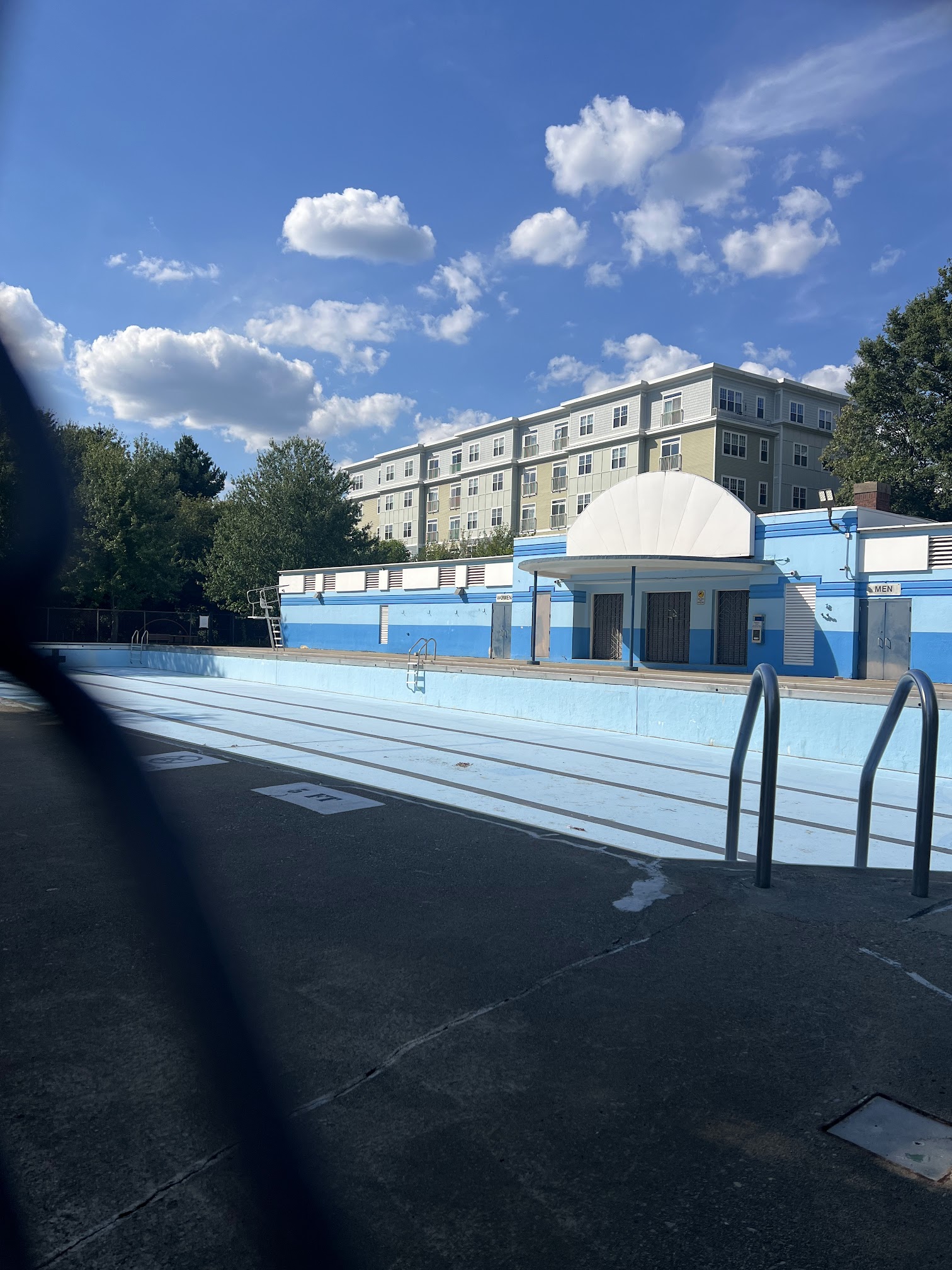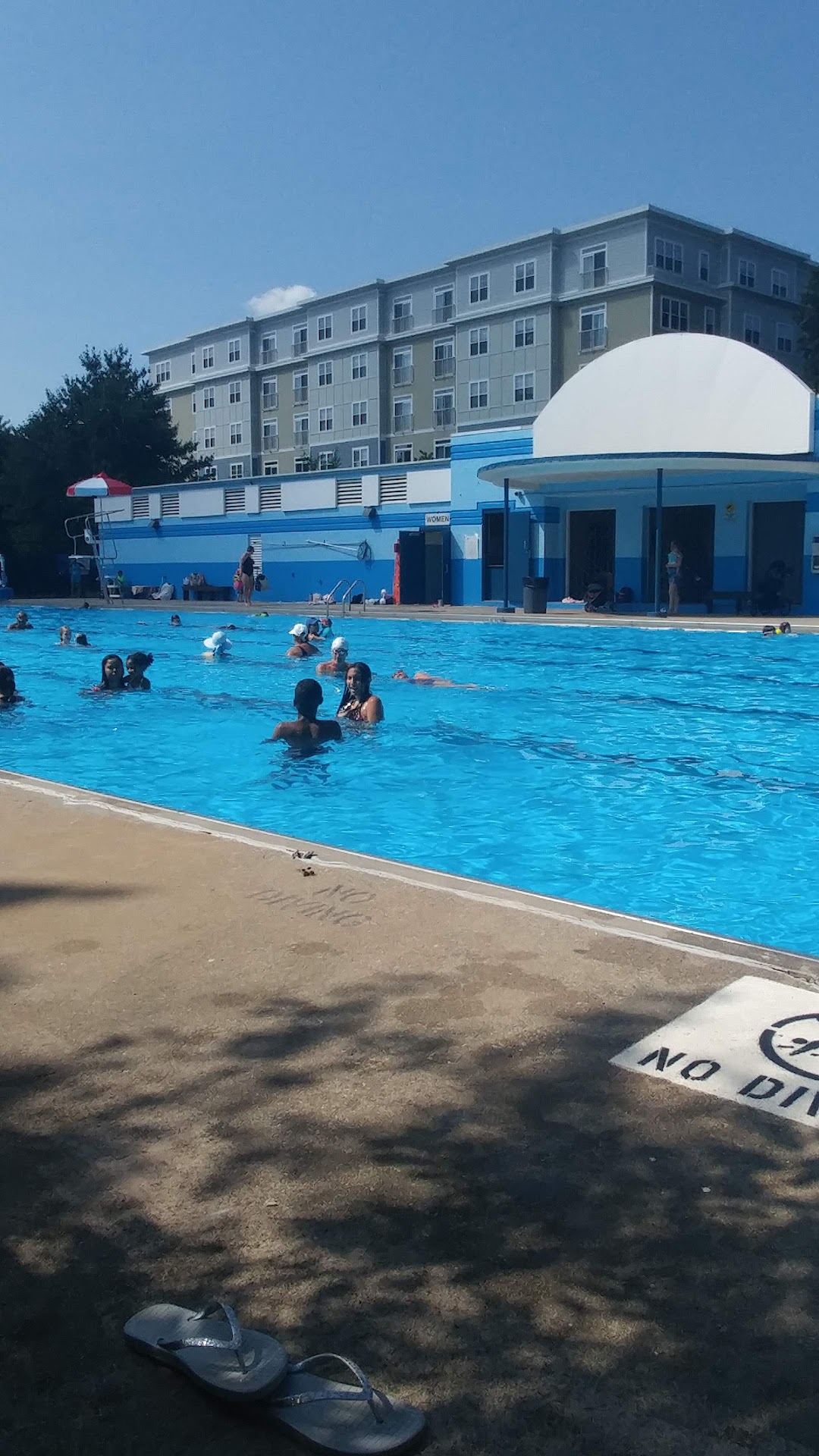This is a little slice of community paradise sitting right next to the Charles. The pool is very large, very clean and very free. There is an army of lifeguards watching over the pandamonium. There is lots of shade and you can bring chairs which a lot of pools won't allow you to do. They have very large lockerooms/restrooms. For reasons I can't explain (or don't want to think about!), this pool is always lukewarm. I can't imagine it's heated given it's limited season and it's size. I've been here many times and the water has never been cold. Pro tips: - The parking situation is anxiety inducing - maybe 20 spots or so and typically full - def great if you can walk or bike here - They have regular 15 min water checks where everyone has to get out of the pool. I posted the schedule - The pool opens very late in the season and closes very early, so always check the website before coming - Try to come as early as possible because it gets super crowded a d hectic in the afternoon - There is a little shaded park on the side with seats/tables and a splash fountain for the kids.