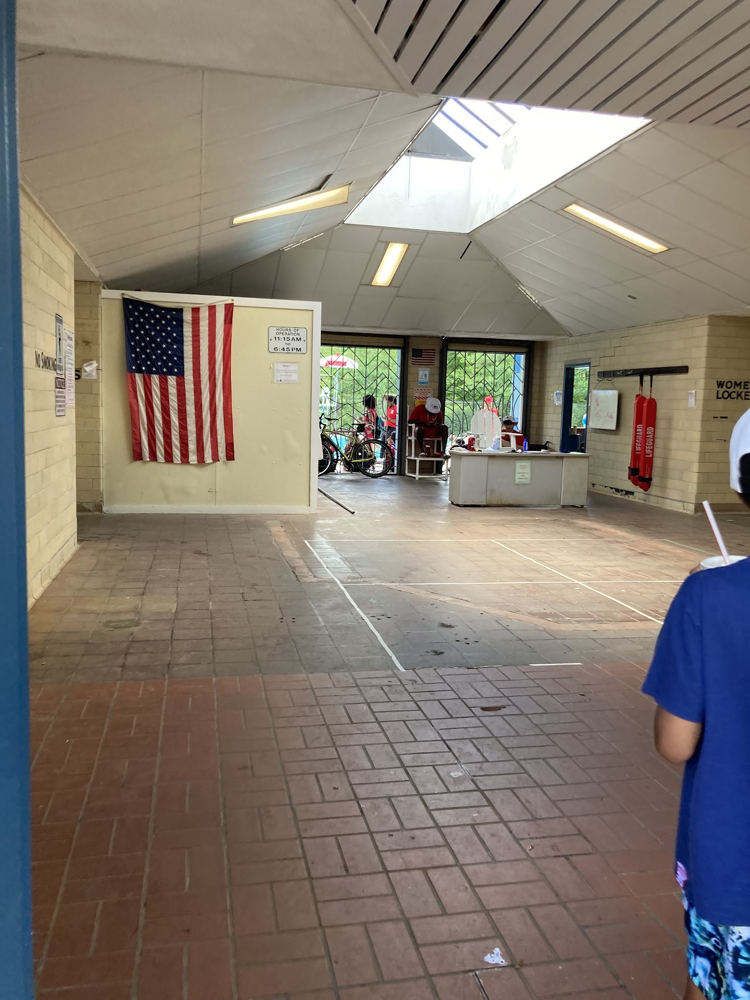 One of the nicest public pools I’ve been in changing room, a little too moist for my leggings ring water shoes pool is very clean. Lifeguards are very attentive only three picnic tables under shade to share wish they had a couple more small grass area. Was able to grab a spot at a table very ice cream shack showed up every hour clockwise you are allowed snacks and lunch for kiddos closes at 6:30. Also has break times to clean the pool. Water was crystal clear and refreshing lifeguards did a very good job and maintaining integrity keeping pool clean, making sure no rough play no running and any pool rules that would go with a public pool service. Great job my kids had fun.