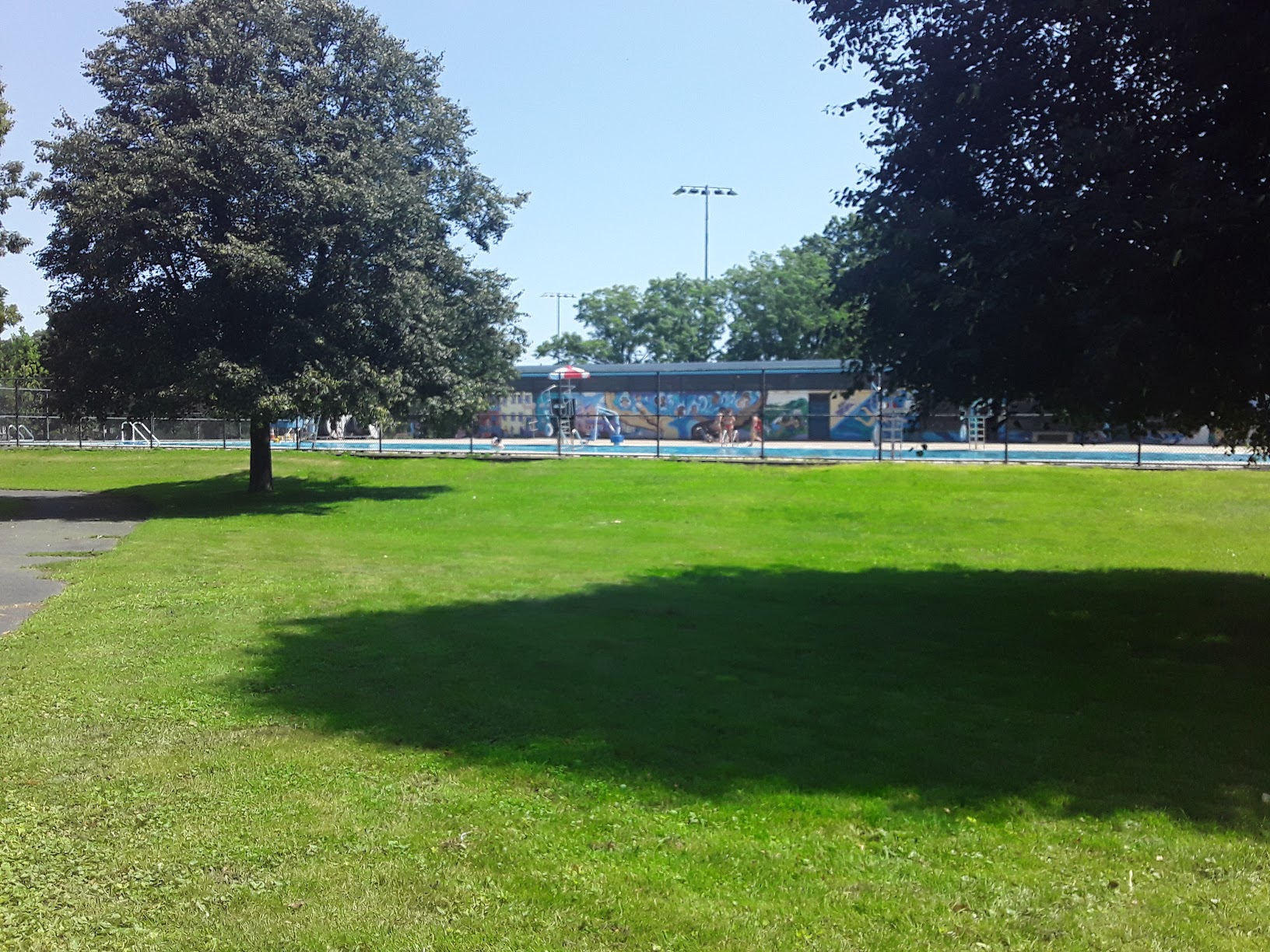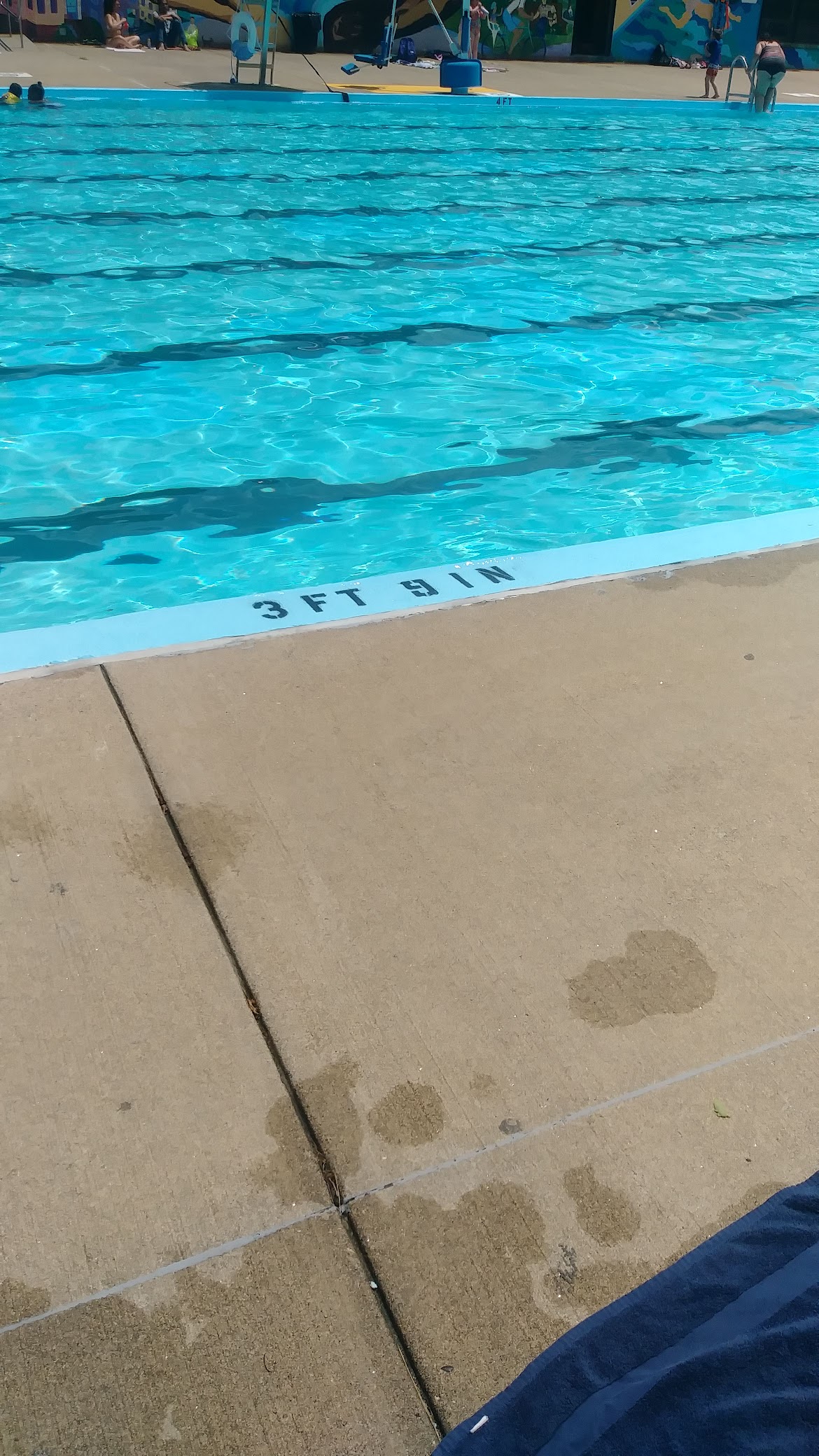 Nice long and wide pool, kept pretty clean compared to other in local DCR pools (minimal leaves in water), water is a little cooler than indoor gym pools but it's perfect on 70+ degree days. Very well kept pool and facilities, although the shower water is hot and you can't change it. I hope that gets fixed soon. The hours are not bad and the pool is in the sunny area of Foss park (no trees block the sun to the pool). My new favorite Mass DCR pool for the summer season.
