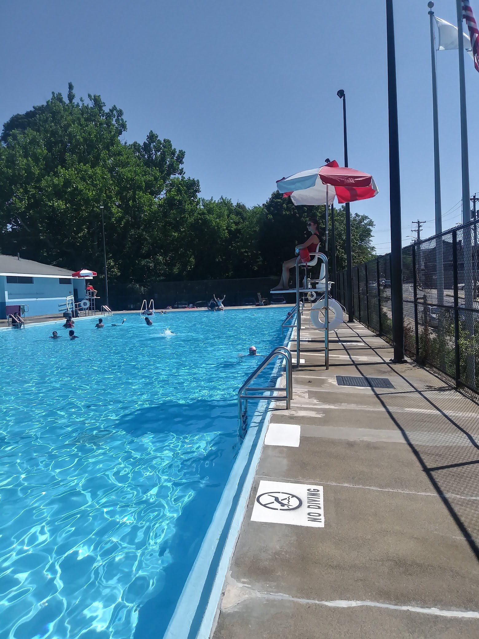 My kids love coming to the pool here. We like the new benches installed along the pool deck, the shower facilities, and the water being warmer than most other dcr pools. Bring a hat and water- this place is full sun!