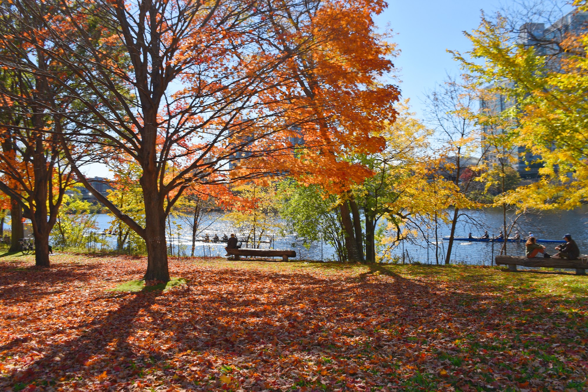 What are people saying (AI review summary)? This unique park, located between the Charles River and Memorial Drive, offers a wide array of amenities and activities. It features a boat launch, baseball diamonds, open fields for various sports (including soccer, baseball, and competitive quidditch), and an outdoor gym with fitness equipment. A newly renovated, free pool with a splash pad is also available. Visitors can enjoy walking, cycling, picnicking, relaxing, and watching sunsets, all with great views of Harvard landmarks and the river. The park is a good spot for observing diverse wildlife, such as geese, hawks, and swans, and for foraging berries, though this is weather-dependent. Parking is generally decent, but restrooms can be a challenge to locate and a long walk. Criticisms include the park management's aggressive mowing of natural vegetation and a lingering problem with litter.