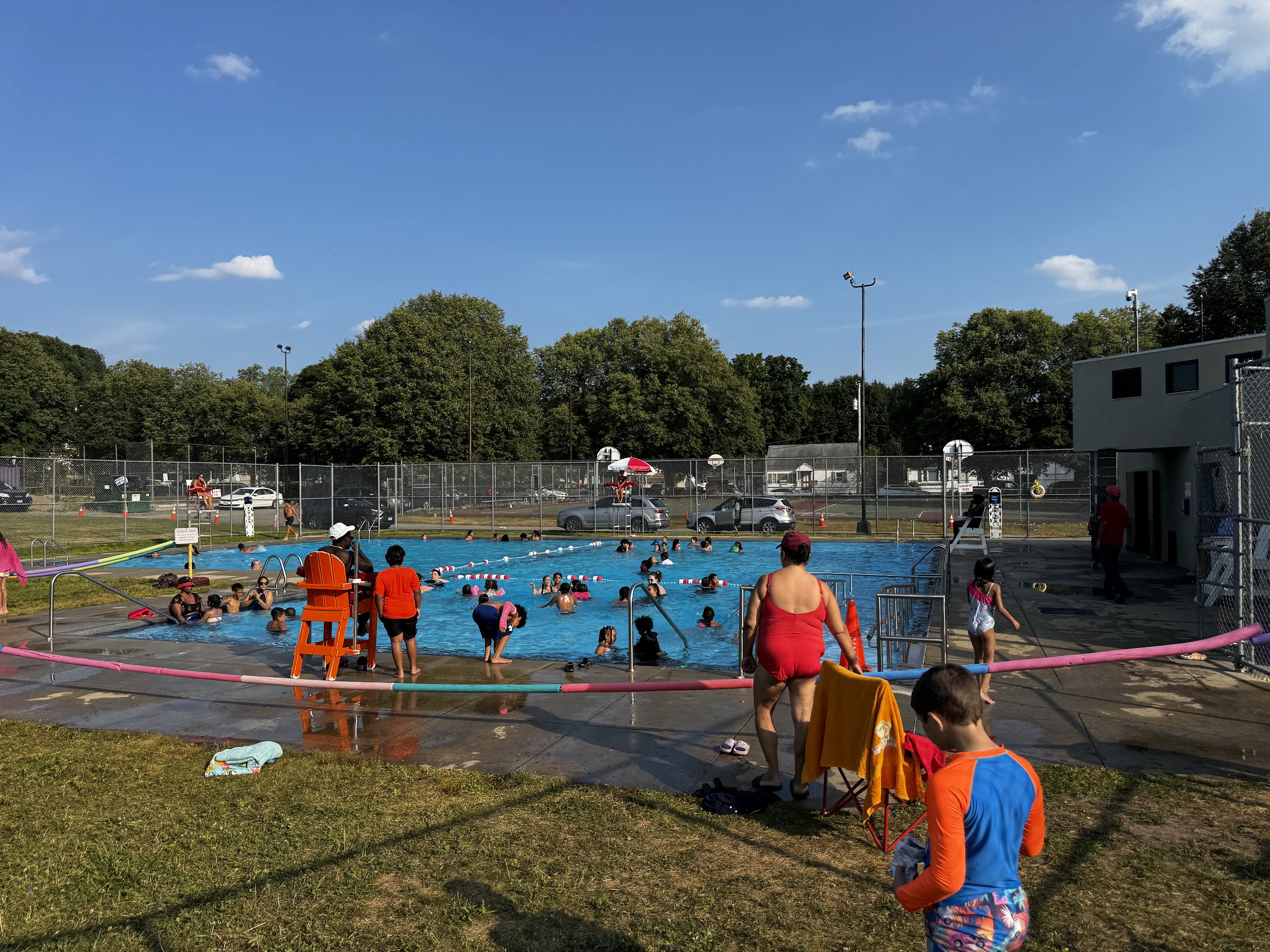 I love how strict it is..you don't hear swearing, rude teenagers like the ones at north common, tons of rough playing. Today they hurt a lady, ambulance took her. Turns out it was her own kids hit her when they kept grabbing each other and tossing themselves in the pool, Lucky they didn't hit a child! They need to kick people out like this. Because of this group, they closed the pool on a 92° DAY! ( 8.1.24.) So we will be back to peaceful McPherson pool! Bring umbrellas for outside of fence, kids playground is cute!