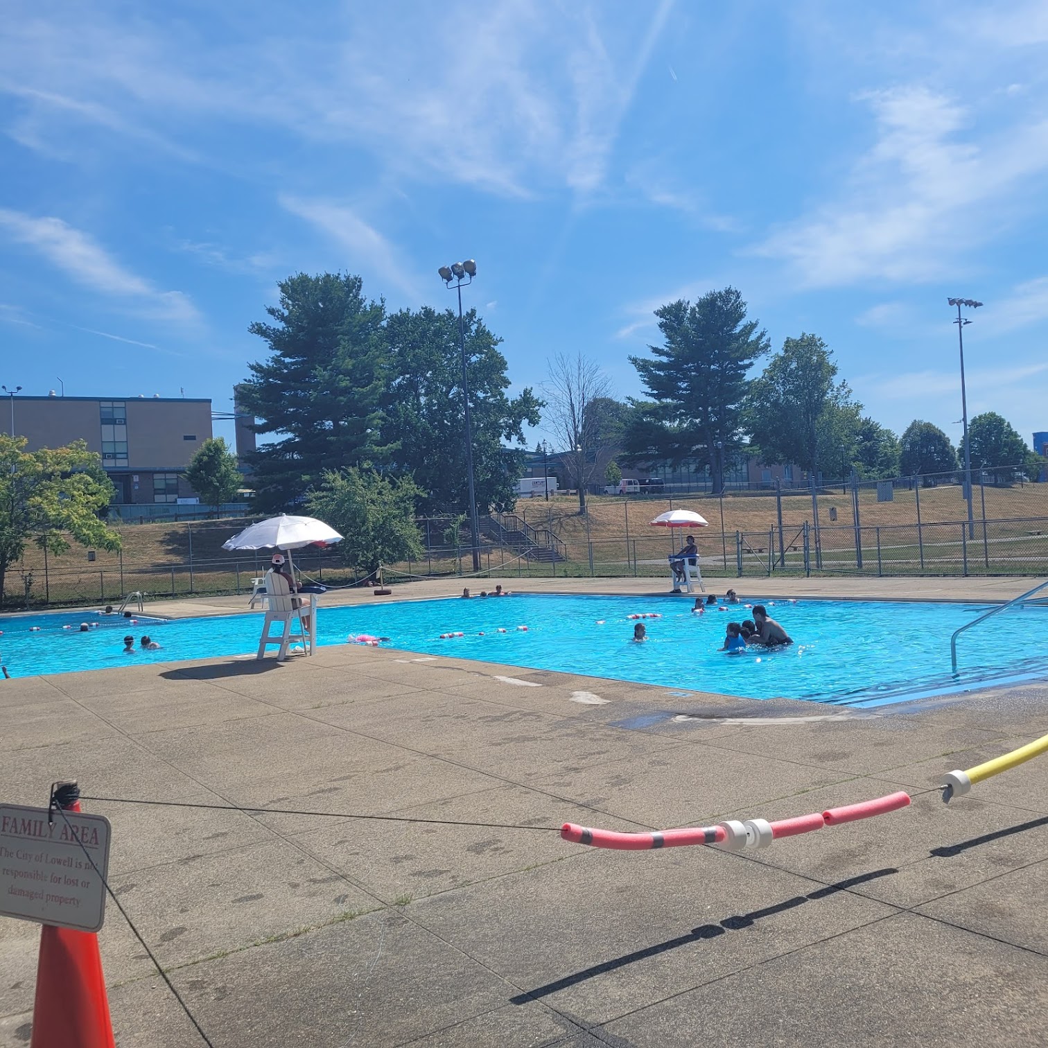 The pool it self is amazing but the lifeguards are a bit to strict. My 2 year old goddaughter was running and these lifeguards had the rude nerve to scream at her as if she understood. I proceeded to explain to them how she will not understand what they are saying to her . they then proceeded to tell me that they do not care and its none of their business if she cannot understand what they are saying . So what is the point of saying it ??? this pool has straight crackheads shooting up and fighting outside the fence, Definitely don’t want my 2 year old to see that.