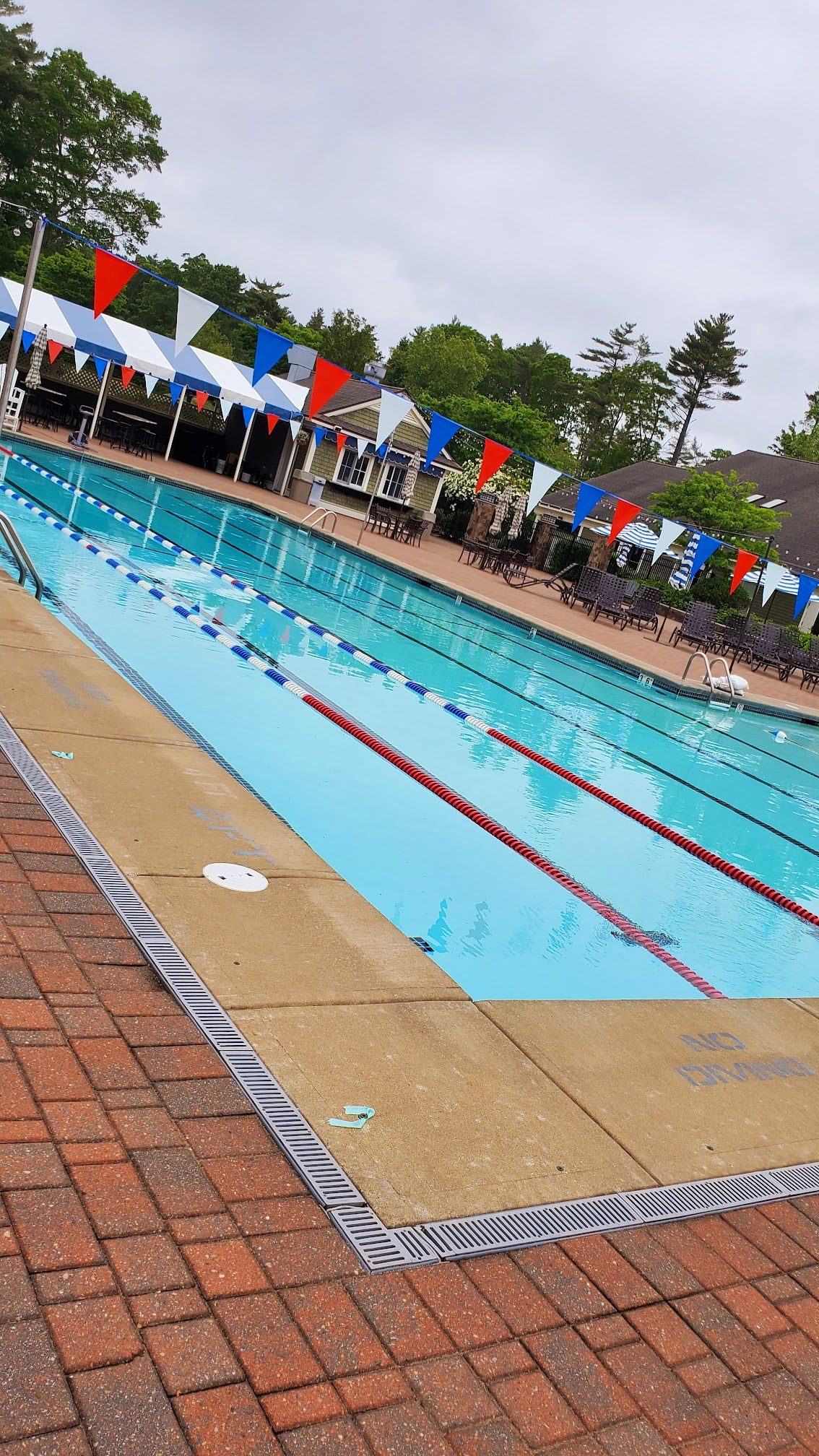 The Bay Club at Mattapoisett features two distinct pools: a 75-foot heated lap pool with four lanes, and a Family Fun Pool with a shallow entry and water basketball. While specific daily temperature readings are not publicly advertised, the lap pool is consistently heated to ensure comfortable swimming conditions for members.