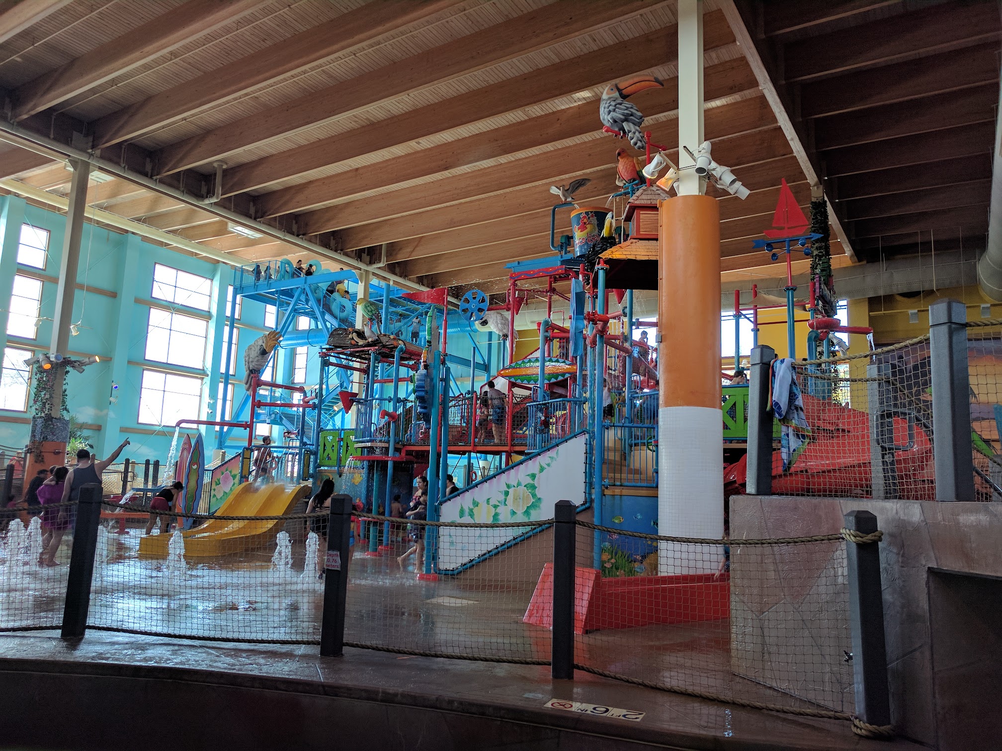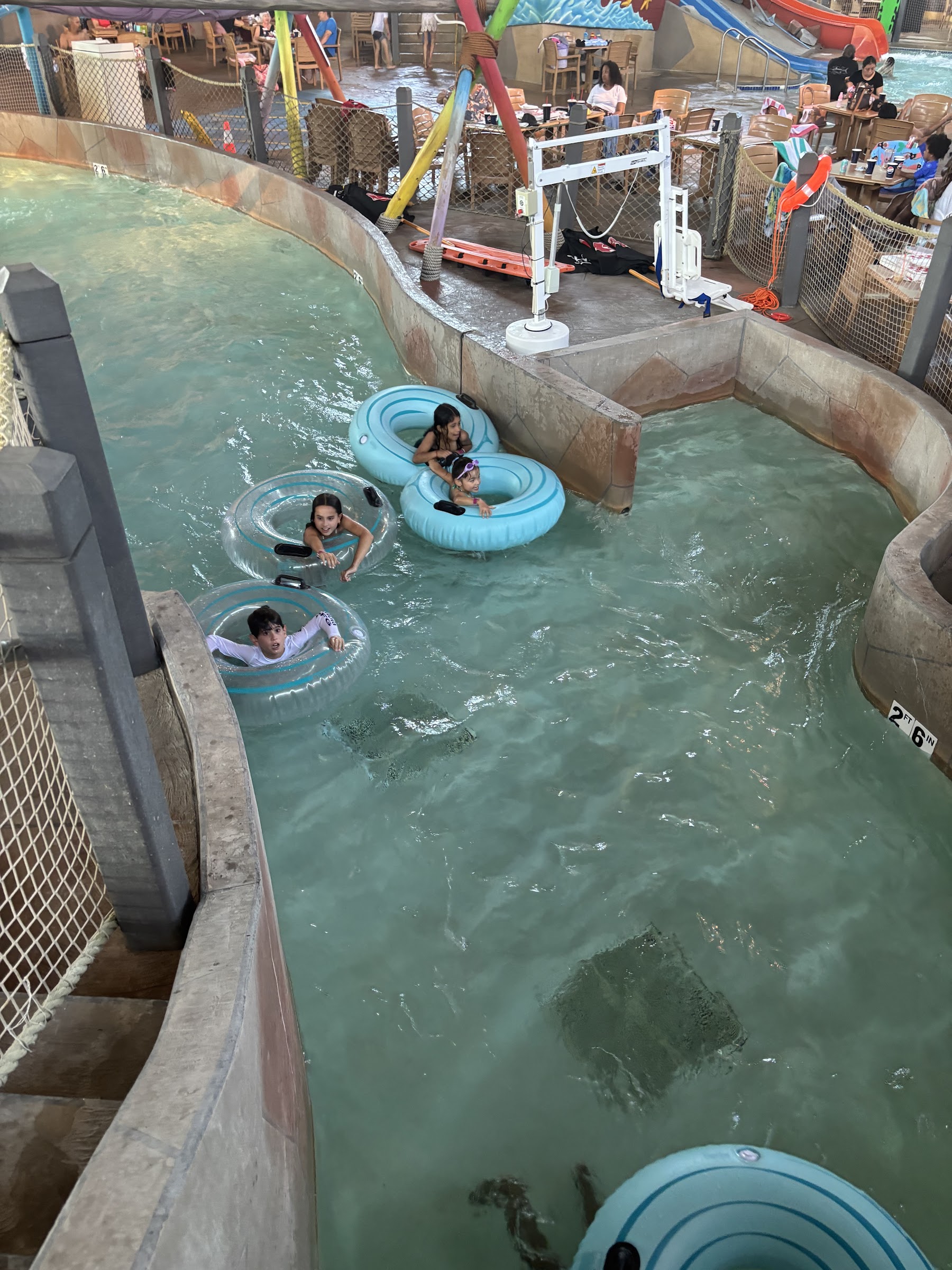 Its a small indoor and pricy ($30-60 depending on time and method) and, $10-15 to rent a locker, $3 for a towel ( you can bring yours). The nice thing is indoor, but it is small. The floors are not smooth just rough concrete both on land and in the water, you can easy scratch yourself on the concrete in the water or good luck if you fall on the land, so be careful, honestly this could be dangerous environment for anyone. Not a well maintained or staffed place, the central medium sized slide has no staff, so people can easily ram into each other at the bottom if not watching and you can get some speed in the slide. Not gonna return. Codes as Hilton double tree purchase and interestingly restaurant charge when you buy ticket at the door. If you know you know.