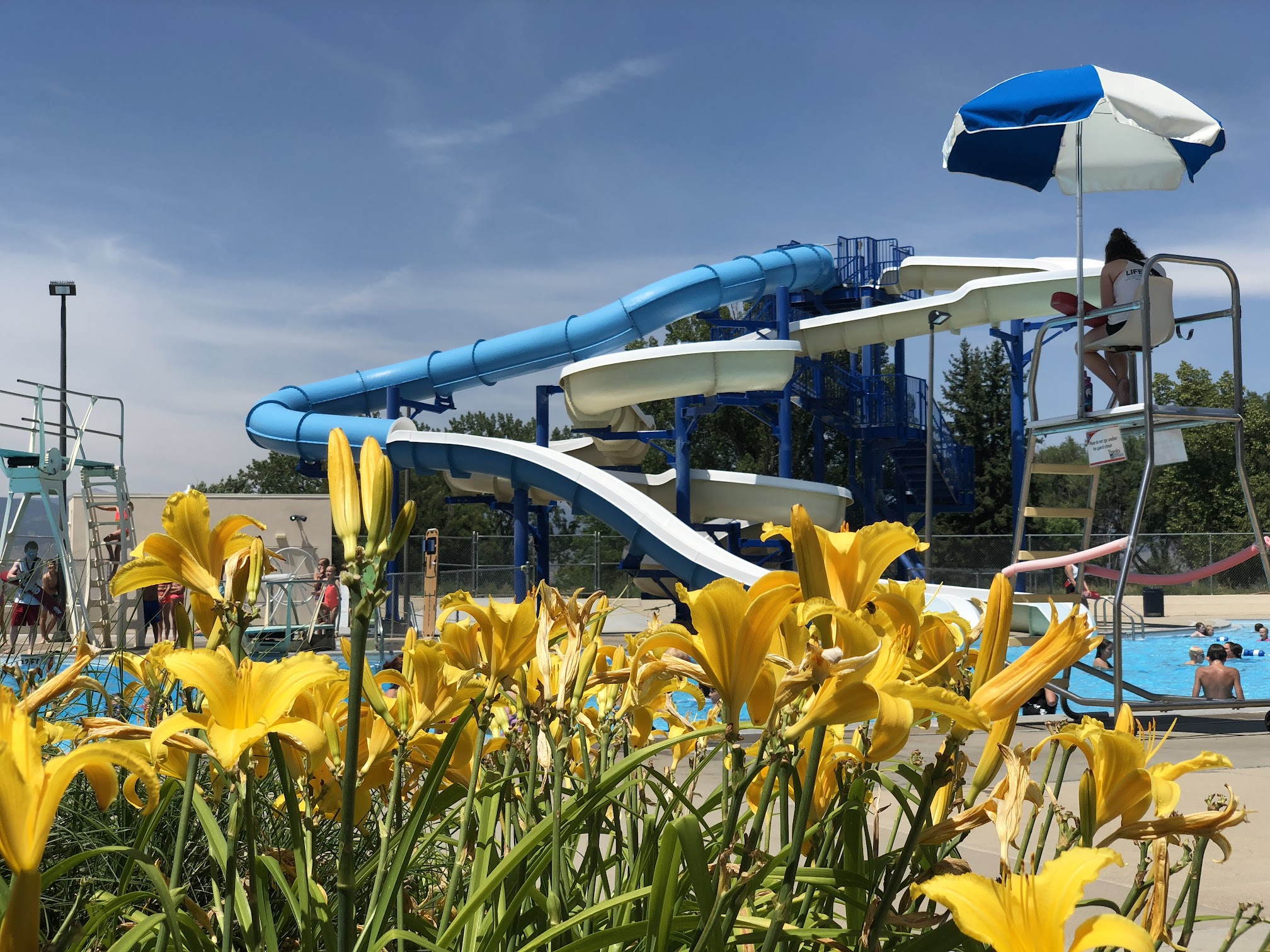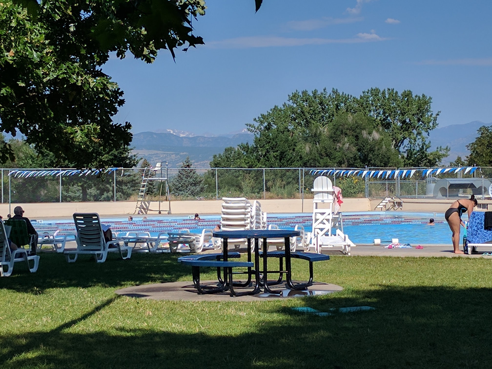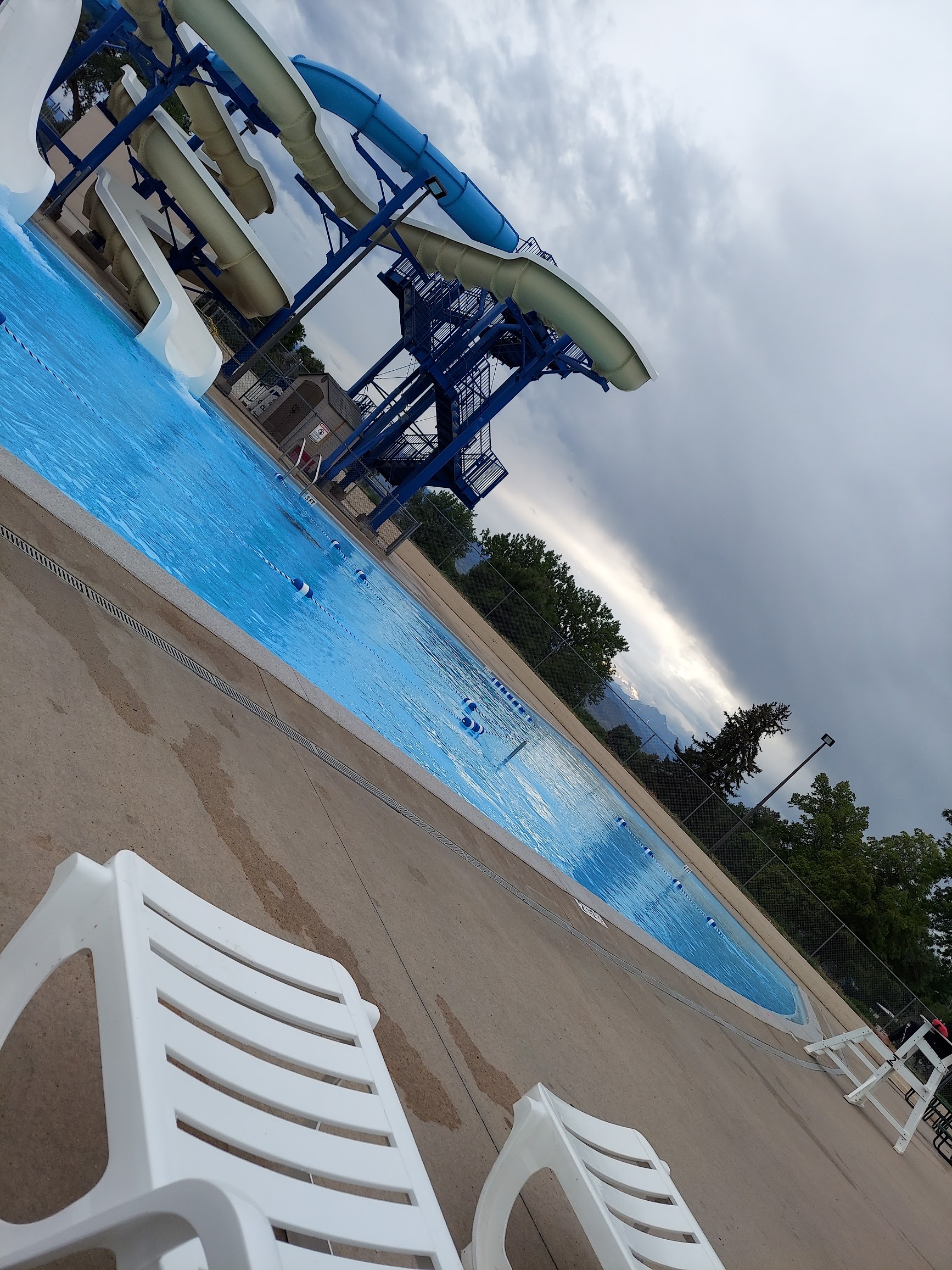 Clean and welcoming. Huge pool with 2 slides and 2 diving boards. It also has lap lanes for serious swimmers and lifeguards on duty. Tucked away in Longmont this pool offers sand on one side and grass on the other. Fun.