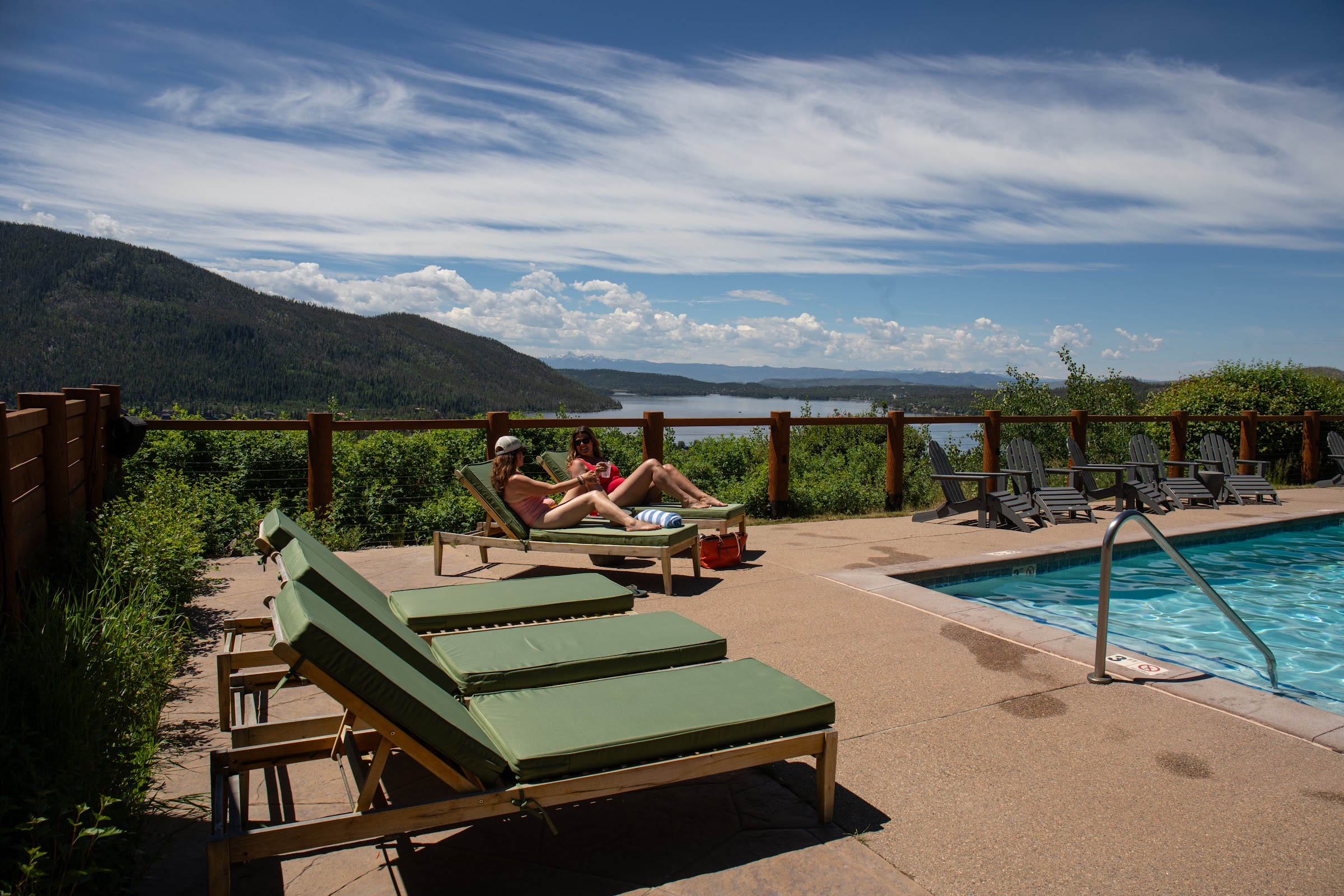 The Grand Lake Lodge features a heated outdoor swimming pool. While specific temperature figures are not publicly advertised, it is maintained at a comfortable temperature for guest enjoyment.