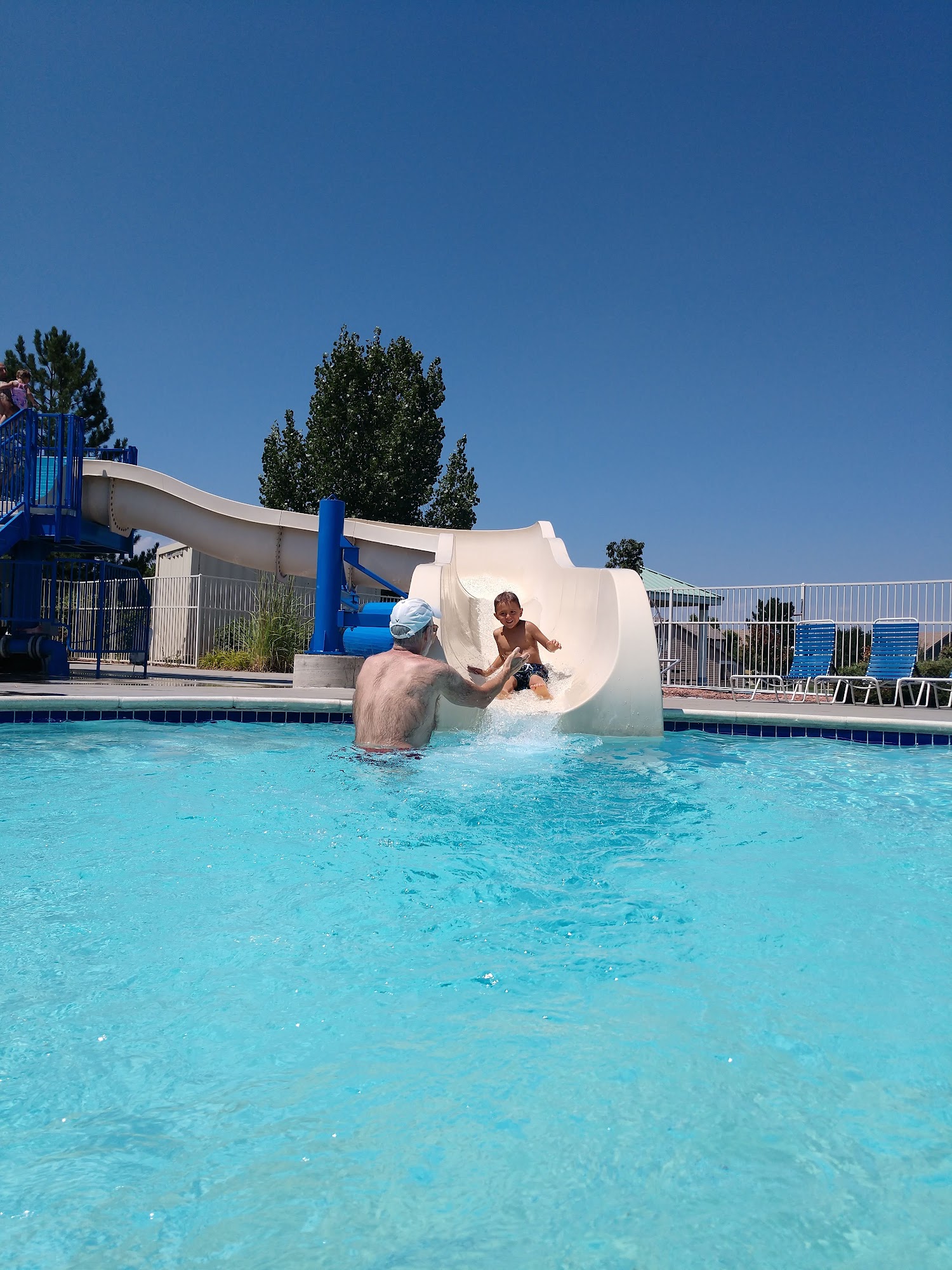 Our favorite pool by far! Great for the littles with zero entry access and good beginner slide too. Playground is a bonus!