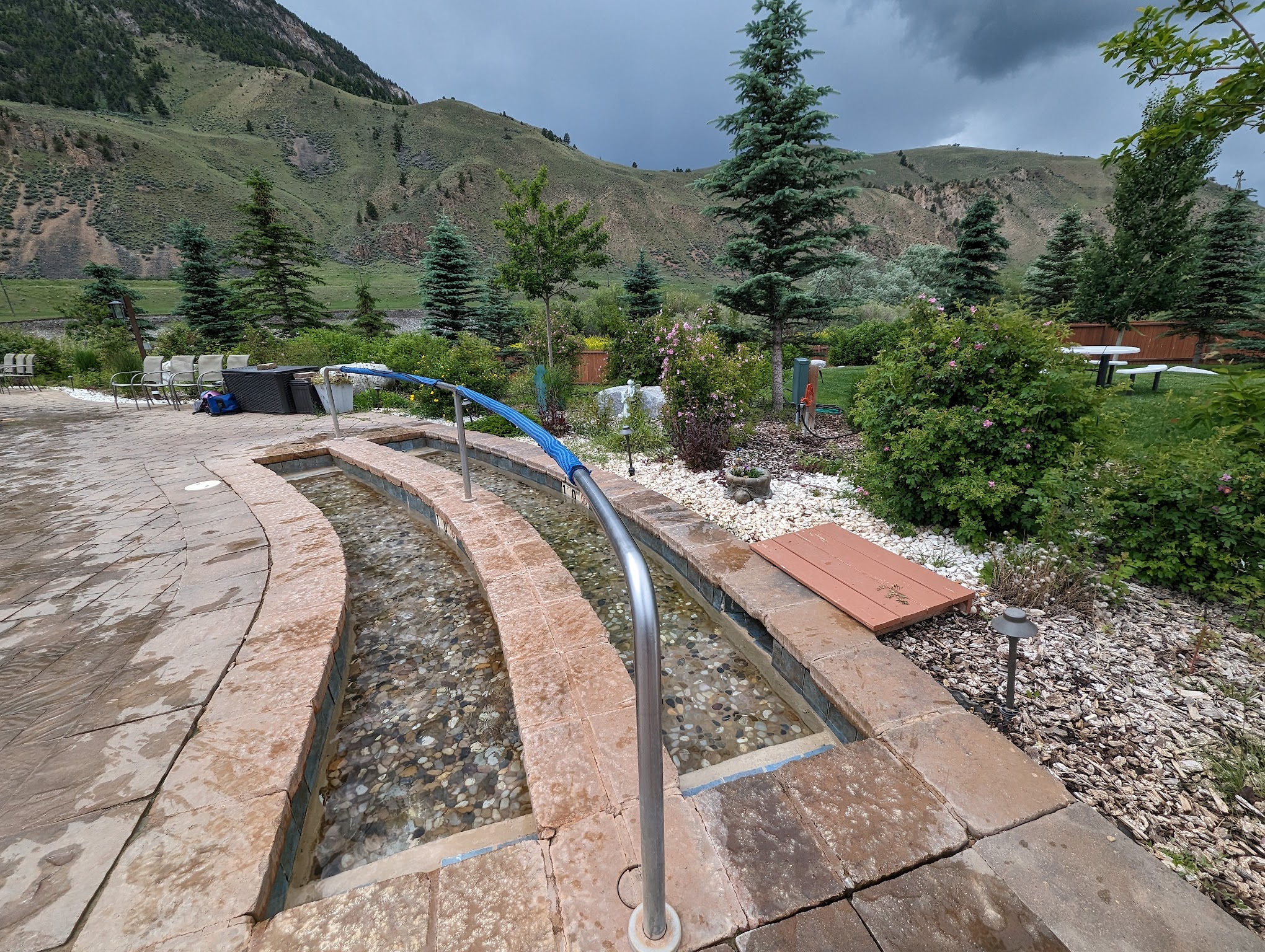 So. If you went to Mammoth Springs in Yellowstone and got it in your head you really wanted a hot springs bathing experience, this is your closest option. Is it your best option? Questionable. Here's the skinny; it's a 'budget resort'. Yes, it's location is stunning; located in a valley with stunning views of the mountains and river. But the resort is showing its age a bit. There are two tubs, one hot water, one is cold. And a heated pool they are both located within. The hot tub wasn't nearly as hot as I had been hoping. And the waters really dried out our skin, which makes me wonder where the water really comes from and how/if it's treated. I didn't get that good lithium/mineral soak experience I've had at other natural hot springs. That being said, it's very affordable! The grounds are nicely manicured, and there's an attached little cafe. There's a discount offered at the hot springs if you stay within the campground, which we did. Tight campsites, but it was still nice by the river. Camp tip; skip doing laundry there. See my other review for more on that.