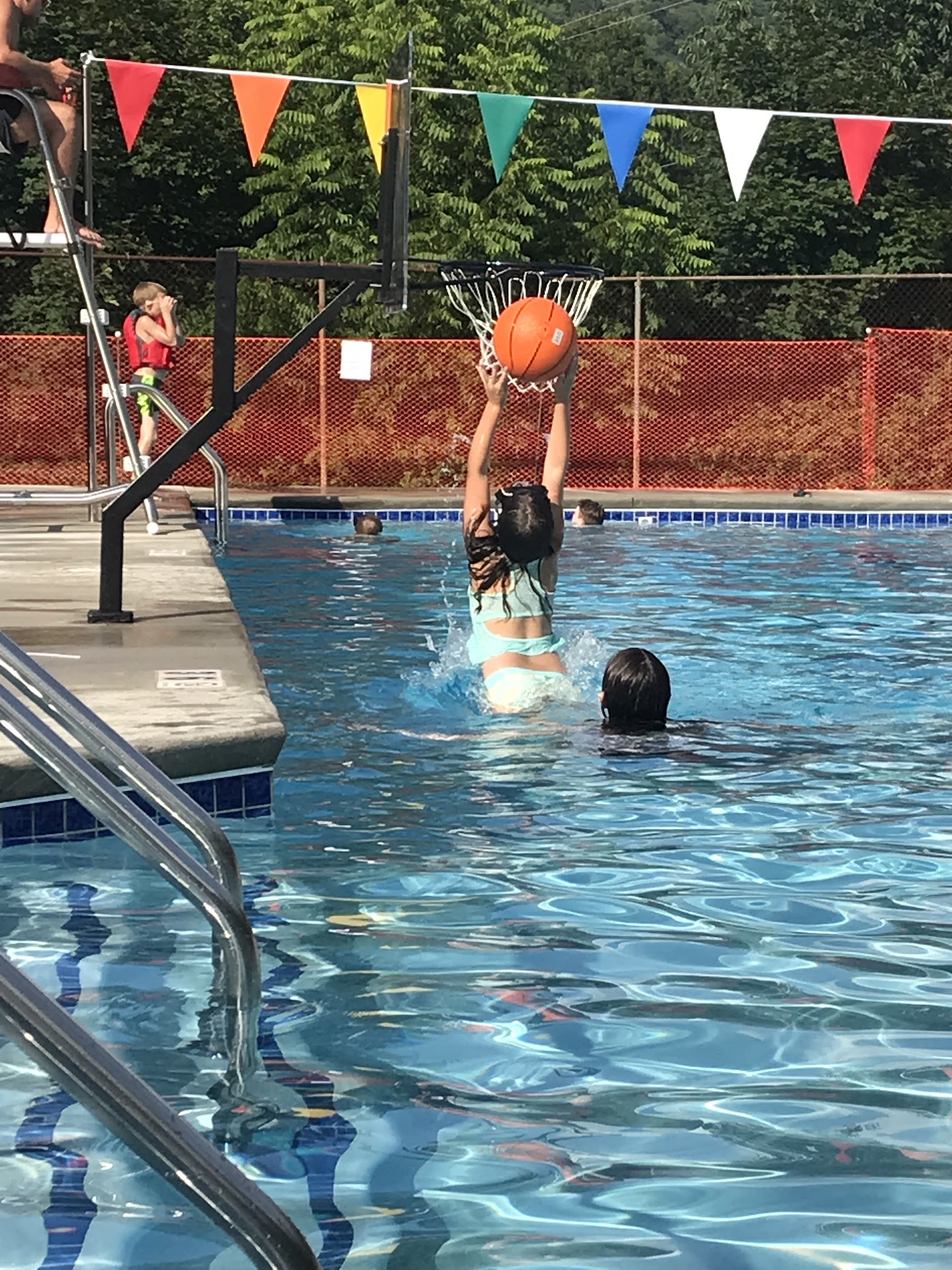 The new pool is terrific! Basketball hoops, lanes for lap swimmers, wide steps with sturdy rails for entry, renovated bathrooms with showers. Kudos to all involved in getting this to happen.