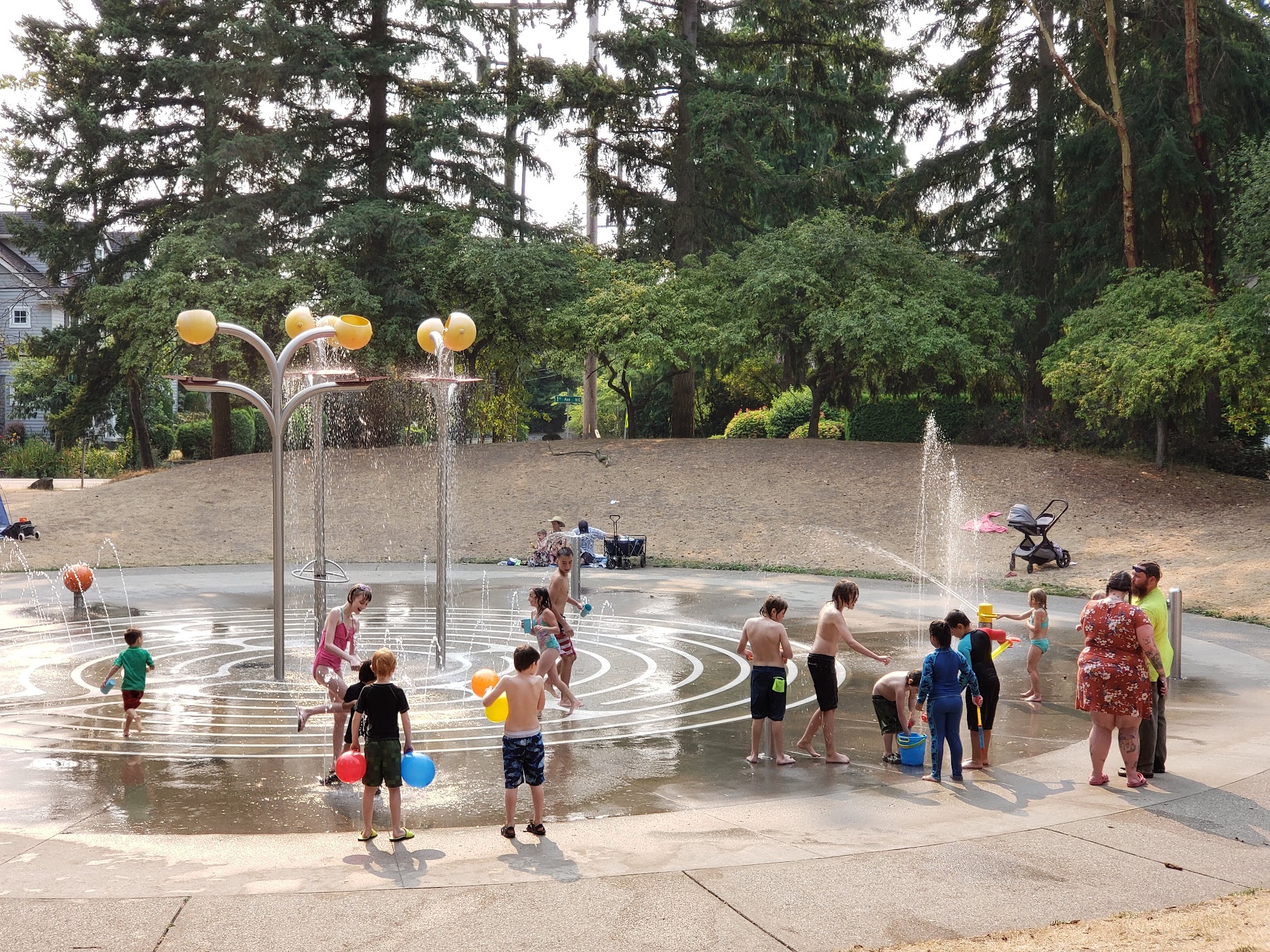 Fun for kids of all ages. Buckets, spray "guns," and fountains galore. We visited during a "heat wave" and the park was busy but not overwhelmingly so. Plenty of space to rest in shaded areas and right next door to the playground. Win-win!offering. The city government also provides lunch and snacks for children during Summer time.