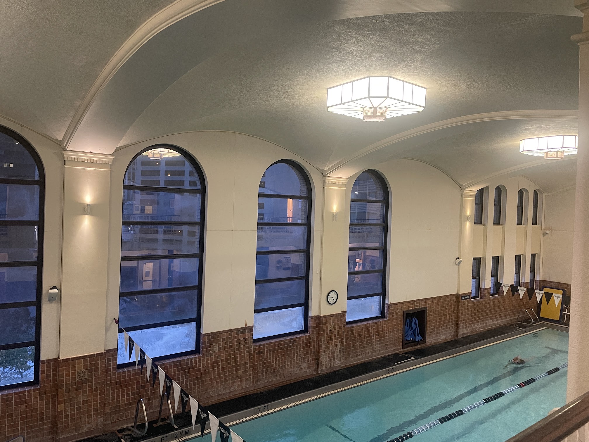 The WAC features an Olympic-sized indoor swimming pool, generally maintained at a comfortable temperature suitable for lap swimming and recreation. While specific temperatures can vary, it is typically heated to be around 80-82°F (26.6-27.7°C).