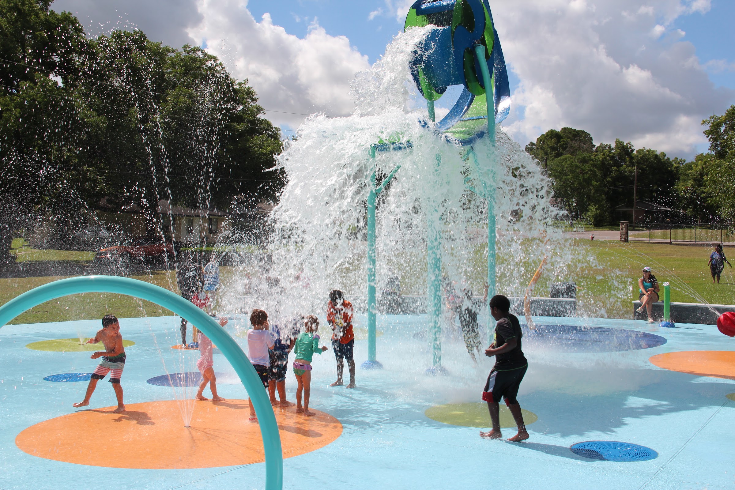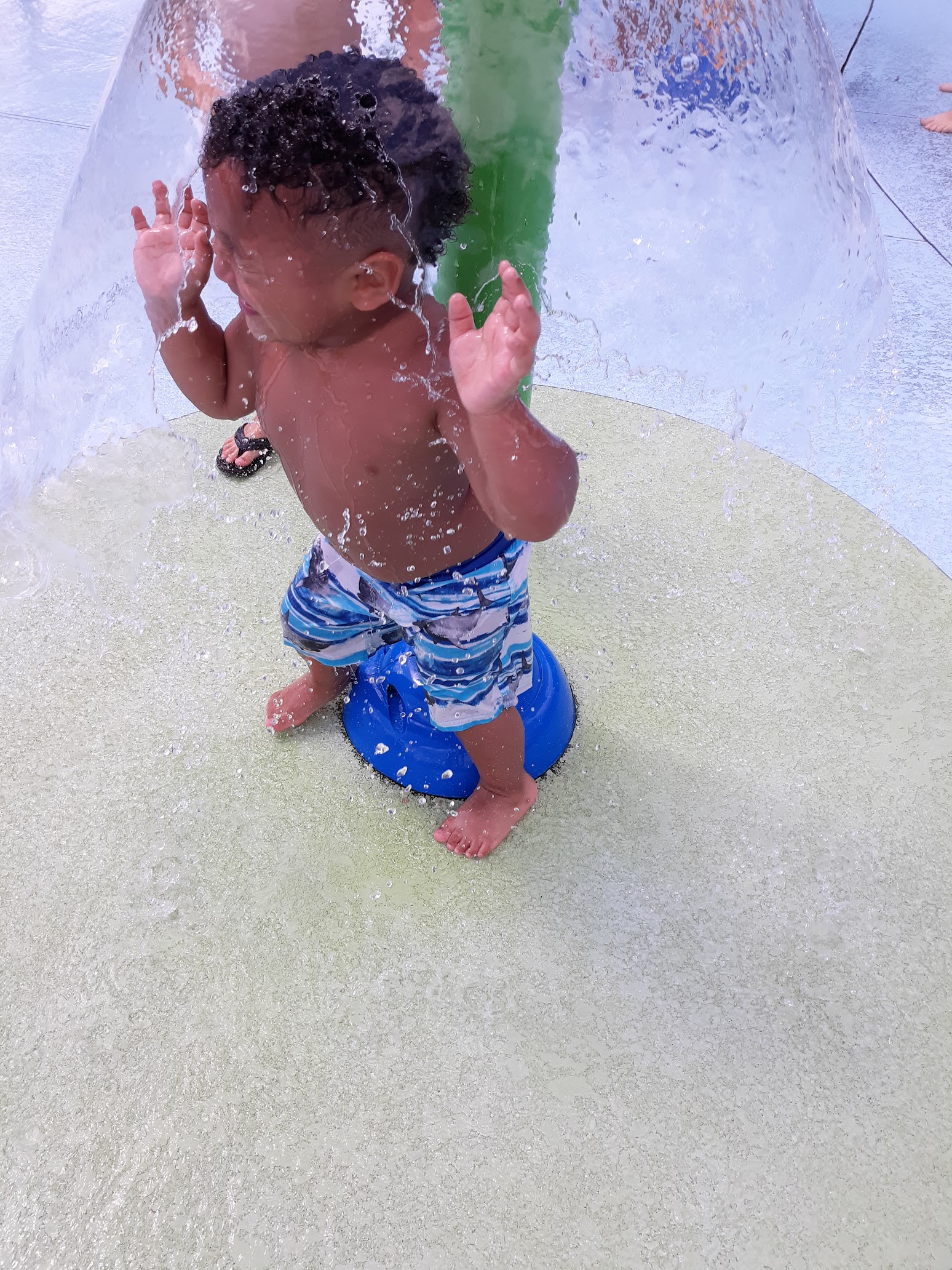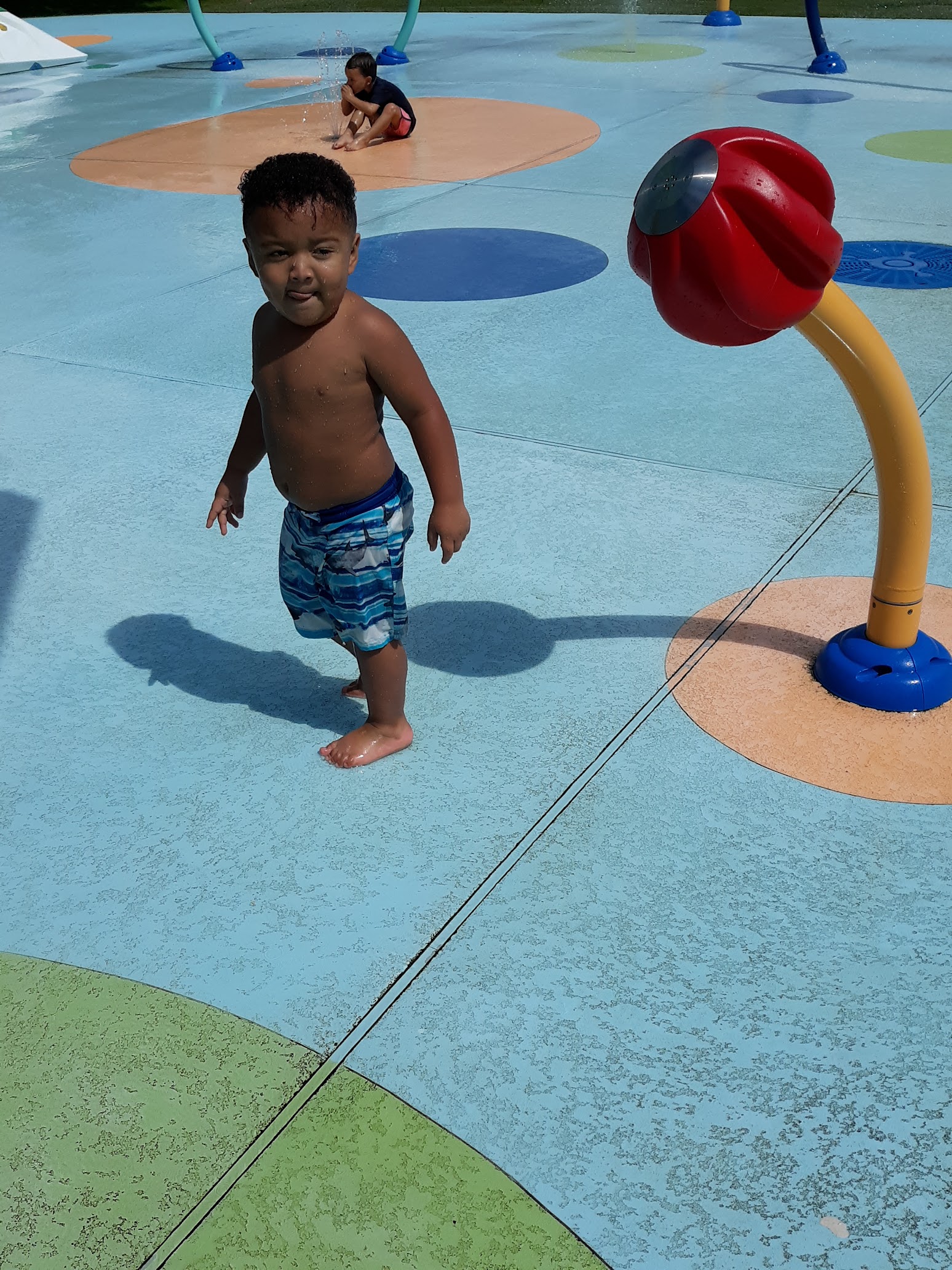 We went to the splash pad, had to wait 2 hrs for it to turn on. This was our problem, as first time there. People visiting were nice we did have others join us for a Birthday party. There was plenty of shade, but the day was in the 90s so very hot.. Beautiful park💕