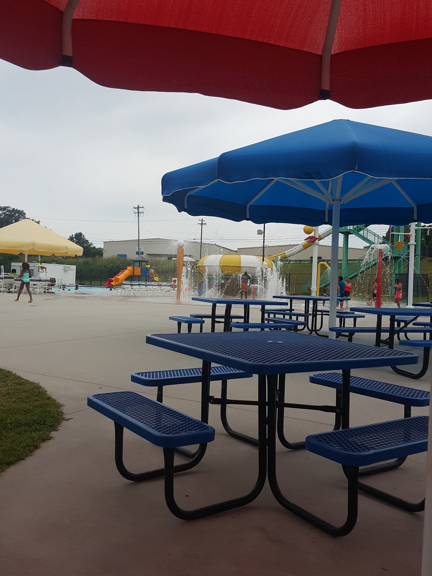 This was a very fun place to go to get out of the summer heat! With more options than just a basic pool this was fun for everyone. A huge splash pad with tons of room for everyone to play without being crowded. There were plenty of seats and chairs that are completely shaded as well as tables you can sit at. The restrooms were clean and well maintained as well which I greatly appreciate! For only 8$ a person it is well worth trying out!!