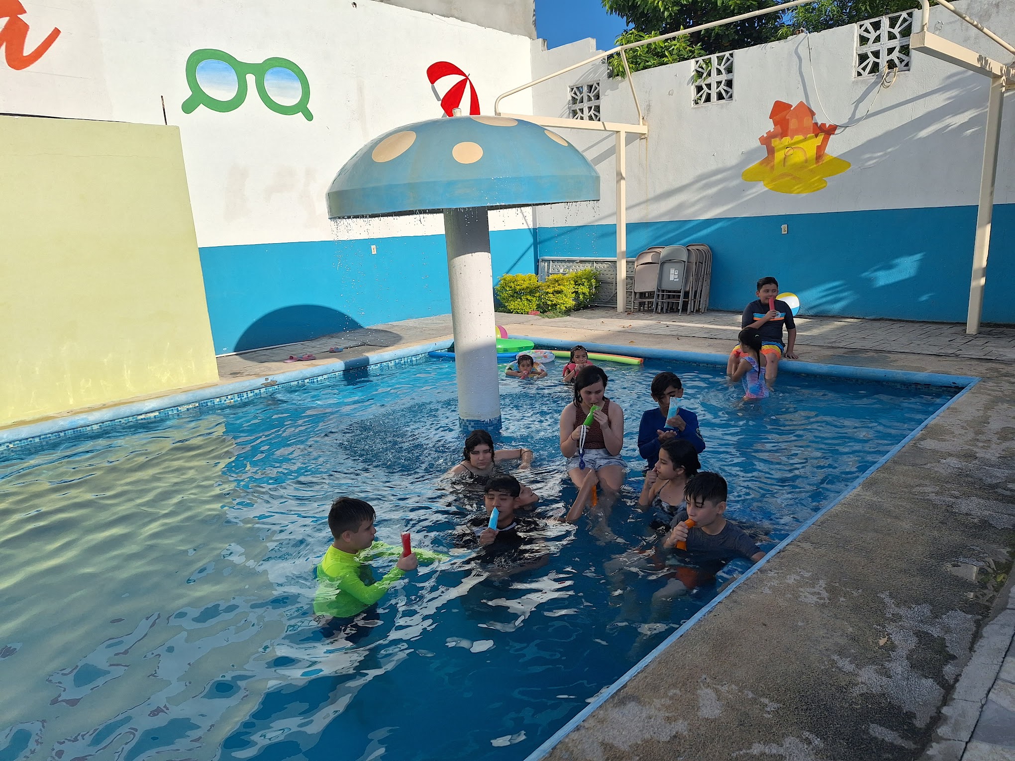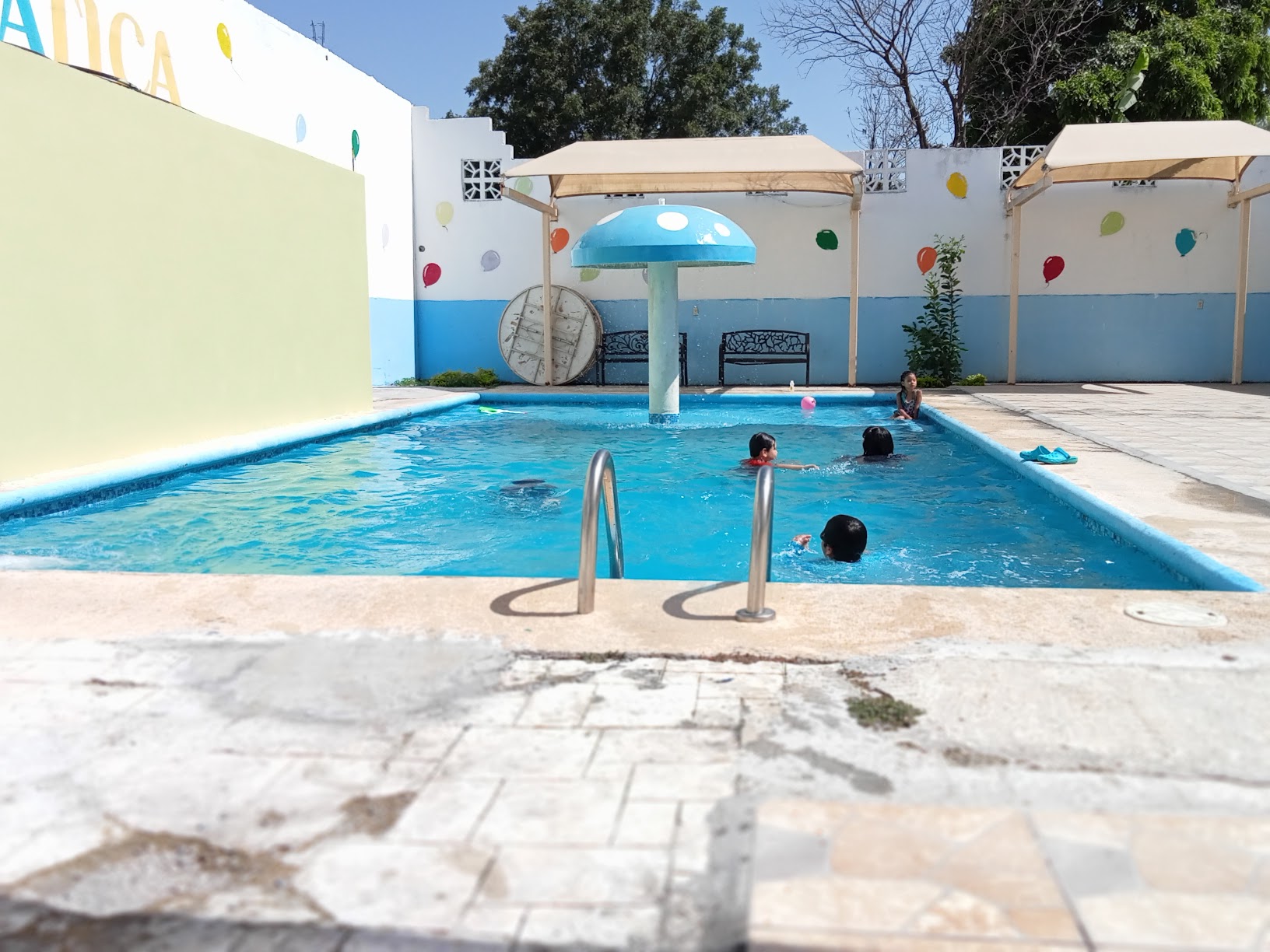 Excelente lugar la sombra que da en la tarde hacia la alberca es perfecta tiene árboles jardín y ese tobogán es la atracción de los chicos, recomendable 💯