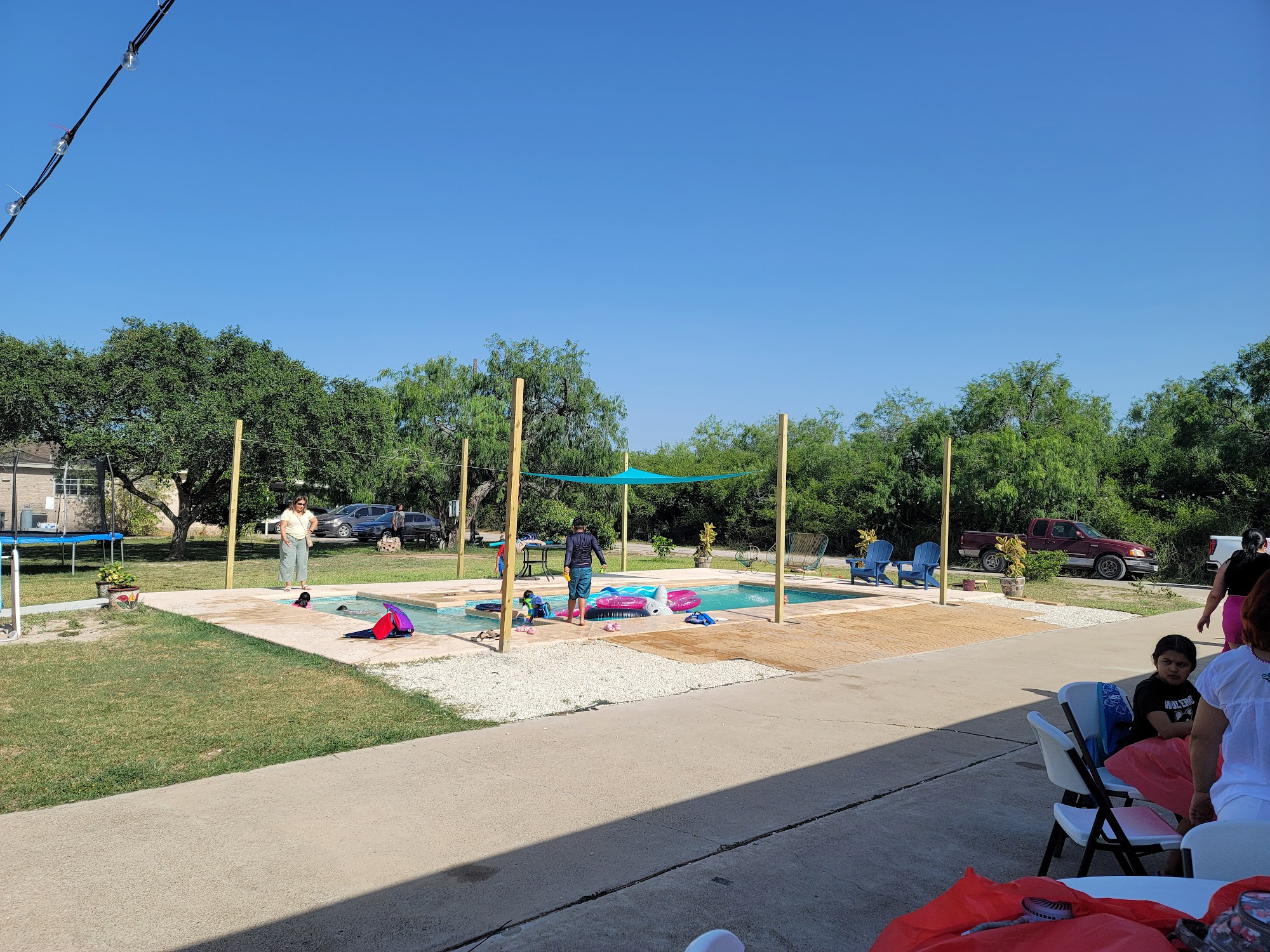 What are people saying (AI review summary)? The reviews consistently highlight the venue as an excellent choice for parties and gatherings, praising its privacy, security, cleanliness, and beautiful setting. Key amenities frequently mentioned include a pool (with a kiddie pool noted by one reviewer), private restrooms, a grill, and included chairs and tables. The owner is described as very helpful and accommodating. While several reviewers appreciated the existing shade over the pool and provided fans, one review suggested more shade for the pool and additional fans for the table area would be beneficial. Despite this, the overall sentiment is overwhelmingly positive, with strong recommendations from guests.