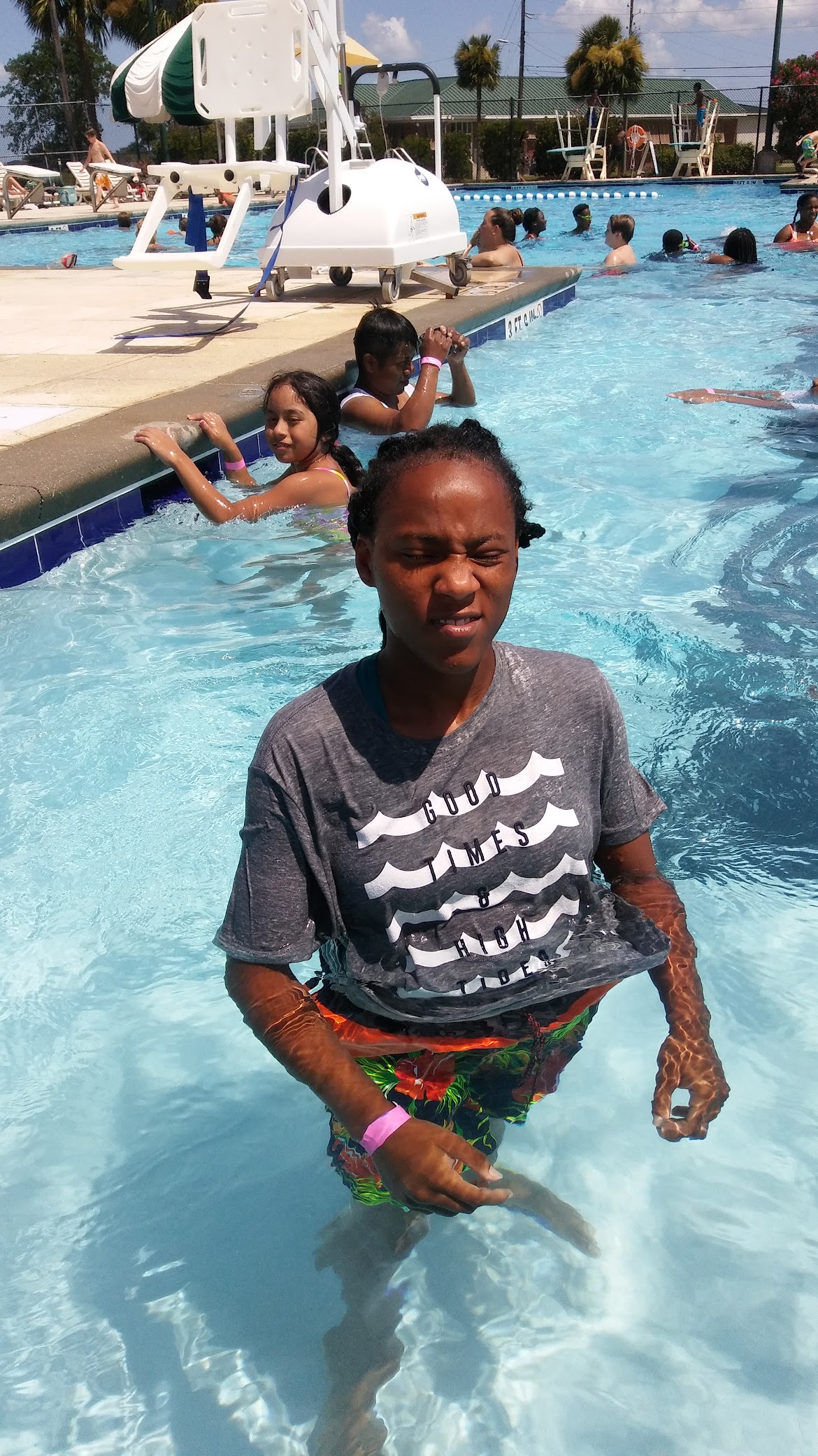 I've been here one time, and I must say that I had a lot of fun! There's two diving boards, an Olympic sized pool, a more shallow general swimming area, a kids play area (adults too), and a giant water slide to top it all off. It really is a nice place to go. But to be fair, I went on a night that was for college students and it was after hours, and also free. But still, the experience was great. My only complaint goes to the lifeguards, who only one of seemed to actually care about their jobs. Besides that, great experience altogether. I can't say what it's like for regular hours, but when I went, it was even better than going to the Jekyll water park.