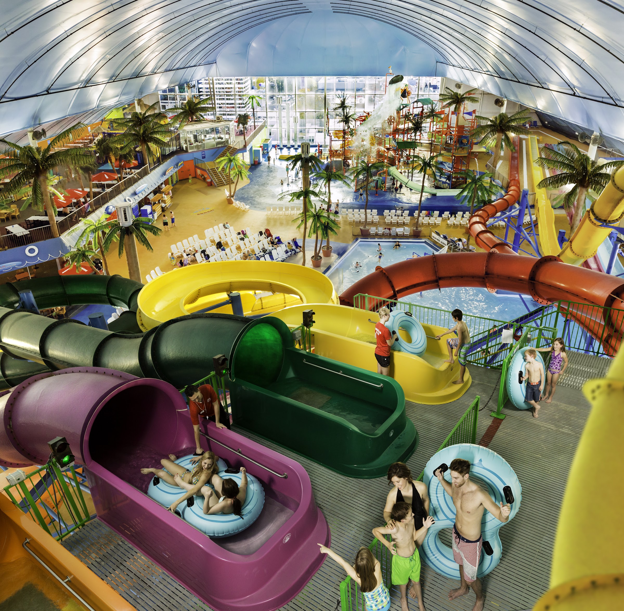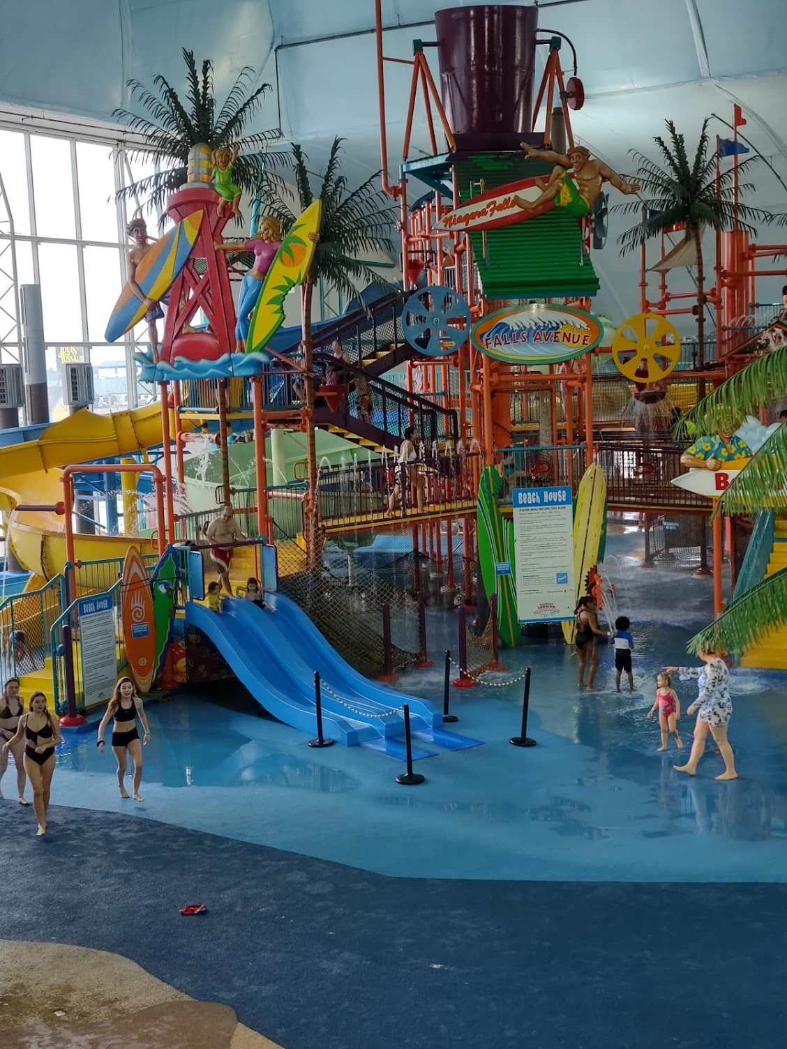 Fallsview Indoor Waterpark, located at 5685 Falls Ave, Niagara Falls, ON, is a 3-acre, family-friendly indoor water park directly connected to Casino Niagara and various hotels. It features 16 high-speed waterslides, a massive wave pool, a 1,000-gallon tipping bucket, and various other interactive water attractions, offering year-round entertainment regardless of outside weather conditions.