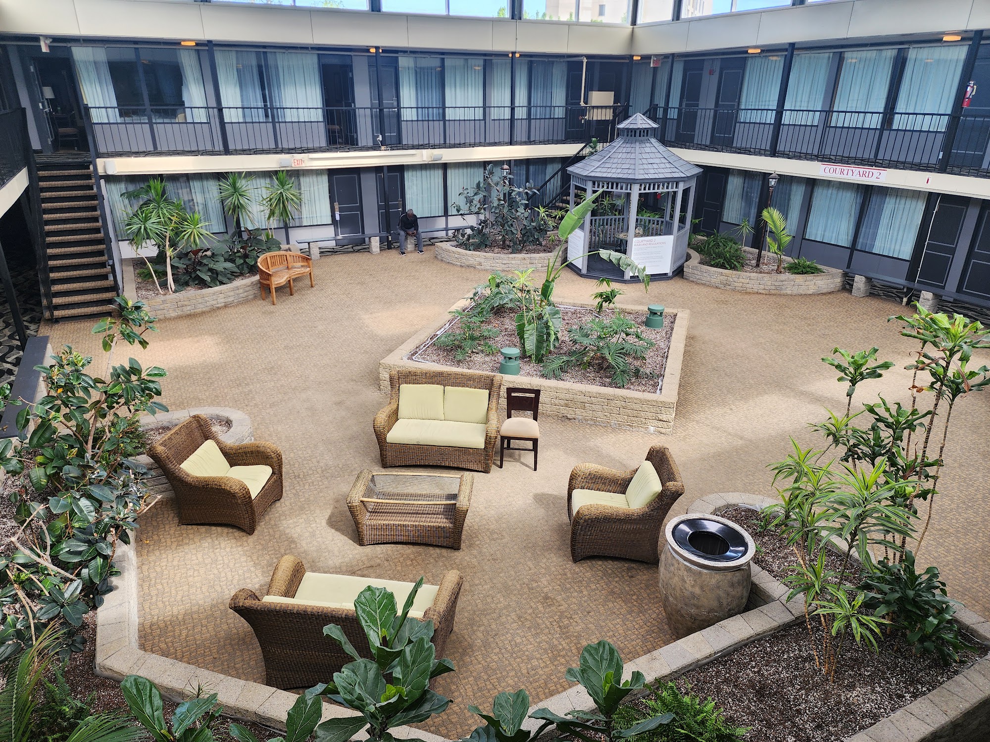Parking was HORRIBLE! Enough said. Way overpriced! For the price we paid, breakfast should have been included! This hotel is a DO NOT STAY! They claimed it is a fire hazard to have a microwave in a hotel room.....This is the first time I have ever heard of such nonsense! Not okay to take a screaming baby to a whole other floor to heat up a bottle. Not acceptable at all, especially when you have to wait cause there is a line to use ONE microwave for many many many people. Not to mention, the room was outdated, and 100% a fall hazard for a small child. We stayed on the 3rd floor and the window screen just popped out like NOTHING. My toddlers could have fallen to their death. Very easy for a child to climb and boom! Lawsuit waiting to happen and fatality. NOT SAFE AT ALL FOR SMALL CHILDREN! There should be safety locks on the windows (cages)! I would NEVER stay there again. The air did not work, had to fight with hotel staff to get towels and pillows (and we still did not get enough to accommodate all us) and the tub would not drain properly! DO NOT stay here! The ONLY plus was that it was connected to the Waterpark. Other then that, complete TRASH!