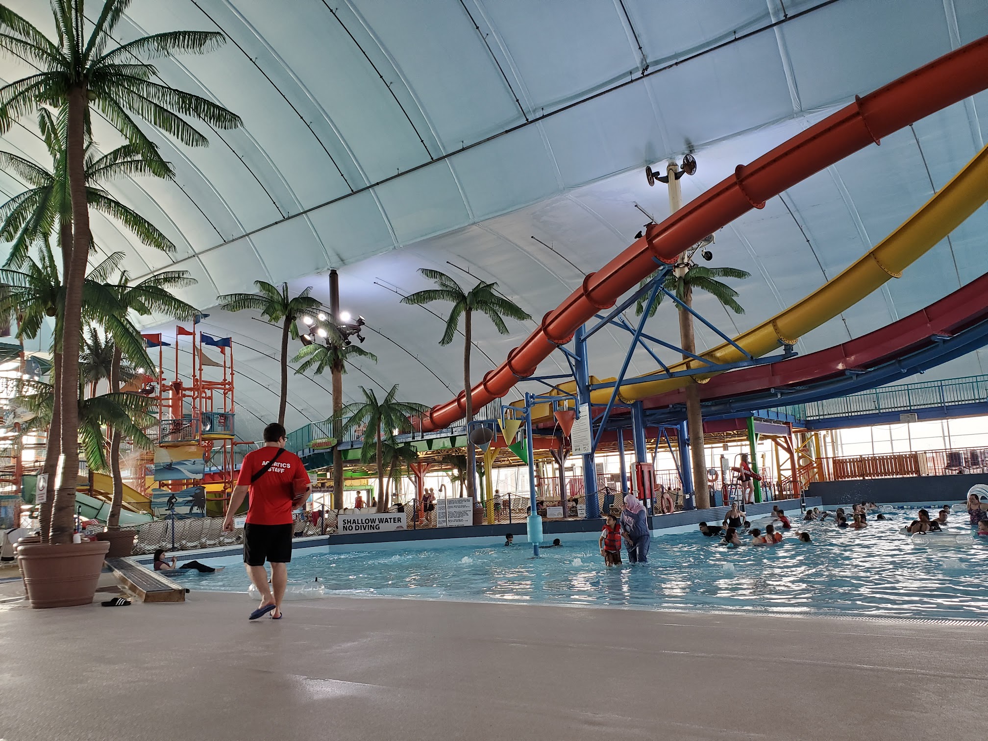 My family and I usually love it here! This was our fourth visit, and the worst. We paid extra for a room upgrade providing bunk beds for our kids. For a premium price, the room was disappointing. It started on check in. We did so online but still had to wait in a line that took over an hour to get our room keys. Upon entry, we noticed wallpaper was literally hanging and falling off the walls. The outlet in the washroom had a huge burn mark on it (dollar store fix), alarm clock did not work and our cheap universal tv remote did not work properly with the outdated tv. There were dust bunnies and a pile of hair in the washroom corner. I understand this is the last week of summer before school starts and it’s very busy BUT there has to be a cap on how many people are allowed day passes. The whole waterpark was so overcrowded. The outdoor pool was so congested you couldn’t move without bumping in to someone. Same with the main pool. It really took away from our experience having booked in advance. They clearly aren’t putting money into upkeeping the grounds, so why be so greedy to accept every walk in and ruin it for returning guests that had a reservation? I understand that this place isn’t a 5 star and we go in knowing and understanding this. This visit on all levels was disappointing.