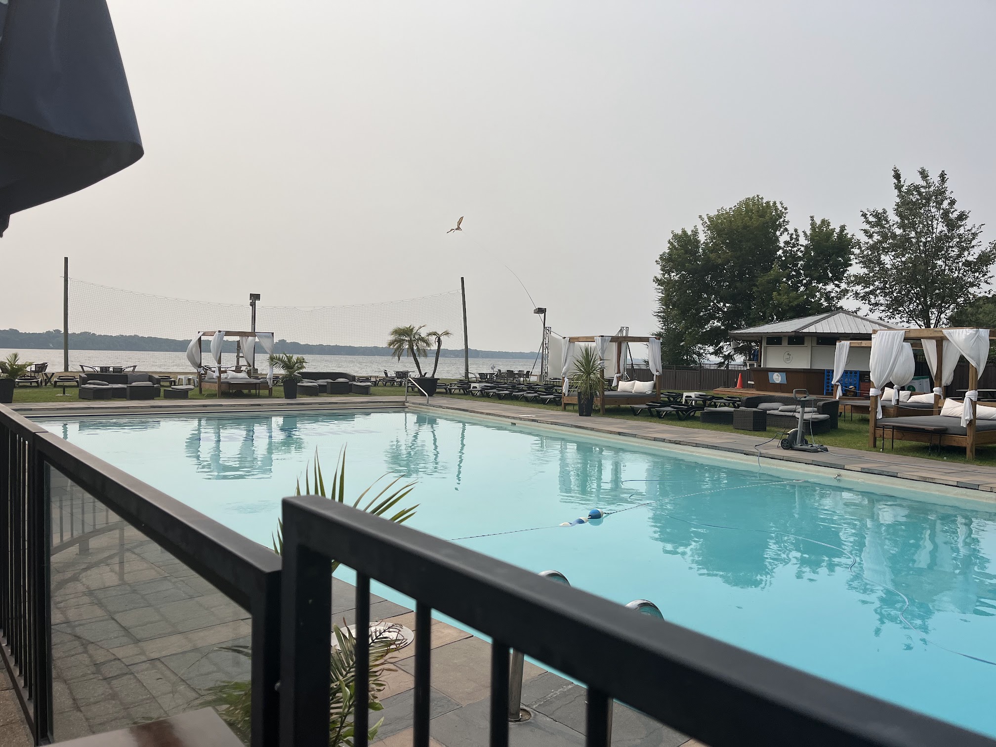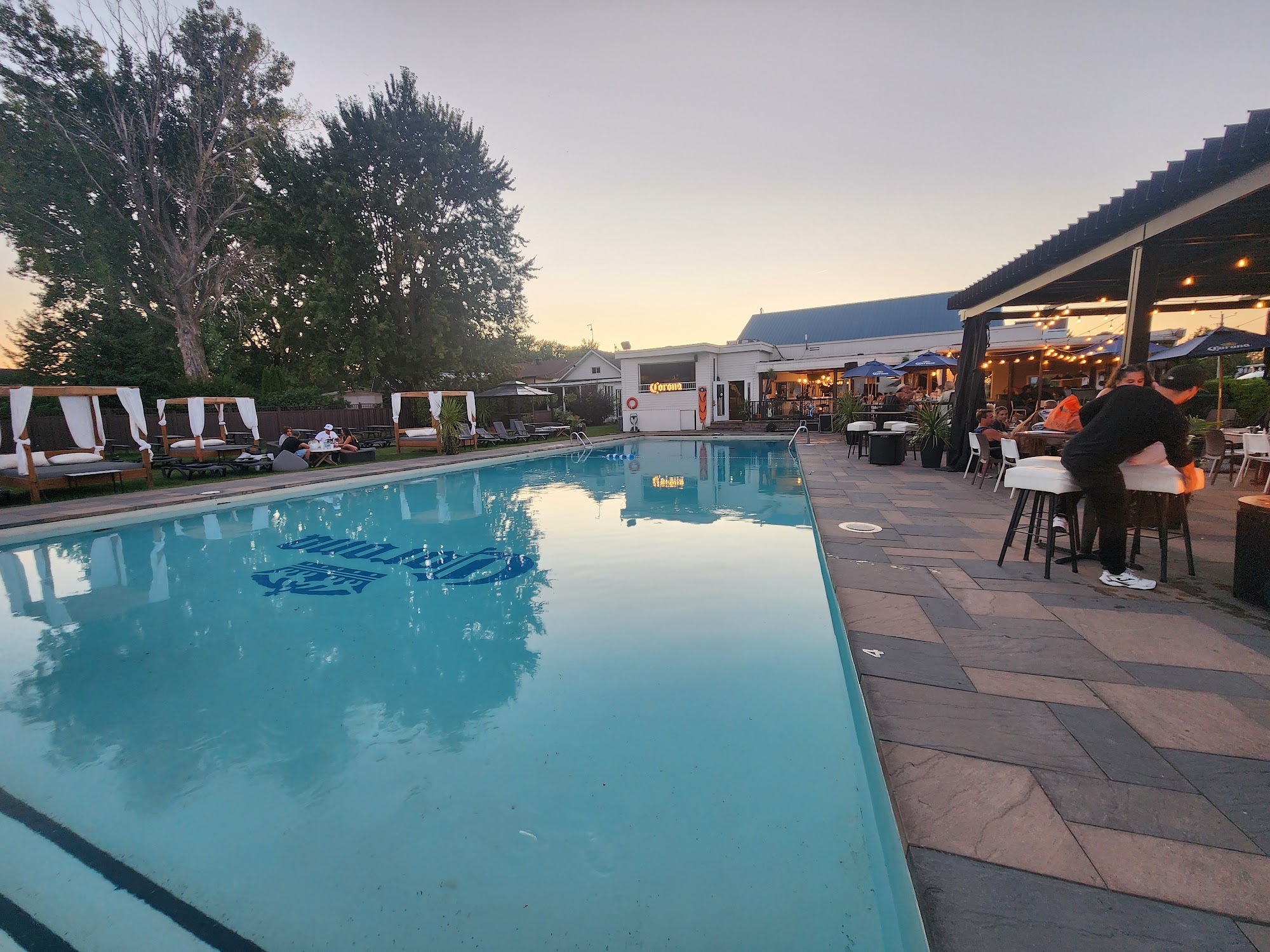 Had an Airbnb within walking distance - was very glad I looked at the reviews before we went down for our pool reservations. There is no outside food and drink, and they do check your bag. I did not order anything while I was there, but my daughter and her boyfriend did and they said it took quite a while to get their drinks. The pool did have a fair amount of debris in it, but the water temp was good. For $7 CAD I did not think it was a bad deal for admission to the pool, especially on a sweltering 92° day. Staff was very polite and attentive, and the gentleman checked us in and had no issues with our lack of French speaking abilities.