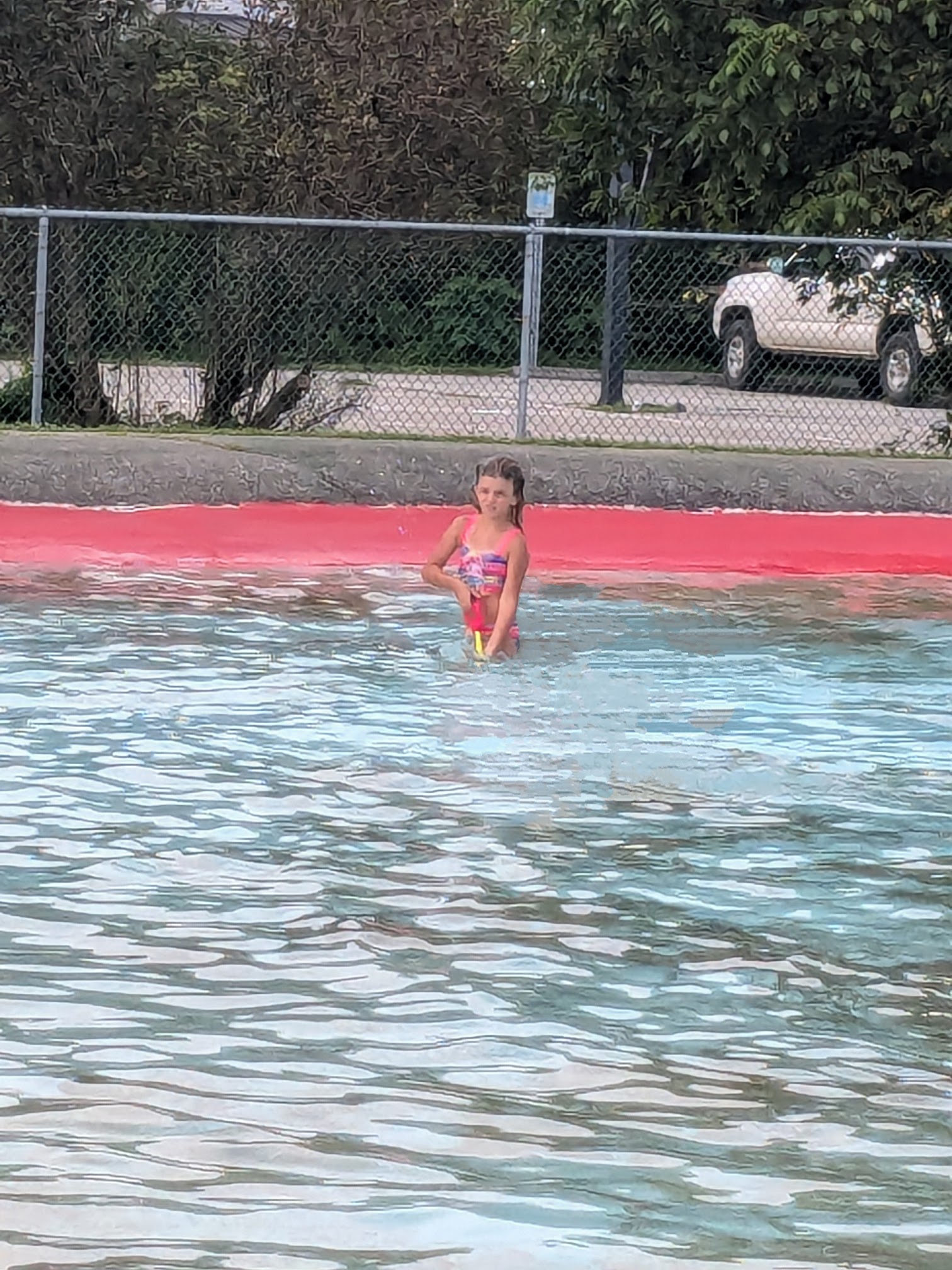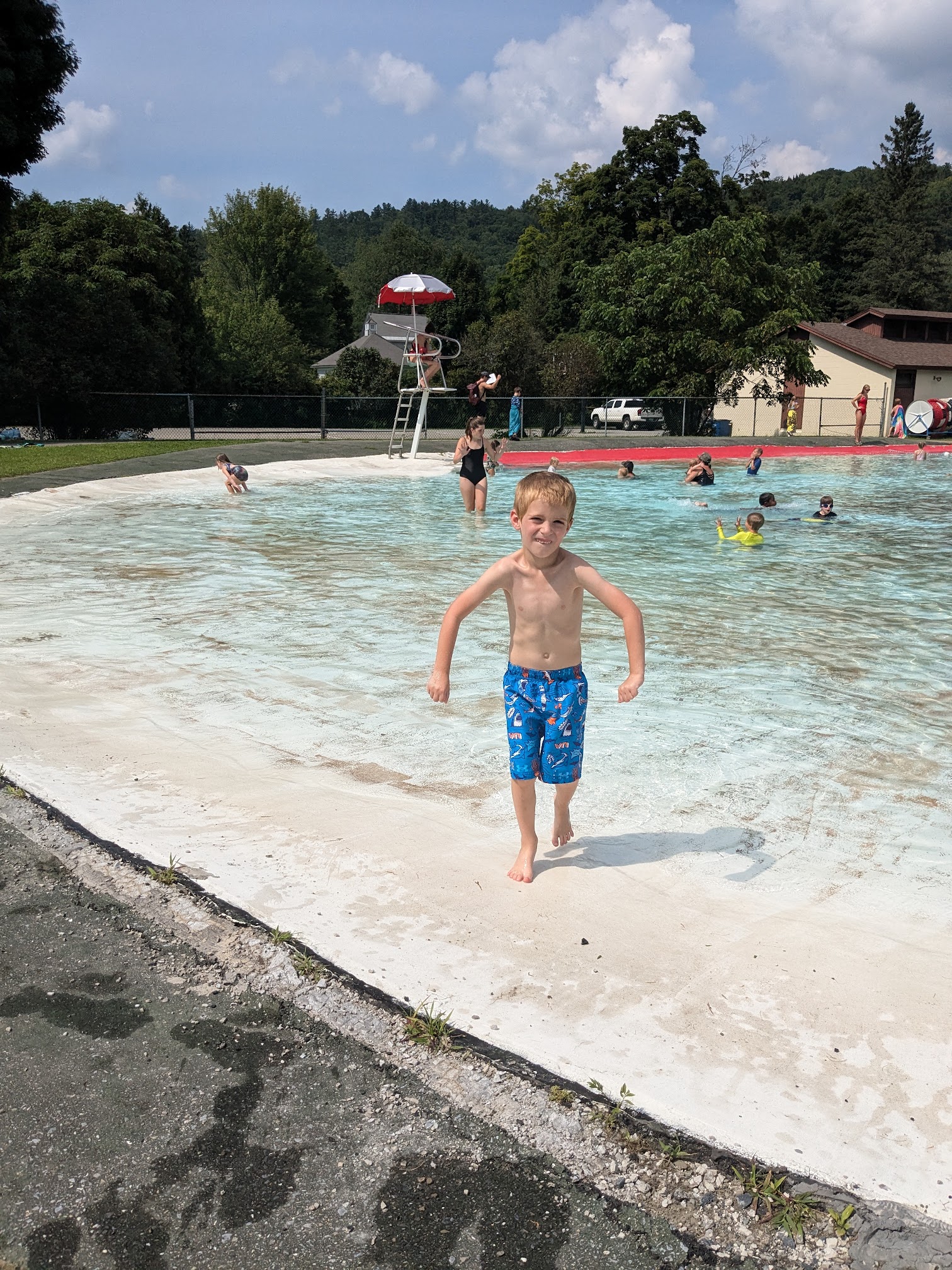 We love coming here my 2 little ones love the shallow end it's a huge area and it only goes to my knees!! On the other end my 17 and 18 year old have the deep end with diving boards and for those that want to do laps well there is a spot for that too!!!! No floats or life jackets allowed but they have lifeguards on duty!!! Only $5 a person, $20 for a family infants are free!!