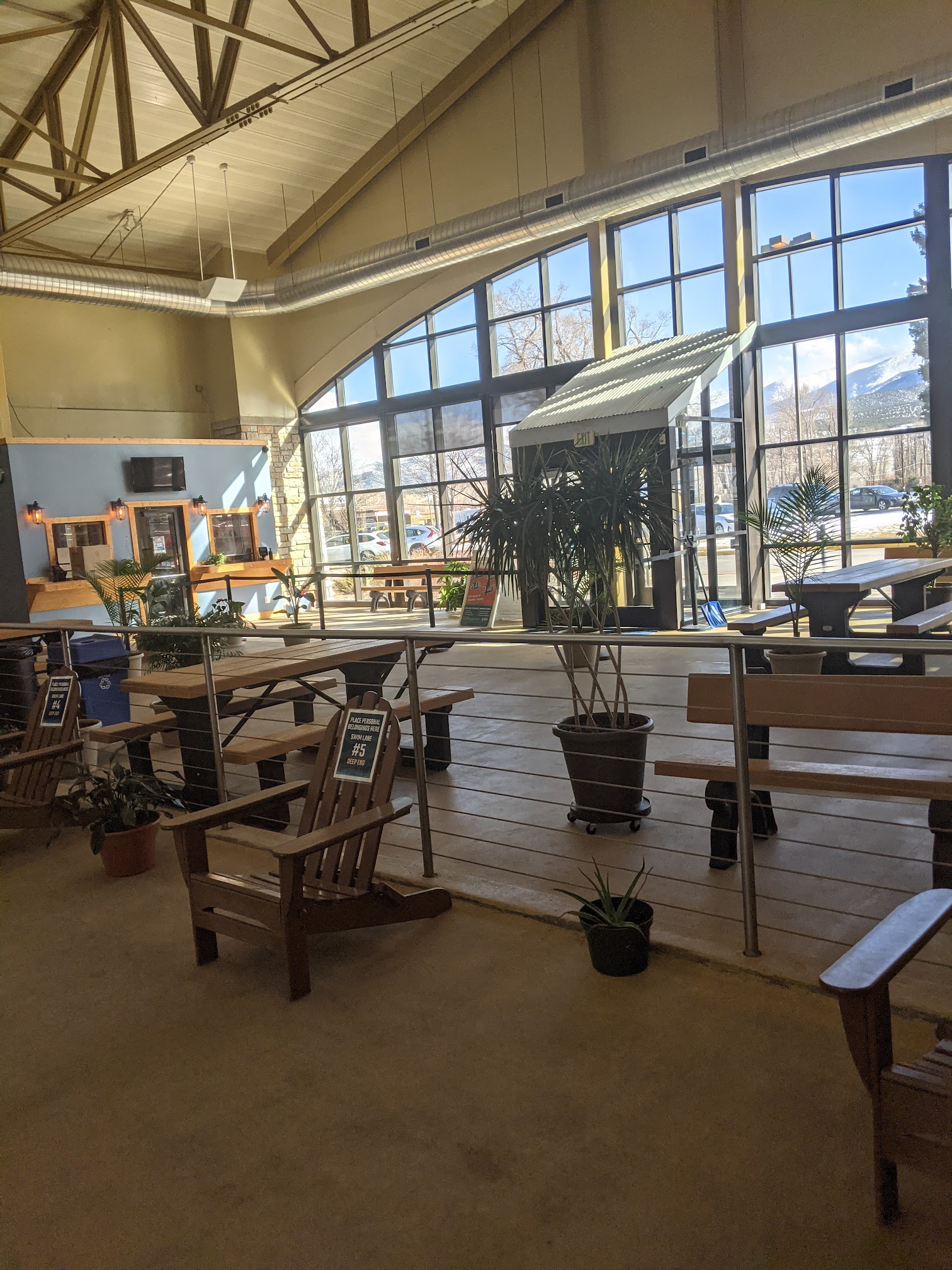 Big pool, Includes: Hot pool (Abt. hot tub temp), Cold pool, Rock wall, Diving board, Slide (very fun), 2 Lap lanes, Beach balls/Floaties (You can bring your own) Showers (Free with entry), Ice cream, Friendly staff, Funny open sign, Pleasing building design, Water depth ranging from