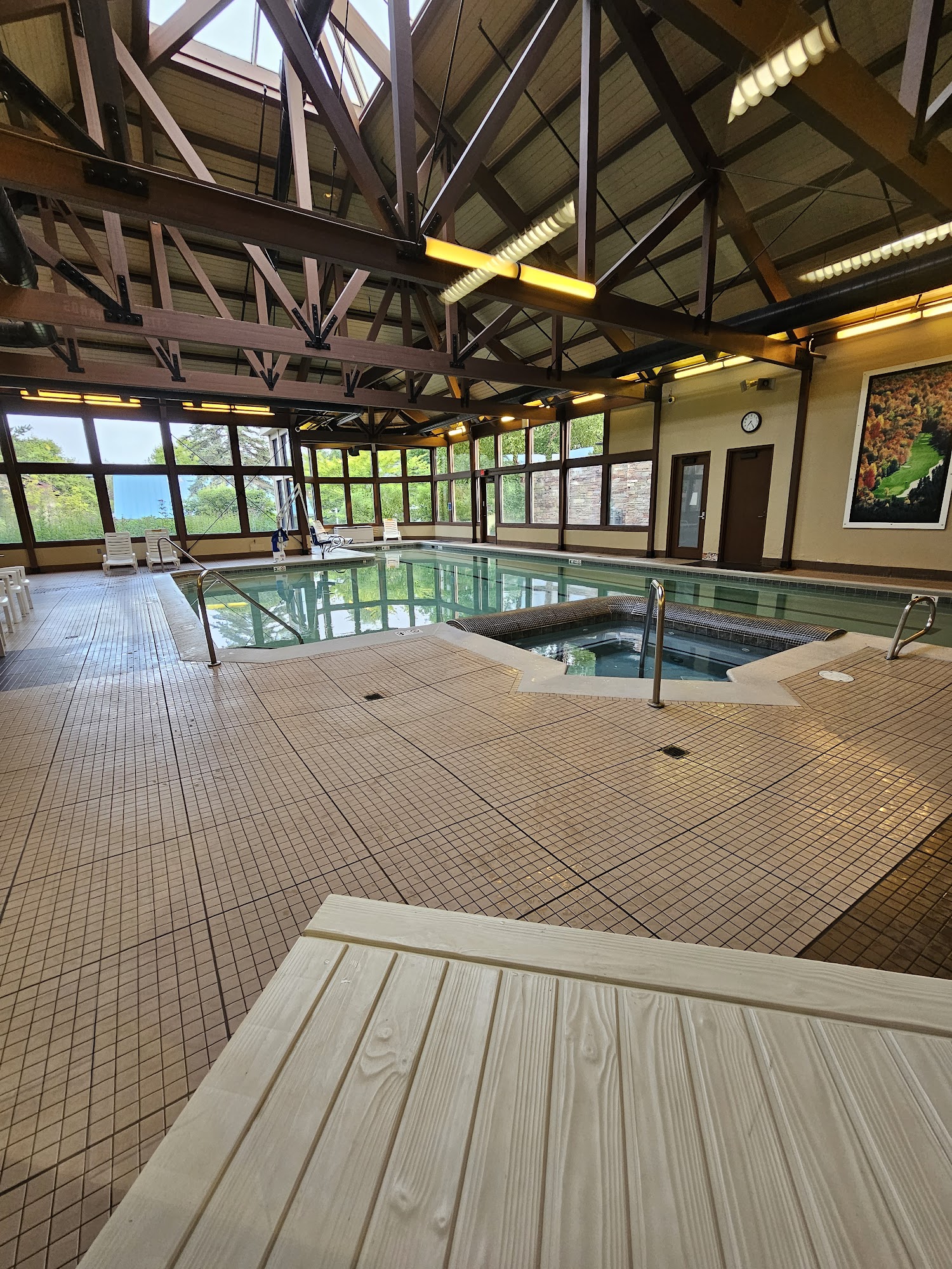 This is a nicely appointed spa, fitness center, and pool at Crystal Mountain Resort. My only complaint is that the fitness center does not open until 7:00 each morning. We have young children and my wife and I like to take turns hitting the fitness center before the kids wake up, but that wasn't possible because the center opened so late. That meant that we really couldn't take advantage of it during our stay. But for those who can, it looks like a nice facility.