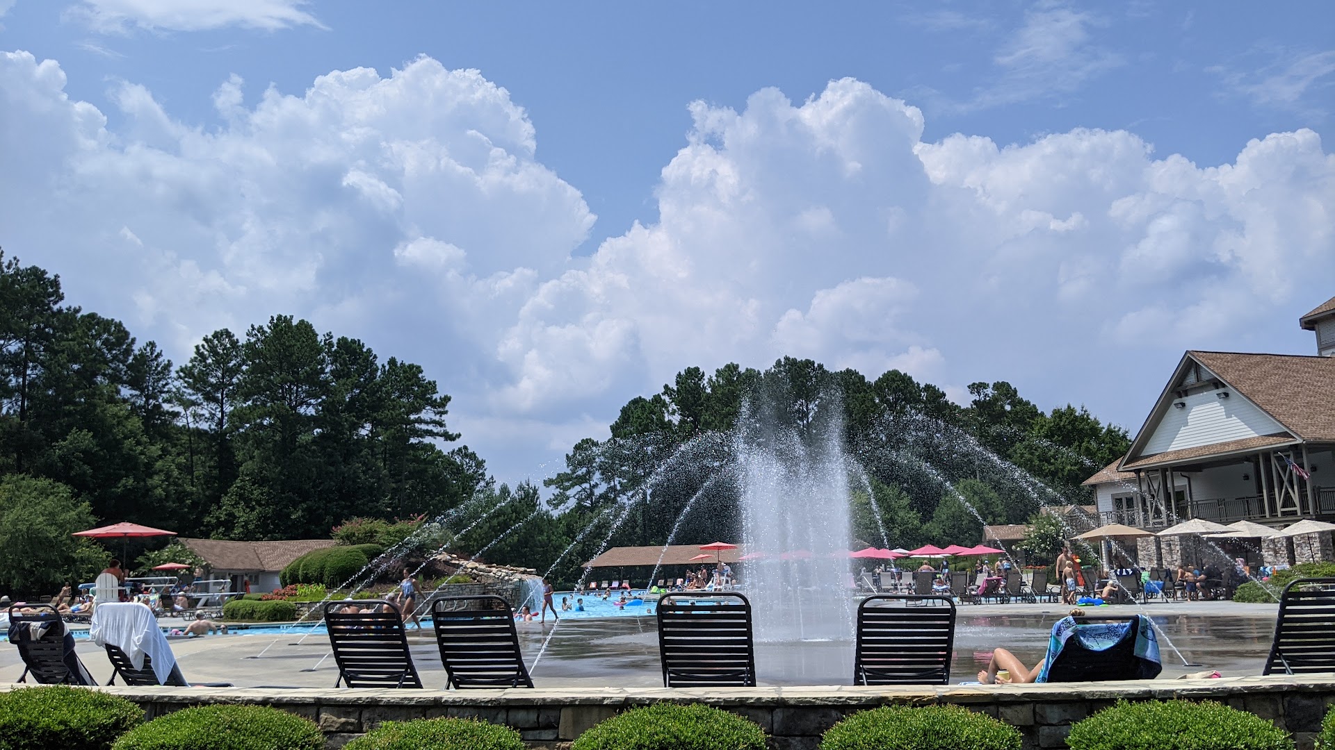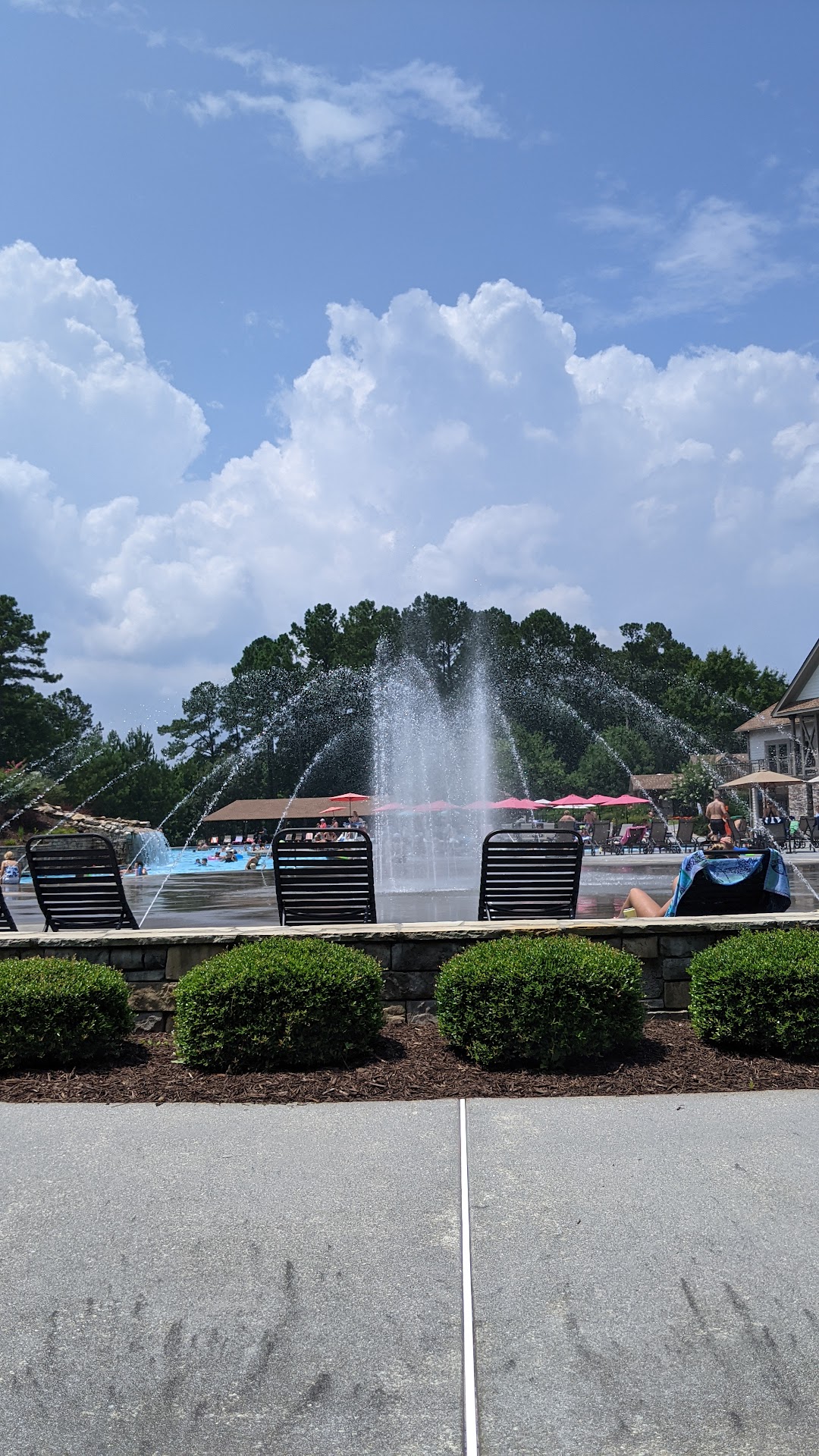 Beautiful pool owned and operated by a private Club which is a separate entity and not associated with the BridgeMill Homeowner Association. Anyone anywhere can buy a membership to the club at a variety of levels to include the pool, golf, tennis & more. The pool maintenance and Landscape varies from year to year but most members seem to enjoy the huge slide water features in pool