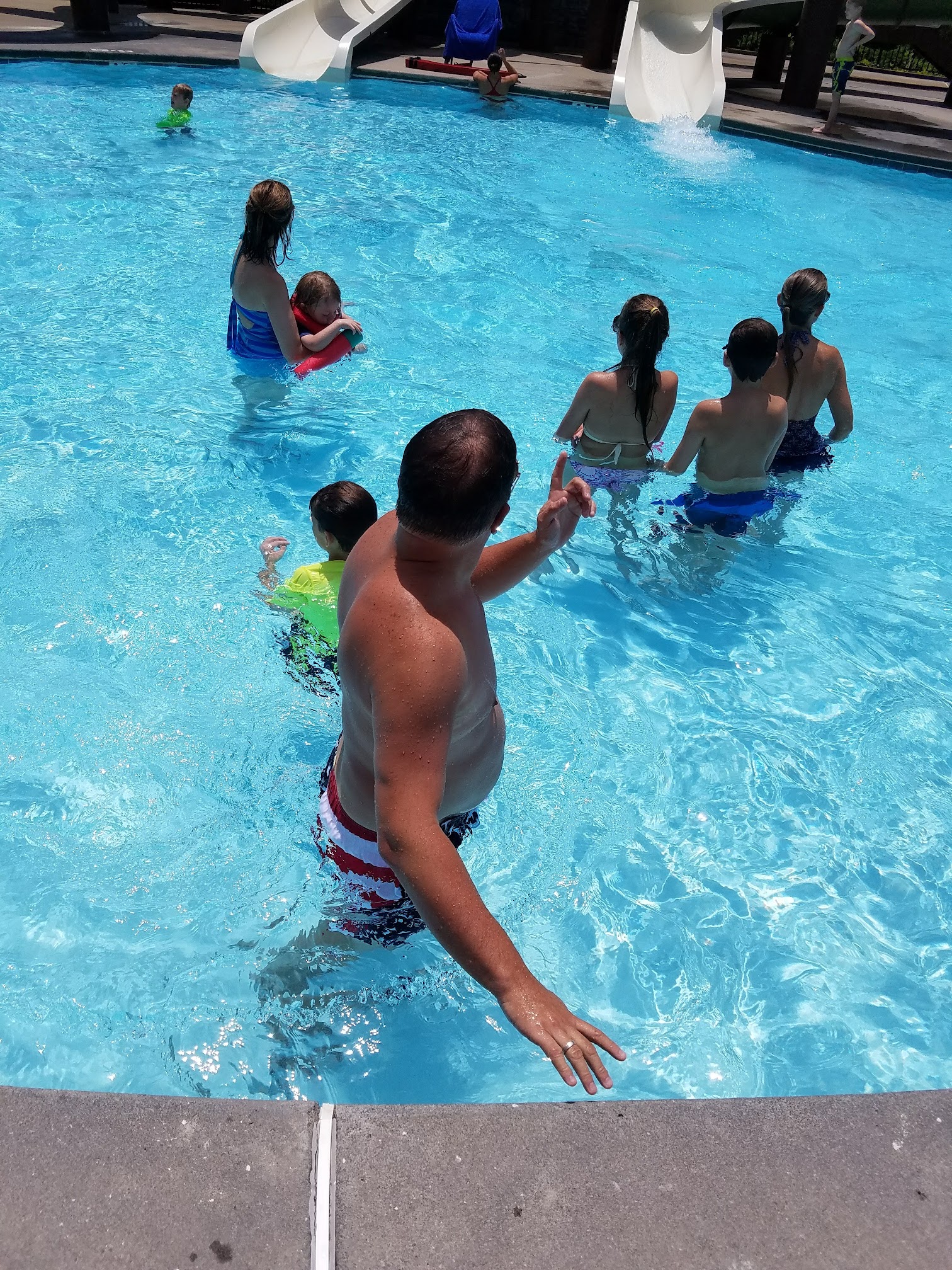 Clean, big, and kid friendly. The pool is very big with 2 waterslides for all ages to enjoy. The play ground and basketball court are another plus.