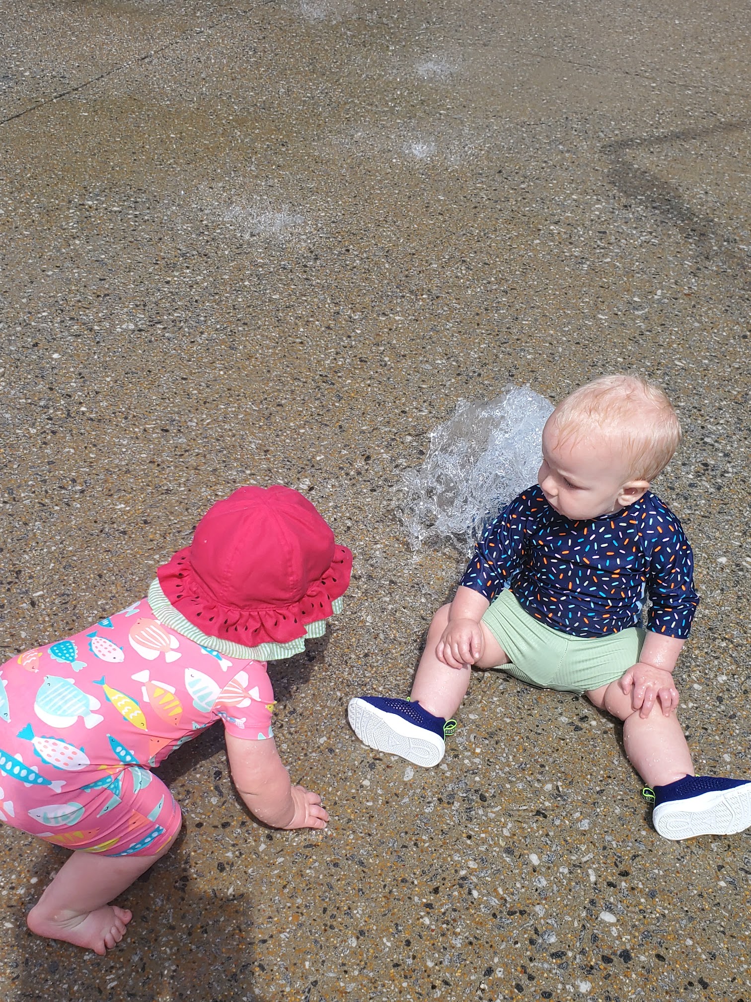 This was a perfect little splash pad for my 9 month old, and our 11 month old friend! They will enjoy it for a number of years to come as well. It is a nice, low-key play space. They only allow 30 people at a time, so it doesn't get super crowded, and I didn't have to worry about them being over powered by a bunch of older kids. There are enough different spouts to keep the kids interested, but it's small enough and enclosed so you can easily monitor everything. We will definitely be back again!