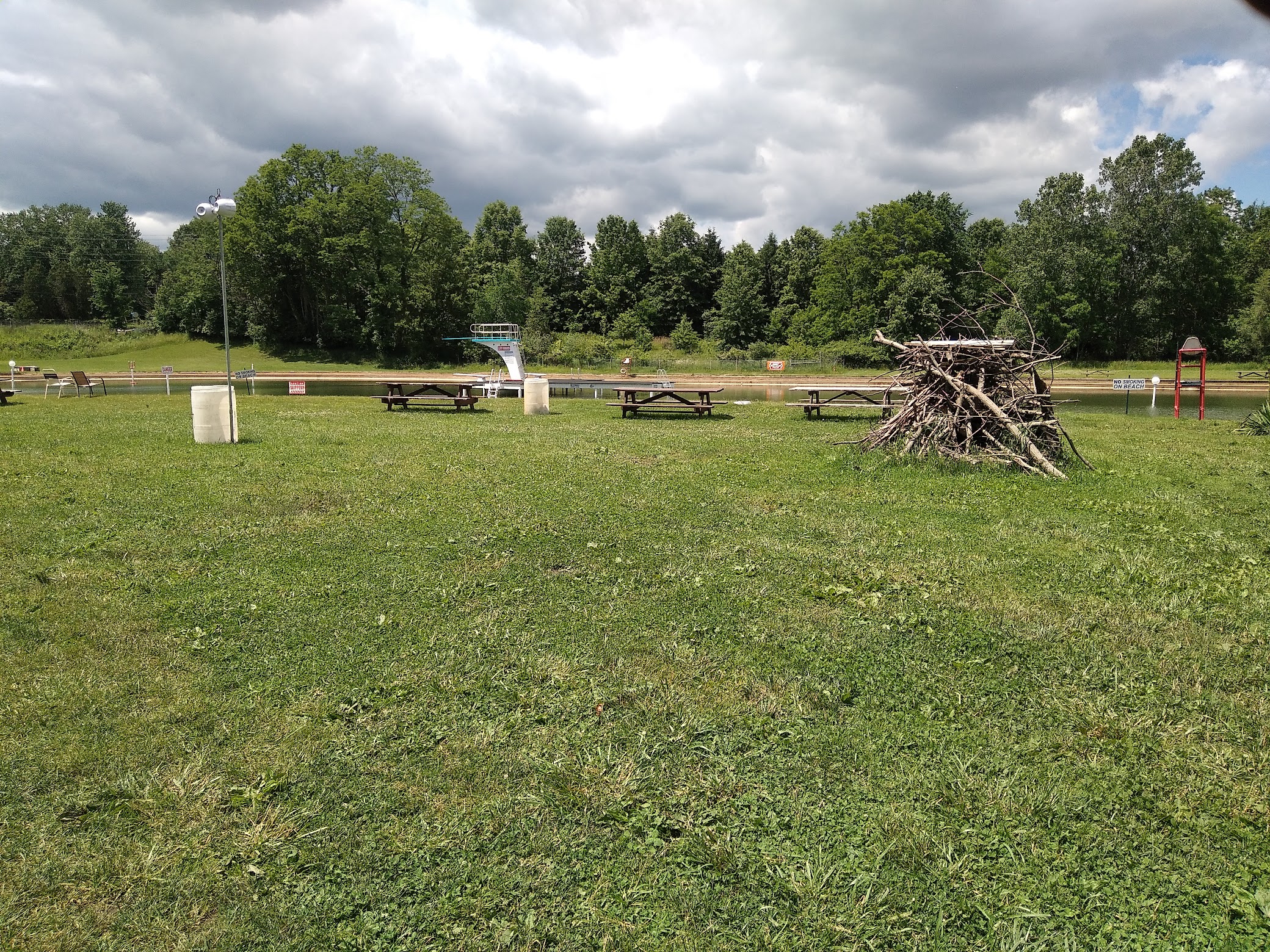 Clean lake swimming hole with picnic tables, grills and pavilions, plus clean restrooms.