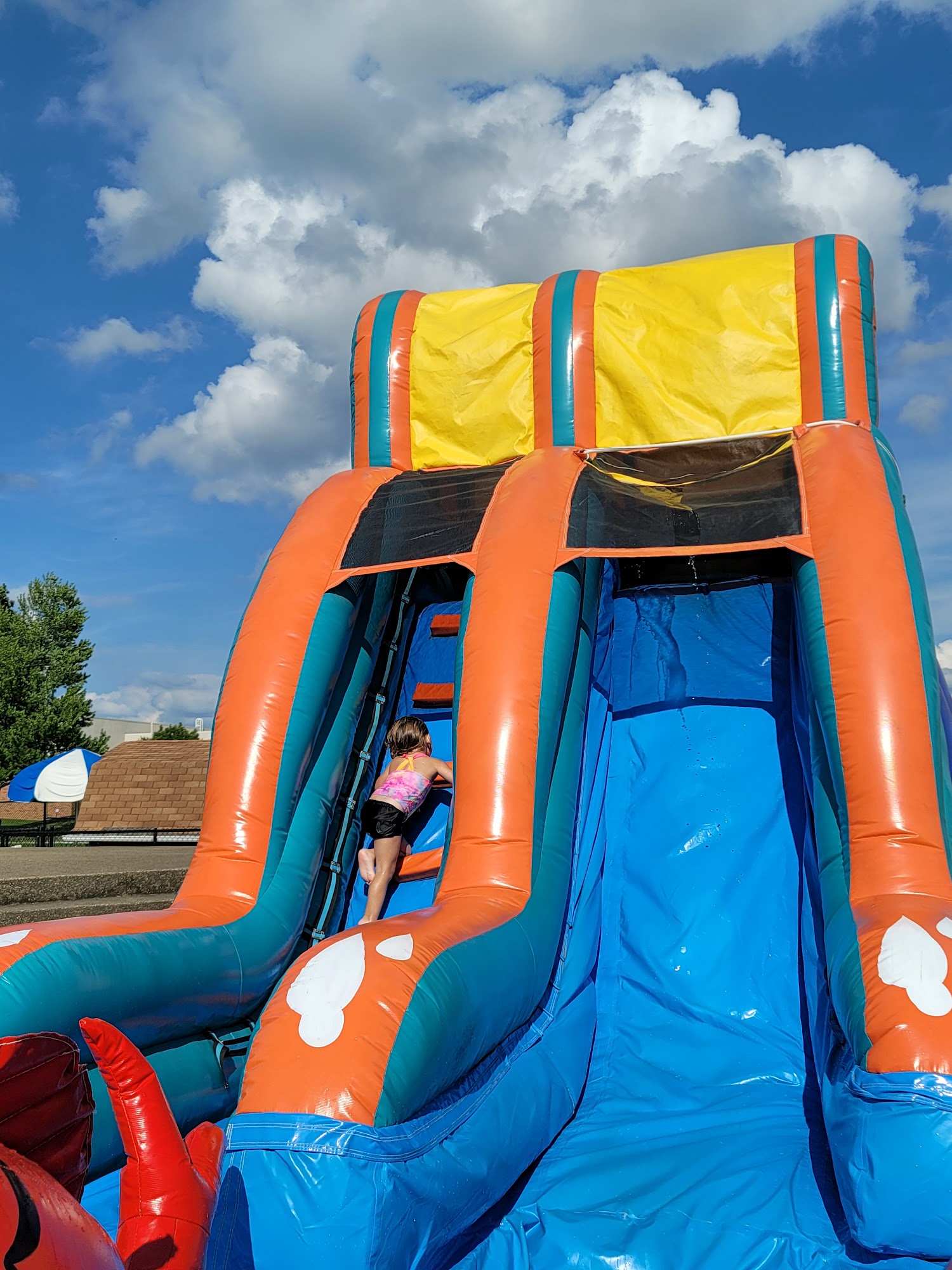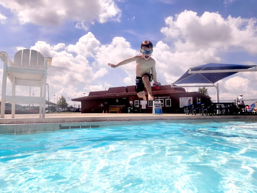 Very large pool, with a lot of different water depths. Also a nice kids area and a lot of grass area for sitting and relaxing. Had a Kona ice truck and concession stand. We went on a Tuesday and it was packed, a lot of people everywhere. $16 per adult for a day.