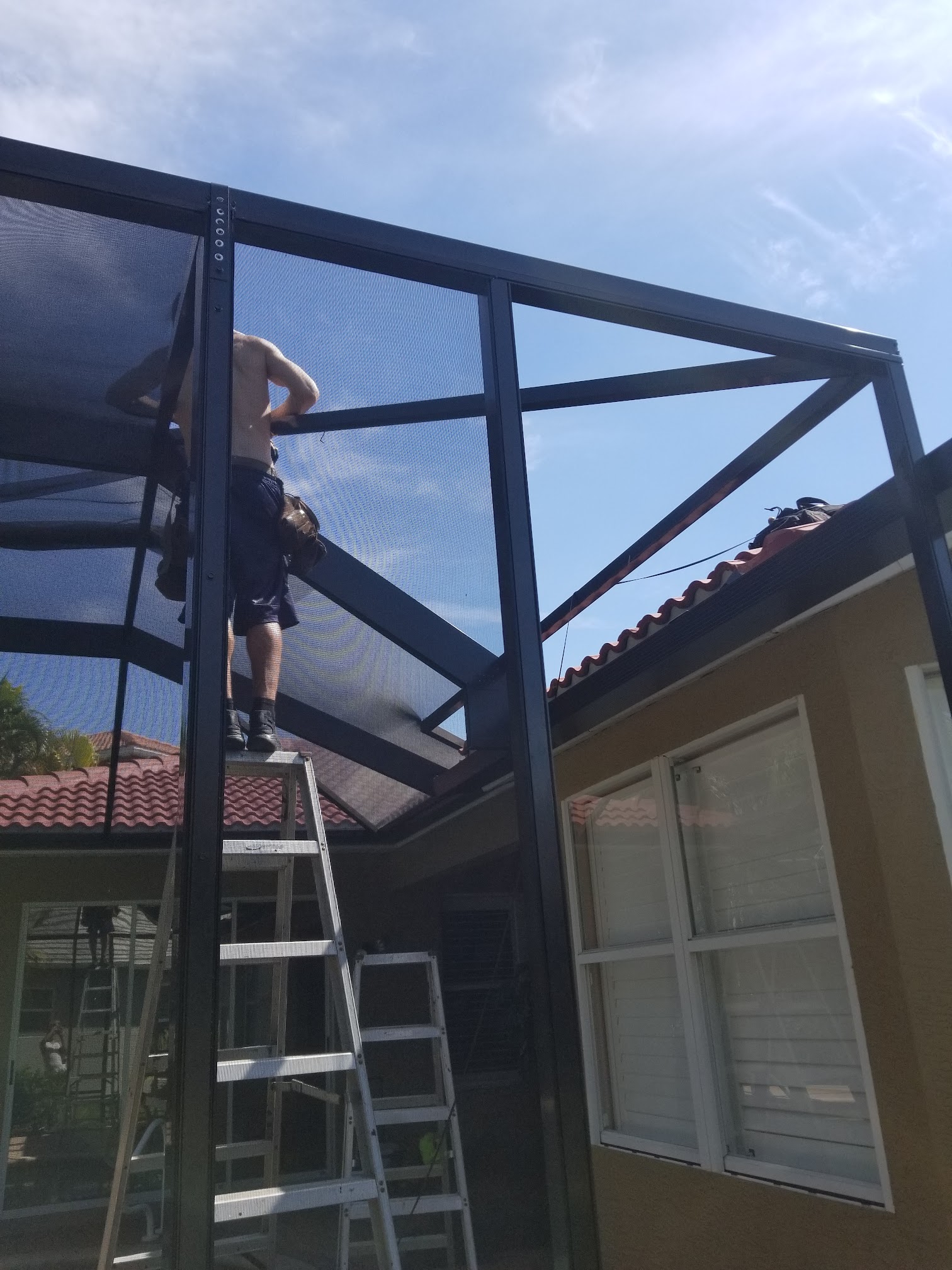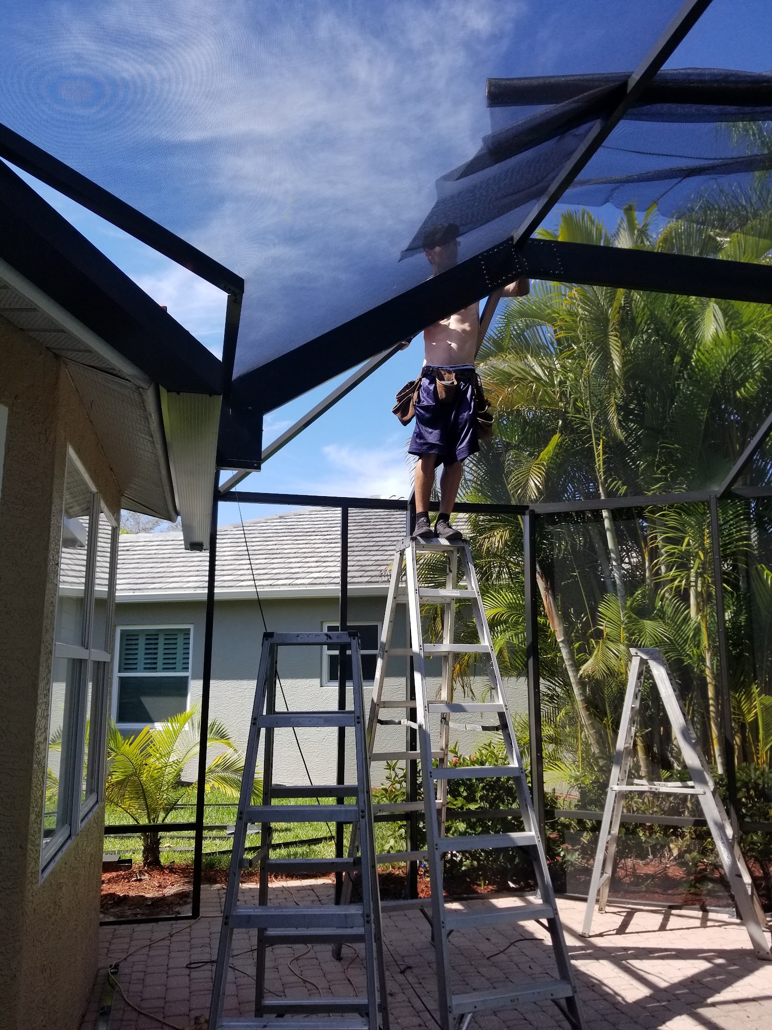 It was a hard job and we ran into a lot of problems but all said n done... We did a great job and the customer is very satisfied it was a another successful install for fabric Tech pool enclosures
