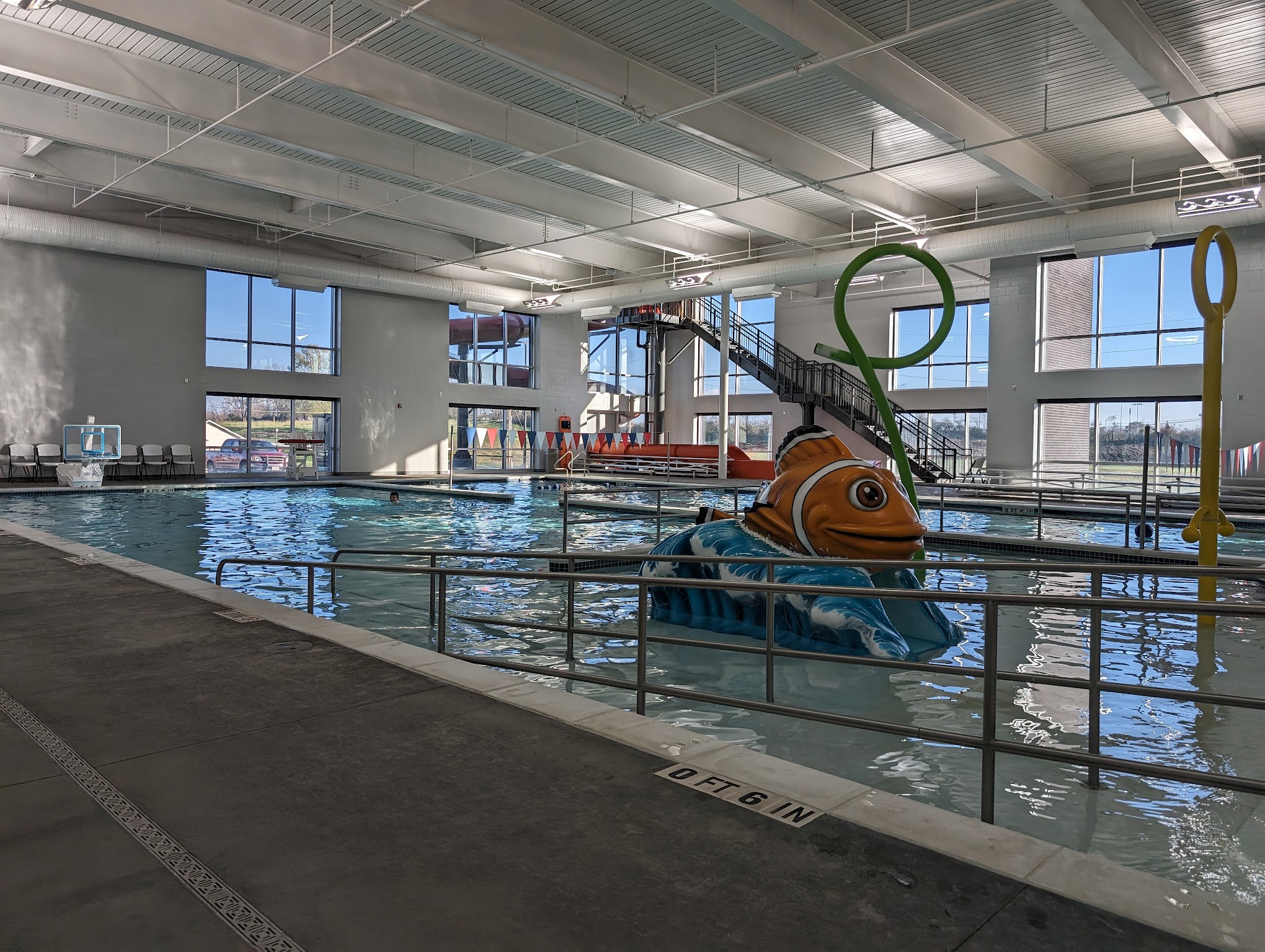Excellent indoor pool for kids! Big shallow areas for toddlers and older kids as well as a deeper side to the pool complete with water slide.