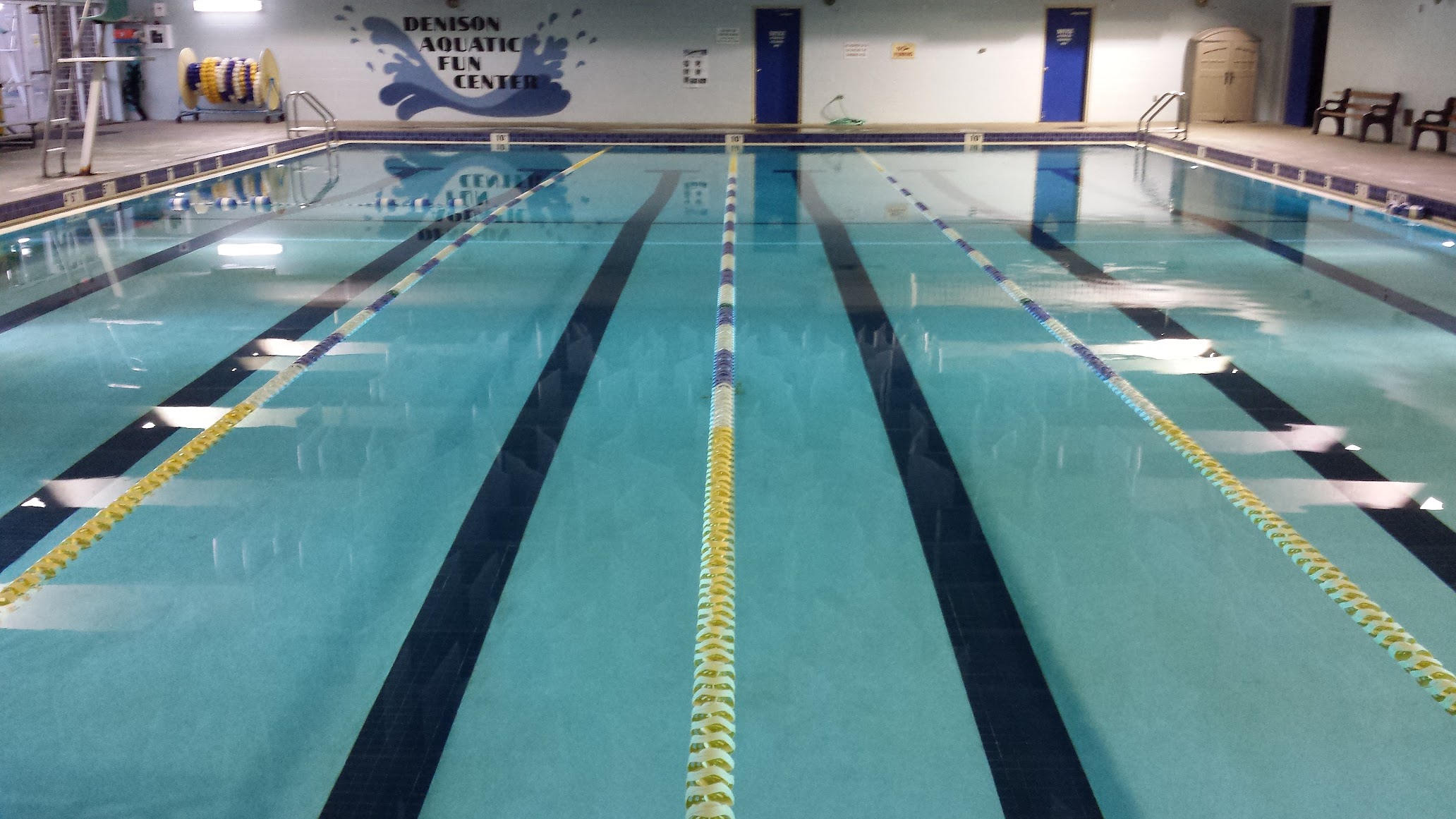 The zero-entry pool at the Denison Aquatic Fun Center is heated to ensure comfortable swimming. Specific temperature readings are not publicly available.