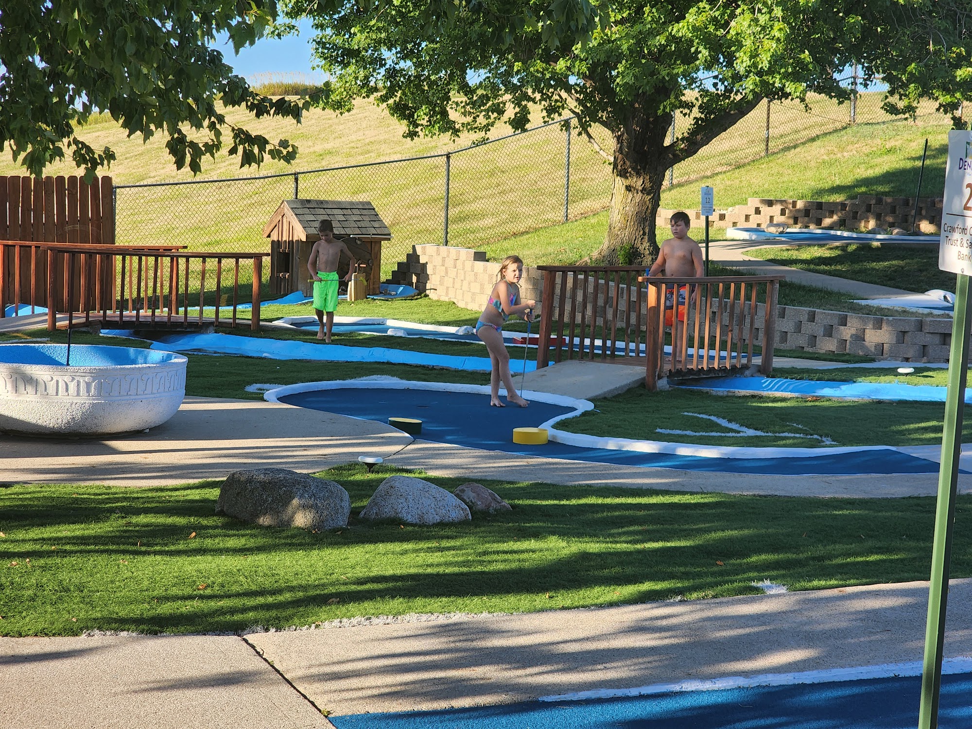 We always bring the grandkids here. They all have a blast from the 8 year old to the 1 year old. There is a fenced area that helps to keep the littles safe in their own water area. Then, when the whistle blows for the water break, there is a mini golf course that everyone can enjoy. There are 2 slides and concessions here as well. Great place♡♡♡