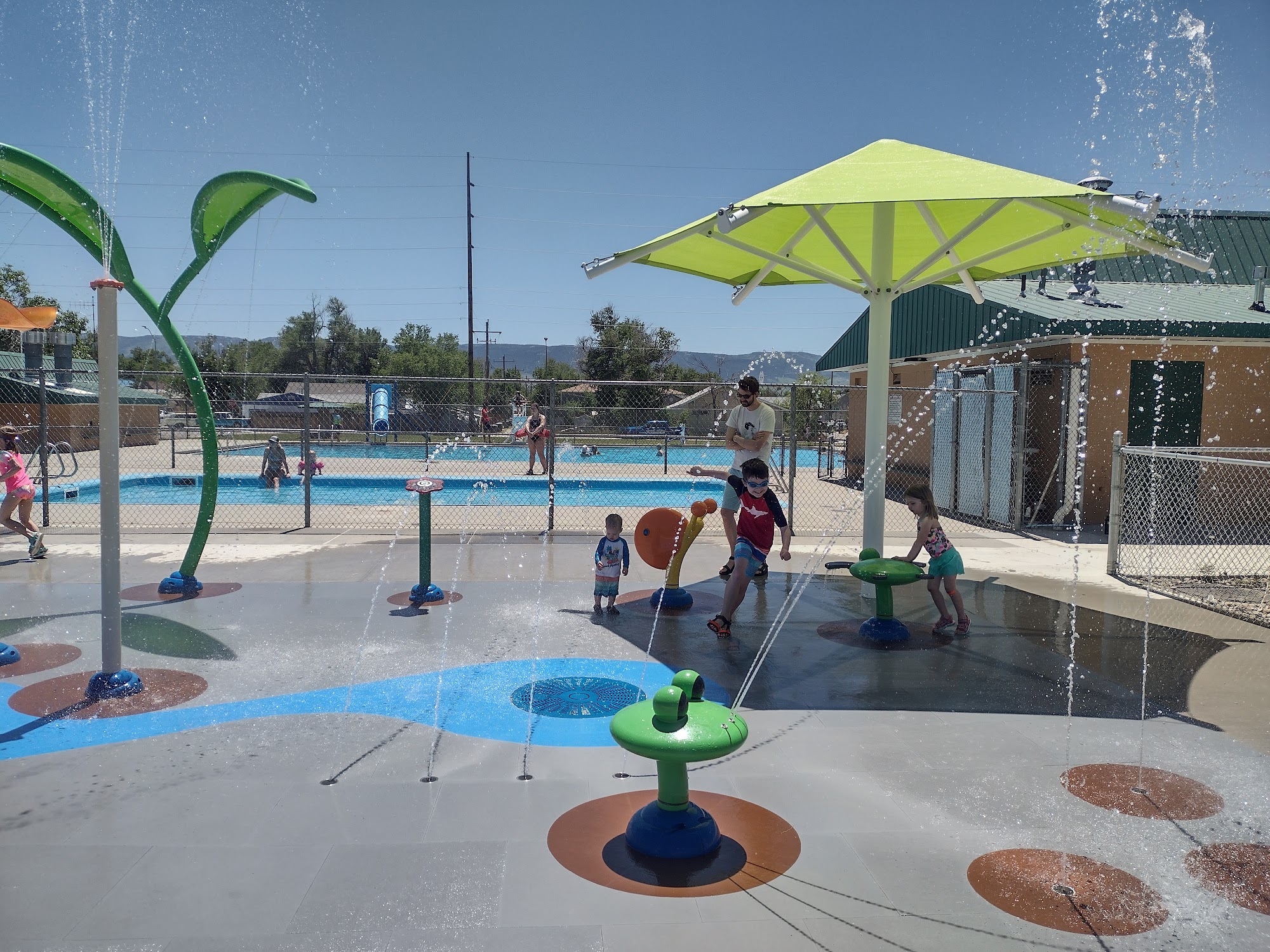 Warm pool and splash pad for kids, plus toddler pool and lifeguards, all free.