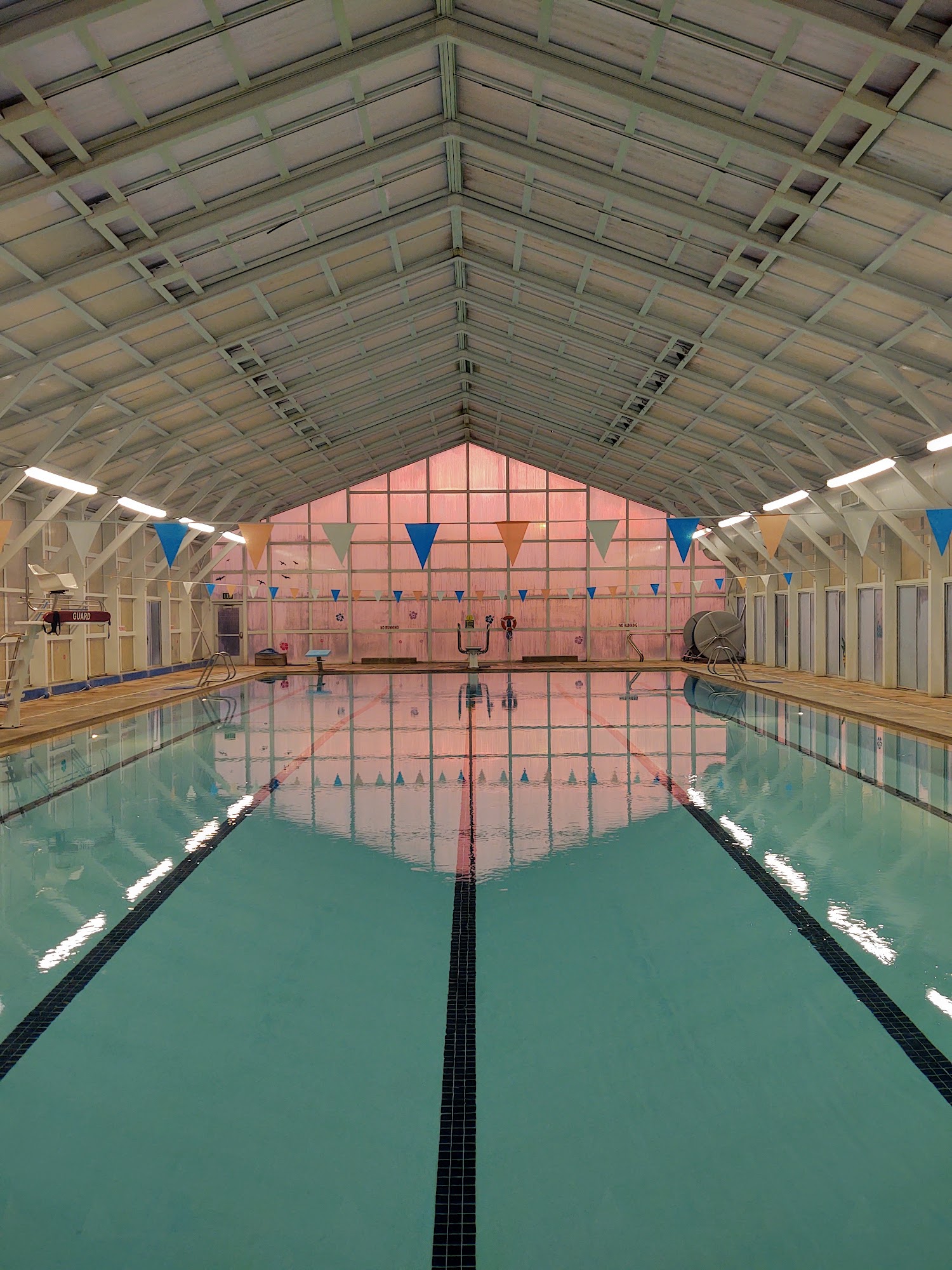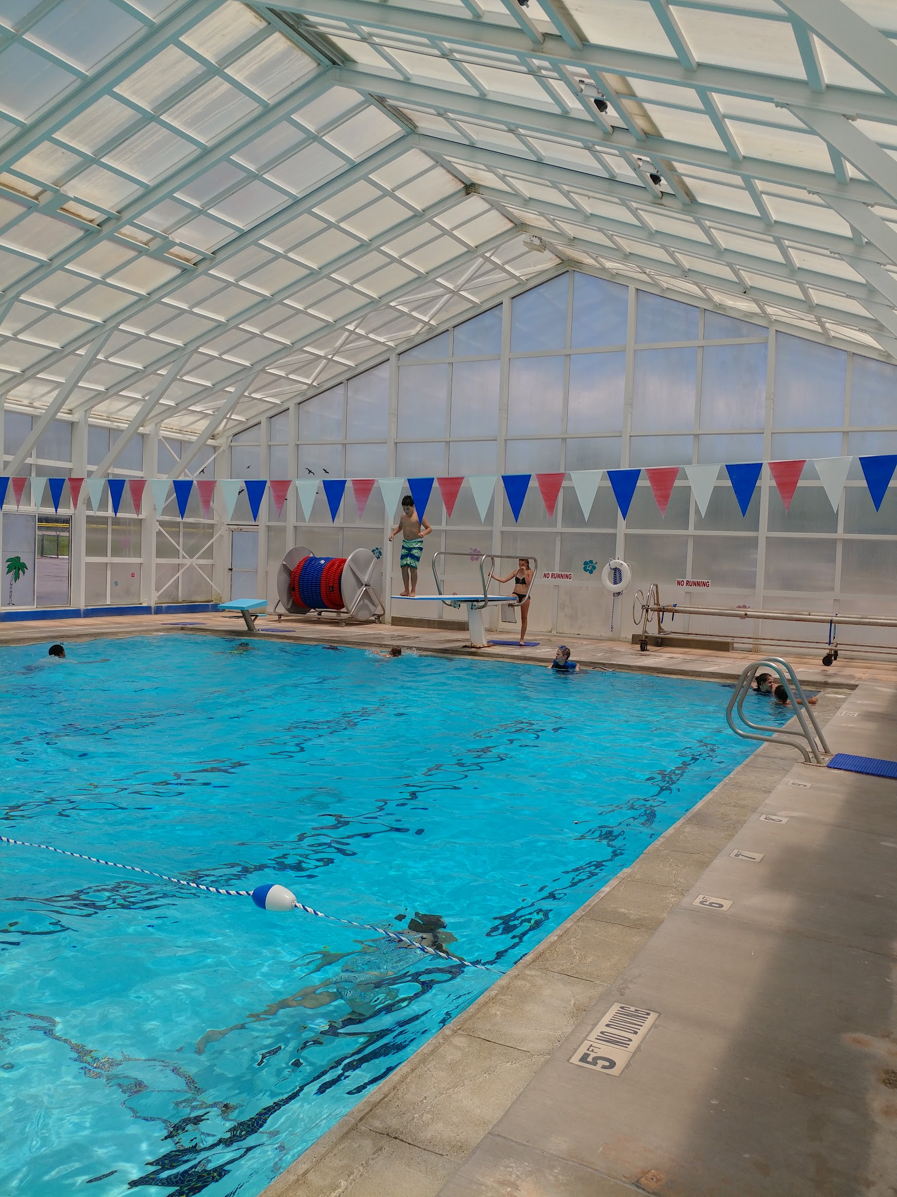 The pool itself is in excellent shape for its age. The director keeps thing running smoothly and the life guards seem capable and vigilant. The lap swimmers and water aerobics folks get along well and appreciate the opportunity to stretch their muscles.