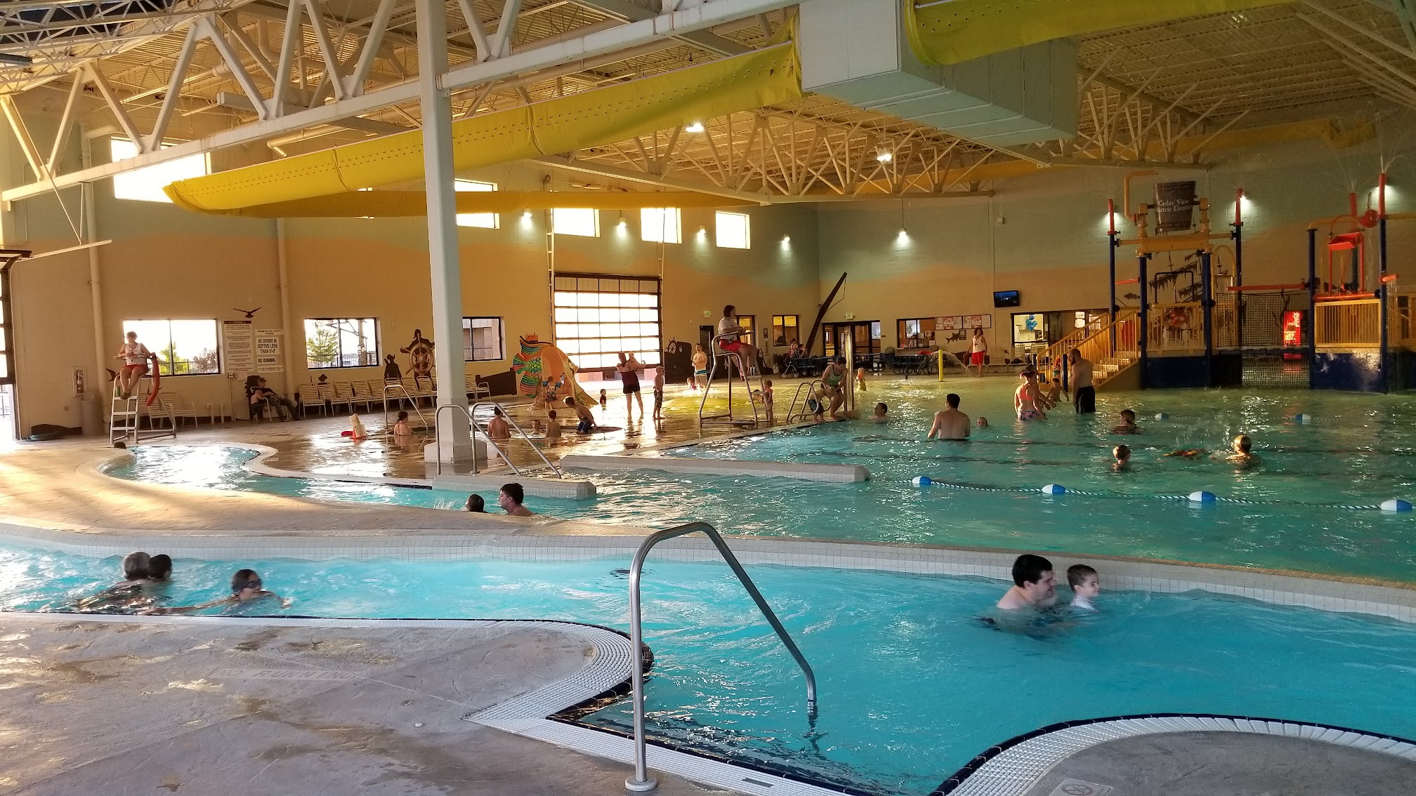Great place to enjoy time with your family. Indoor splash pad, lazy river, swimming lanes, and hot tub. Outdoor pool as well with a variety of activities for the children such as a rock climbing wall, diving board, etc.