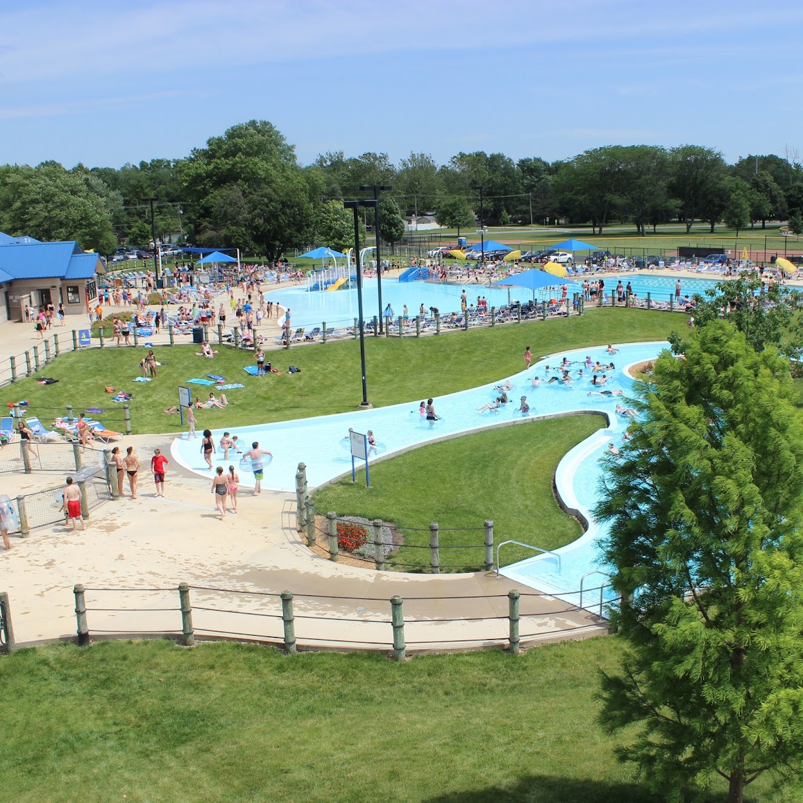 It has a lot of amenities for being a local swimming pool. There are multiple slides, a lazy river, and different sections for different ages. The season pool pass for residents is awesome. There was a lot of leaves in the pools and I feel they could have more attention for cleaning but overall I recommend.