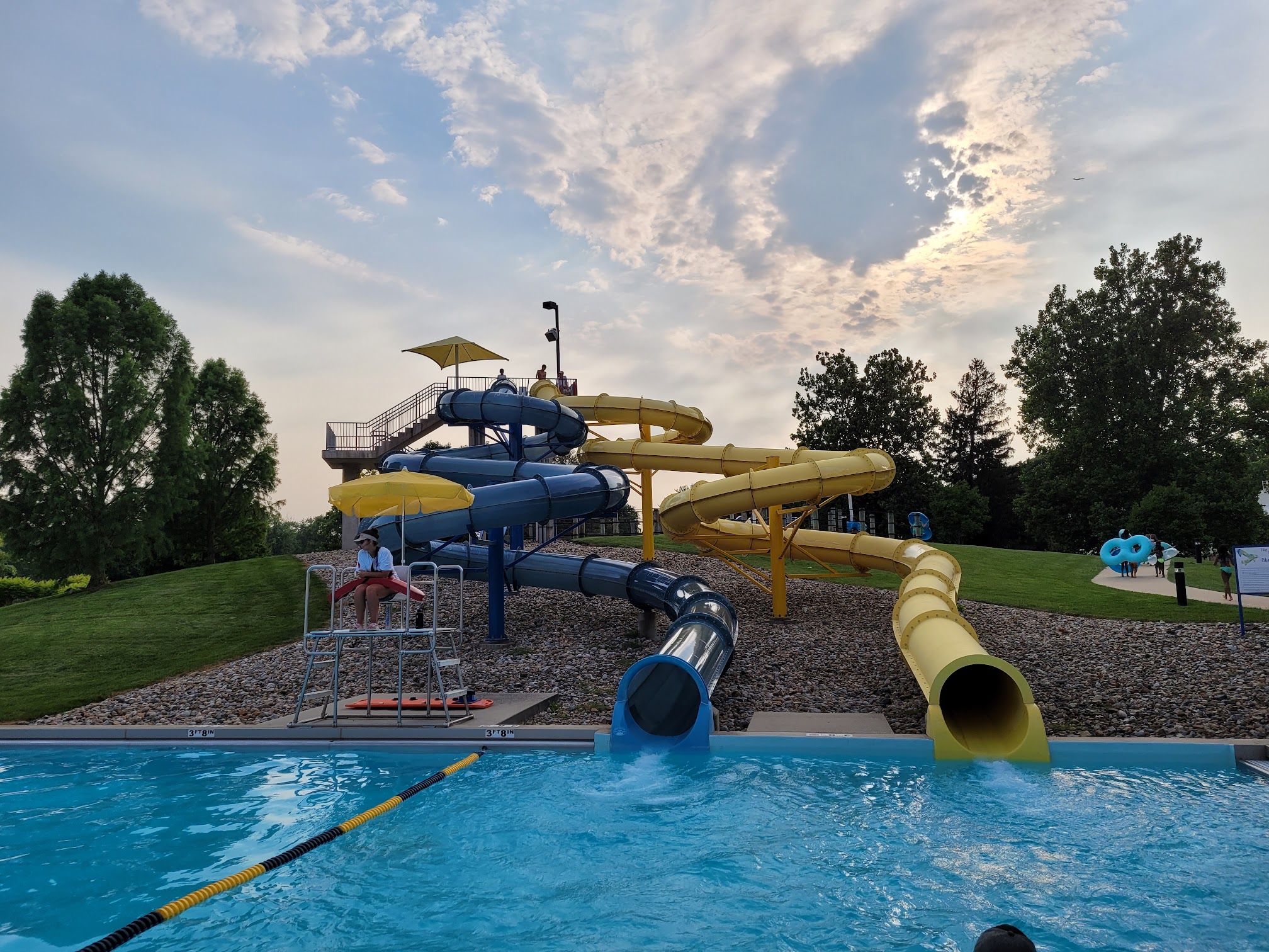 Fun local pool/ mini water Park with two identical body slides, one tube slide into the lazy river and a large pool that extends into a kiddie area. Definitely recommend buying passes if you intend on visiting 7+ times in a season, there is a sale late April! Concessions offer a fair variety of snacks and food. Outside food is allowed. Remember to respect all the rules, it's not a private pool!