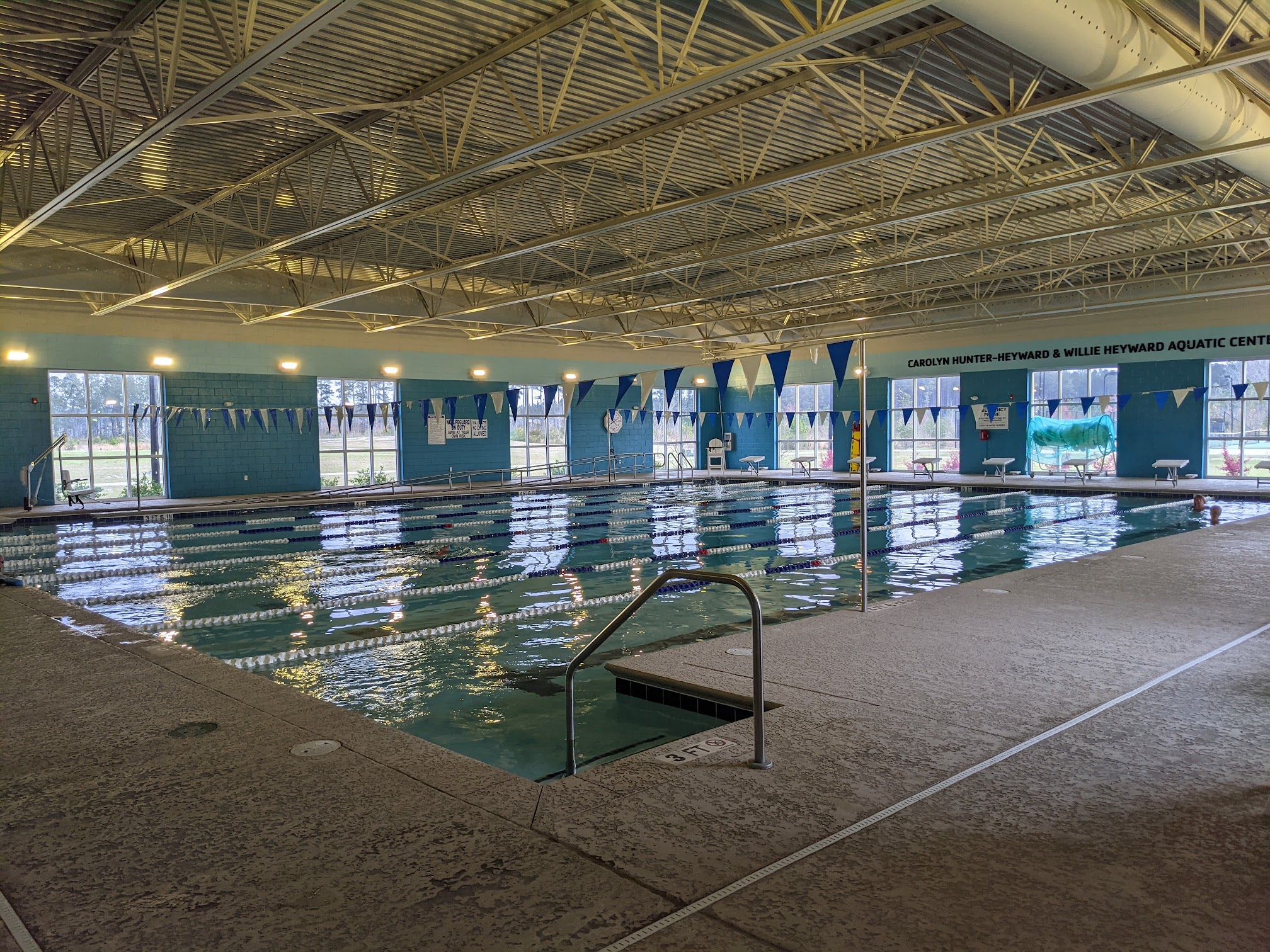 The indoor pool at Cane Bay Family YMCA is maintained at a comfortable 84 degrees Fahrenheit. The outdoor pools are not heated and their temperatures typically range from 70 to 80 degrees Fahrenheit, fluctuating with the external ambient temperature.