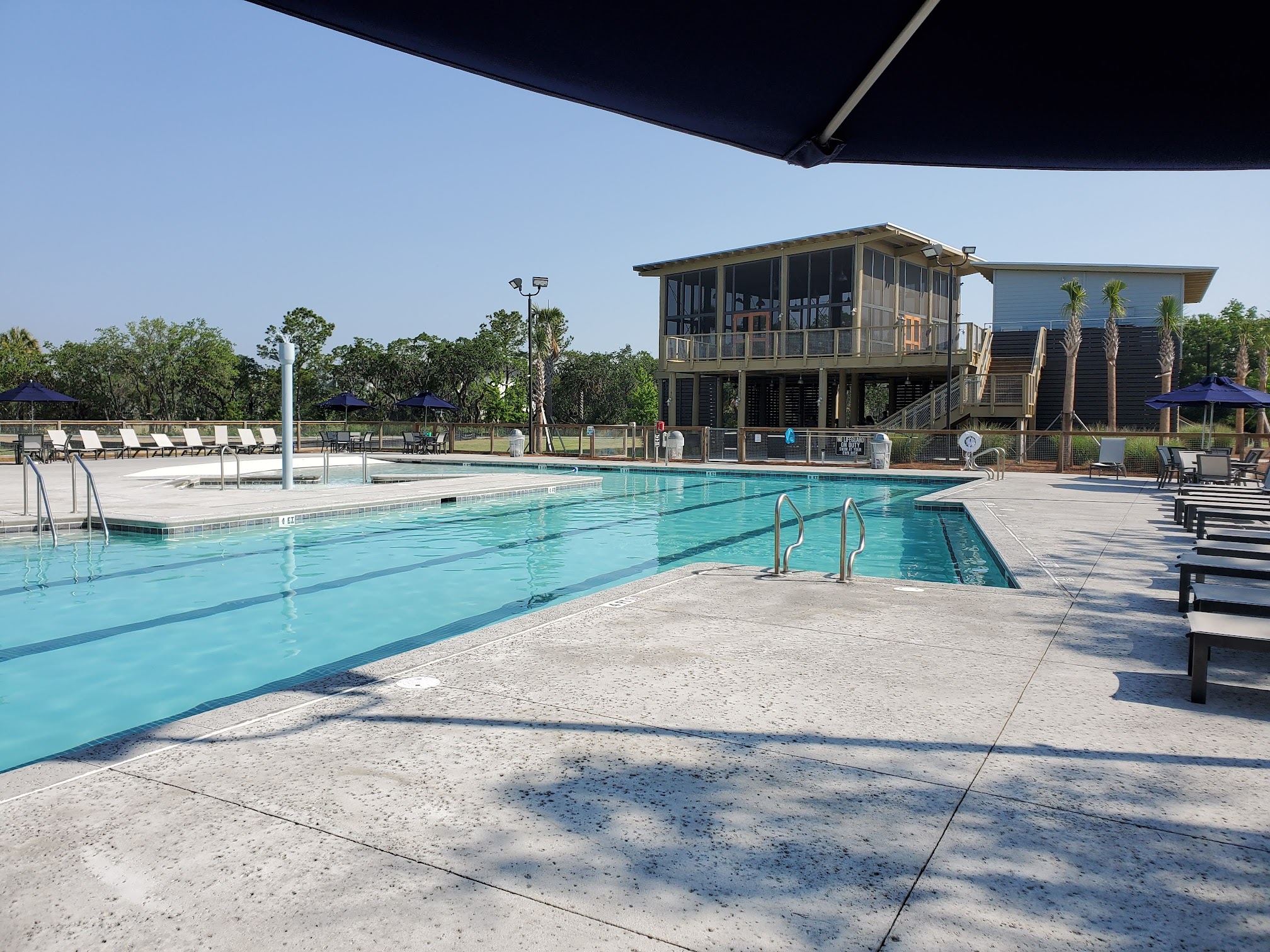 The newest pool located in the Edgefield Daniel Island neighborhood. It has a salt water system which means no chlorine.