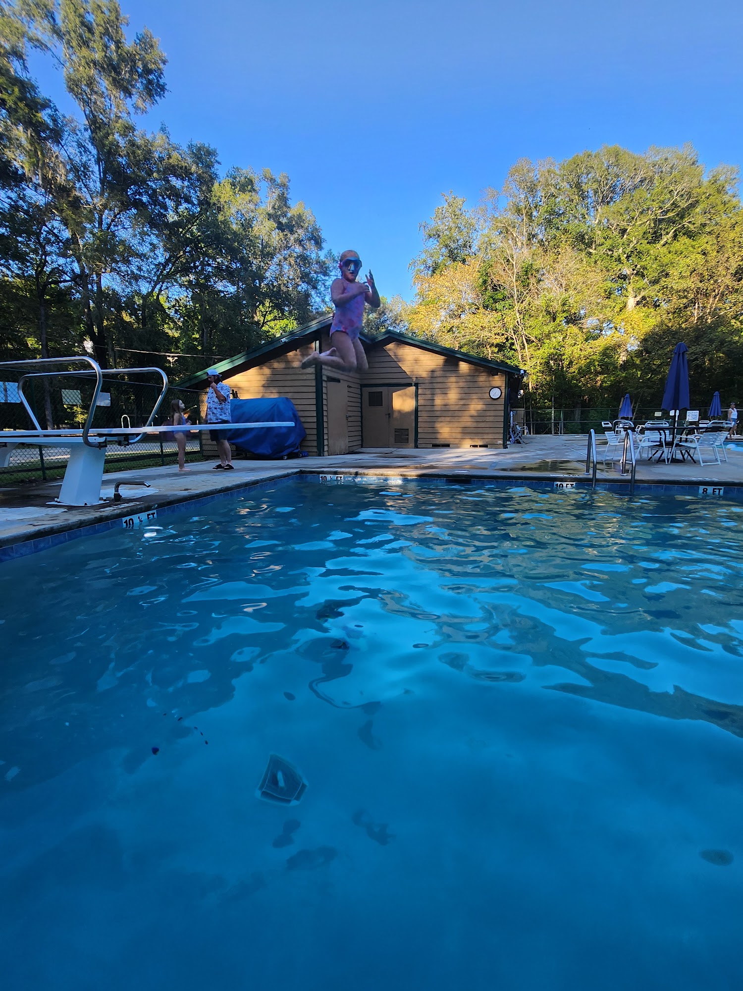Clean and well maintained pool. They have lifeguards on duty all the time and a nice diving board. Plenty of tables to set up for the afternoon and have lunch or relax with family. They have dedicated adult swim times and a swim team. The park that's right next to it is really convenient also.