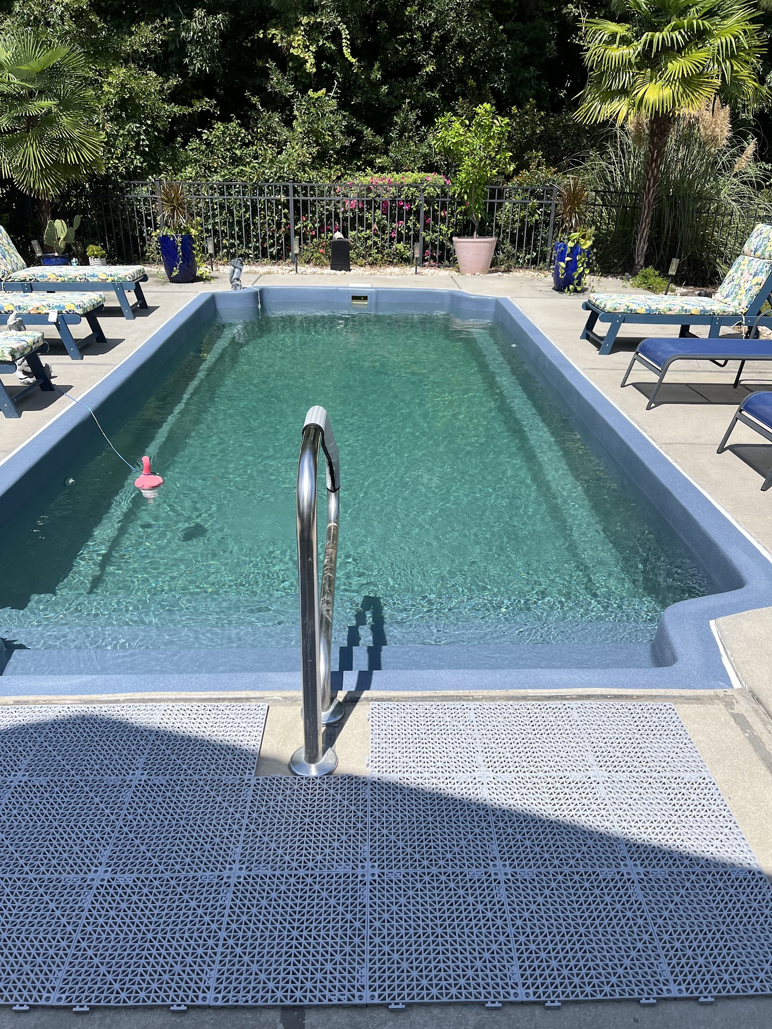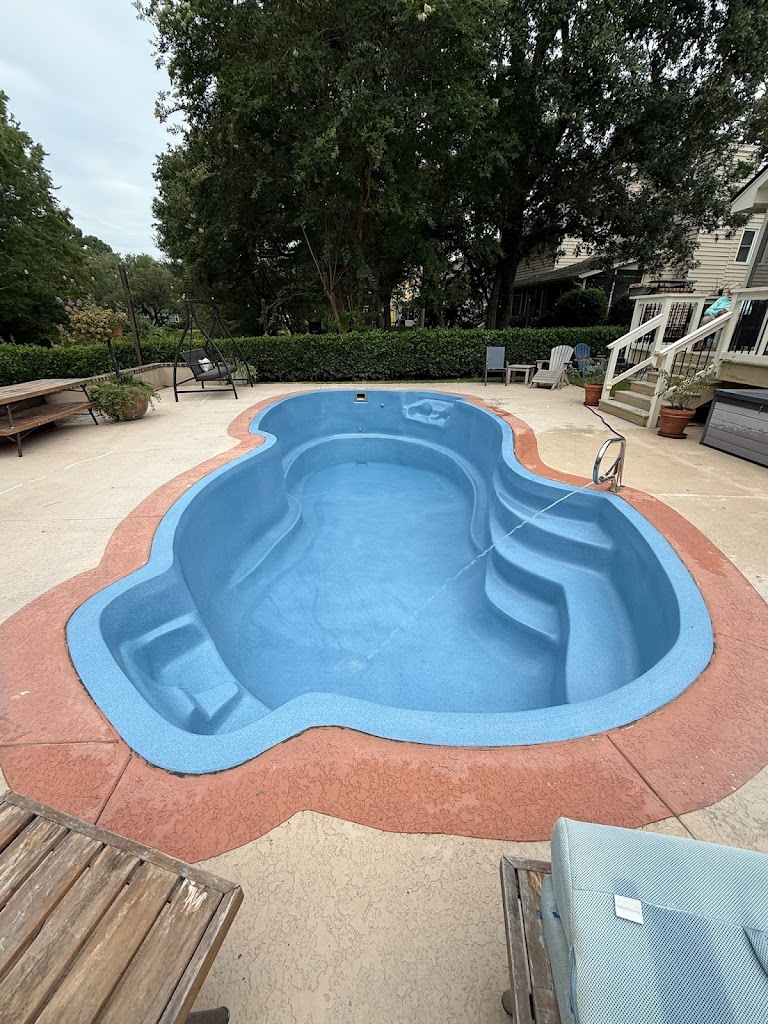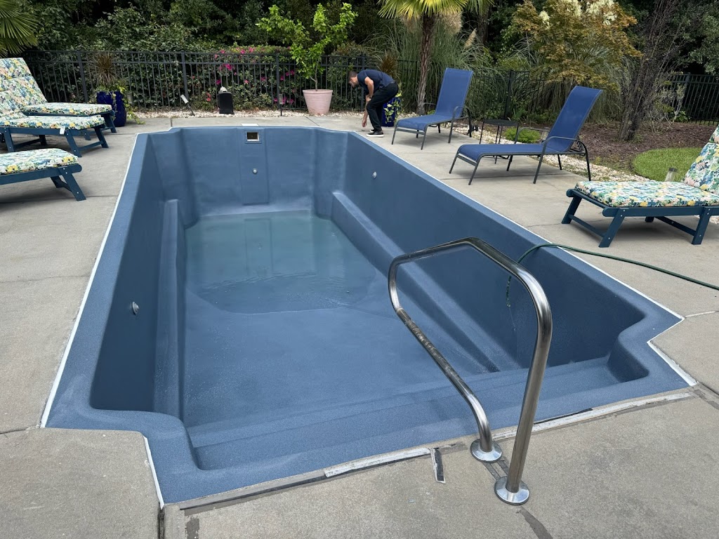 We had South Carolina pool resurfacing apply Eco fiber to resurface our 20 year-old fiberglass pool. They were very easy to deal with And communication was great from beginning to end of project They were highly professional and showed up with all equipment needed even a large tent that could be expanded to cover our whole pool In event of rain. They were able to safely drain our fiberglass pool and the resurfacing looks fantastic. The new surface feels great and is smooth and the best comparison is to An orange peel. There is a different texture on the steps to make it not so slick. Hopefully this product will last a long time And does come with a 10 year warranty I would not hesitate to use this company and recommend them highly