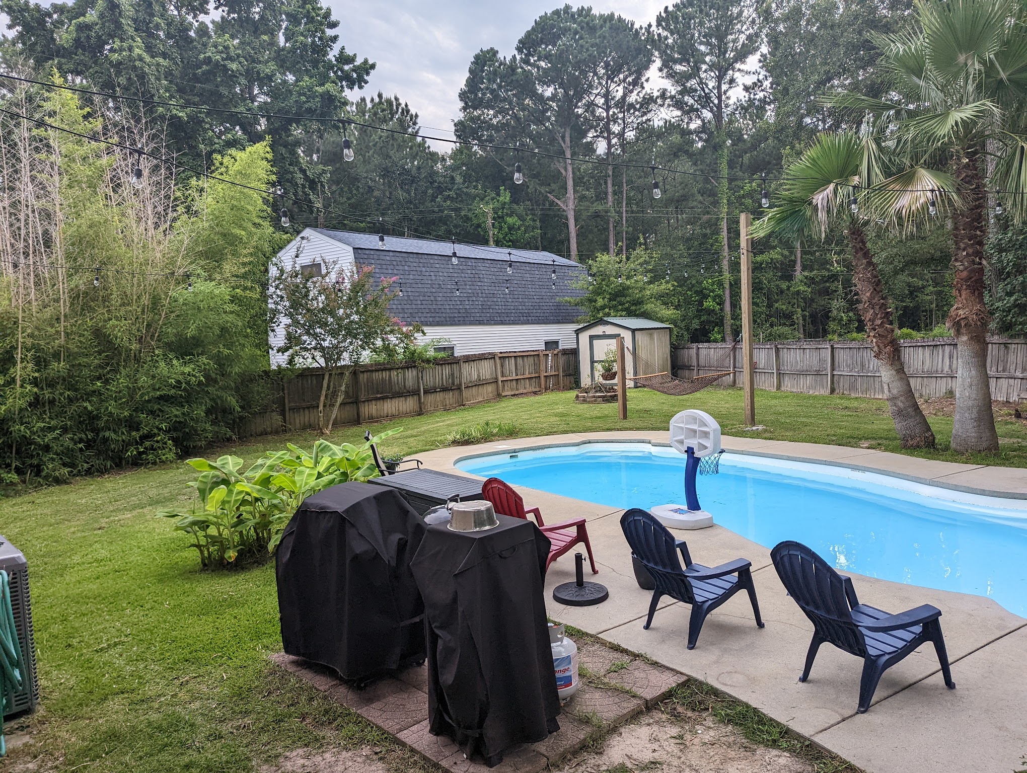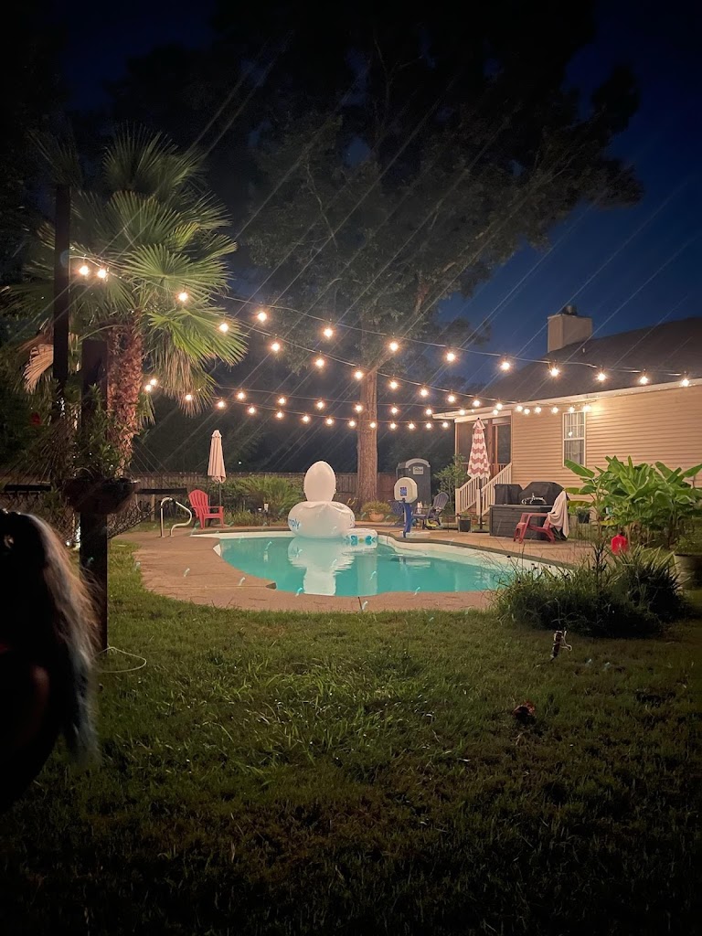 Swimply - Lowcountry Oasis, located at 210 Mohican Cir, Summerville, SC, offers a private and serene escape centered around a large saltwater pool. Guests can enjoy a spacious deck, comfortable lounge seating, a covered patio, and a private restroom, making it an ideal spot for relaxation or small gatherings.