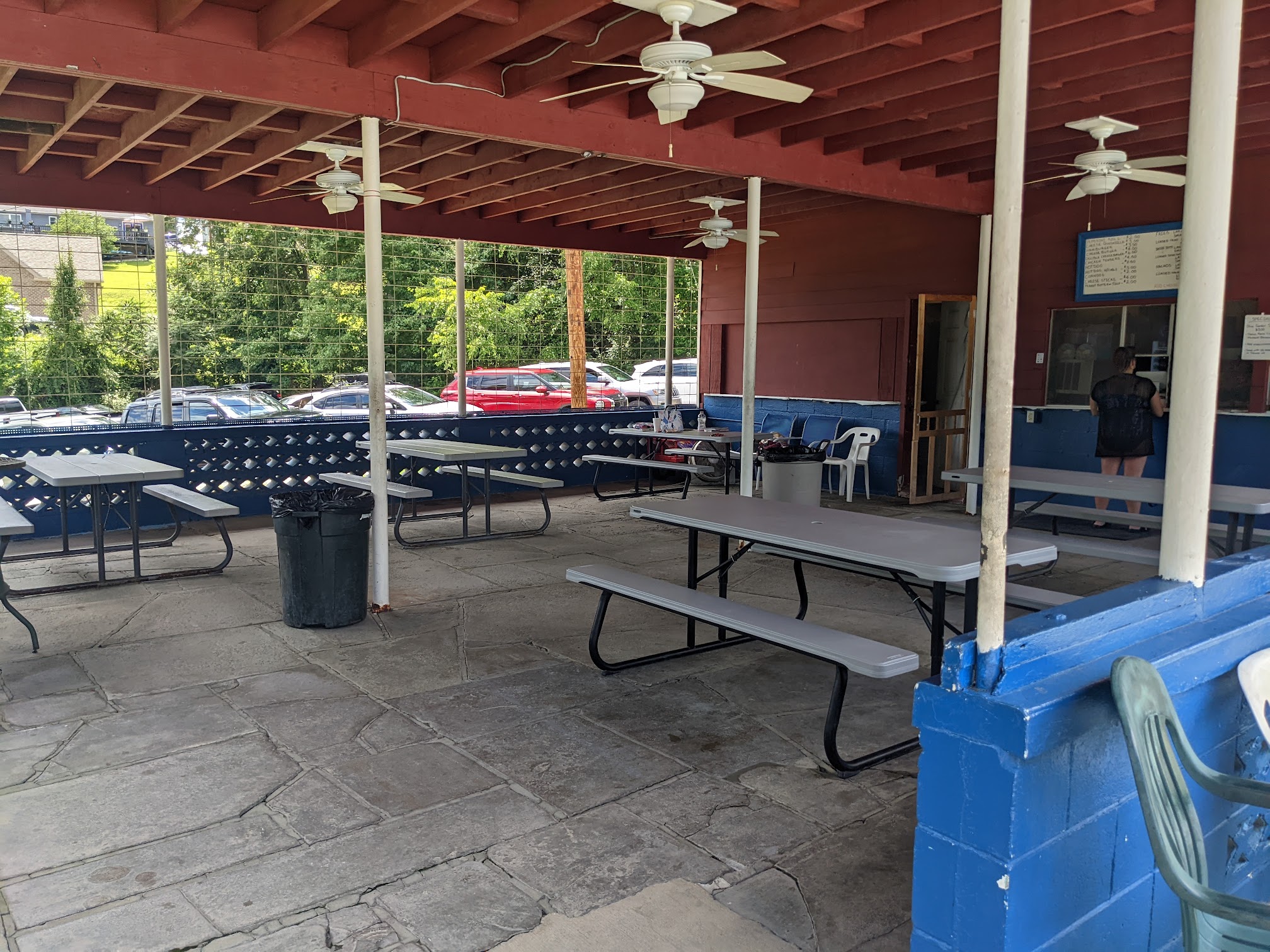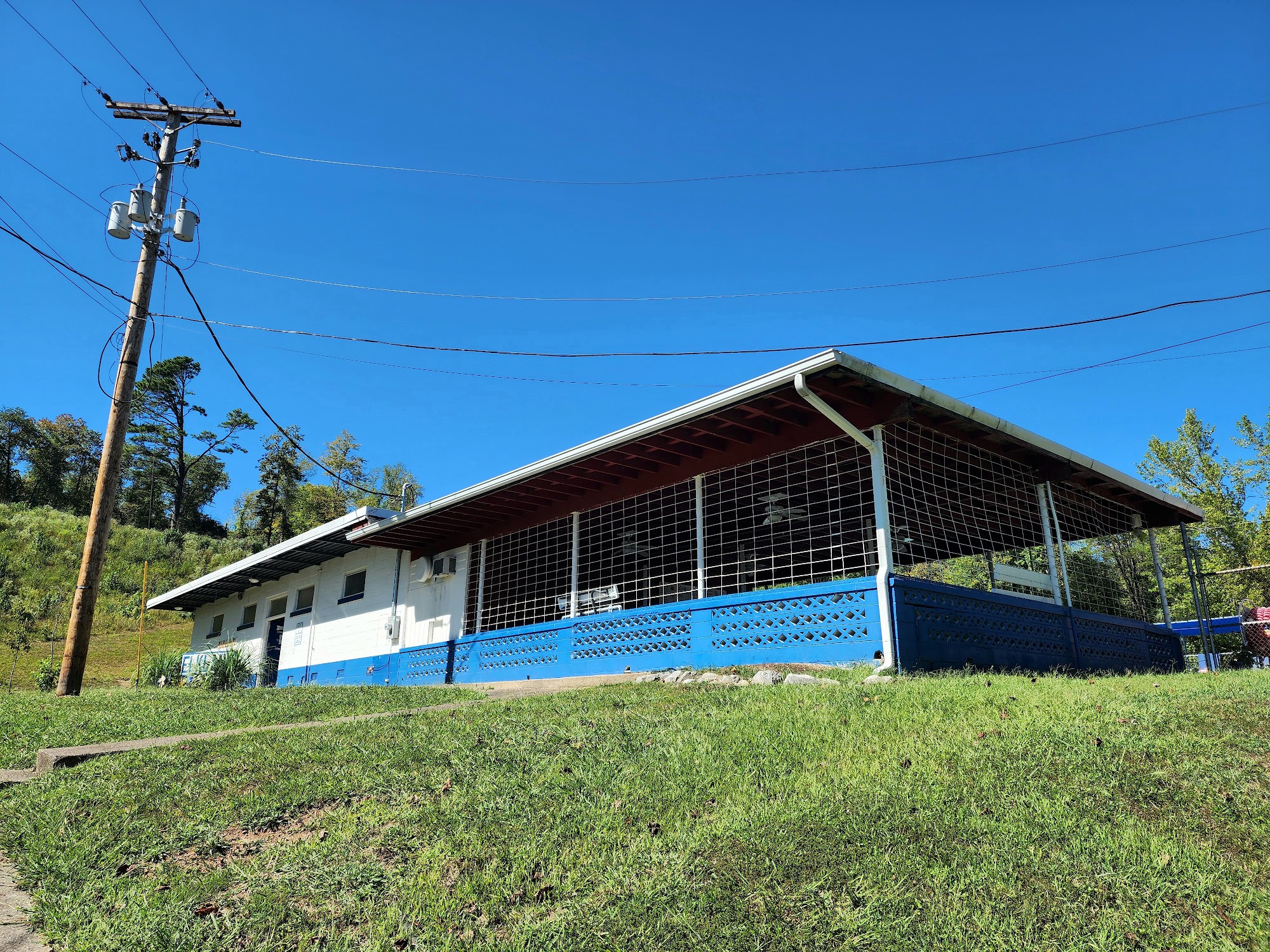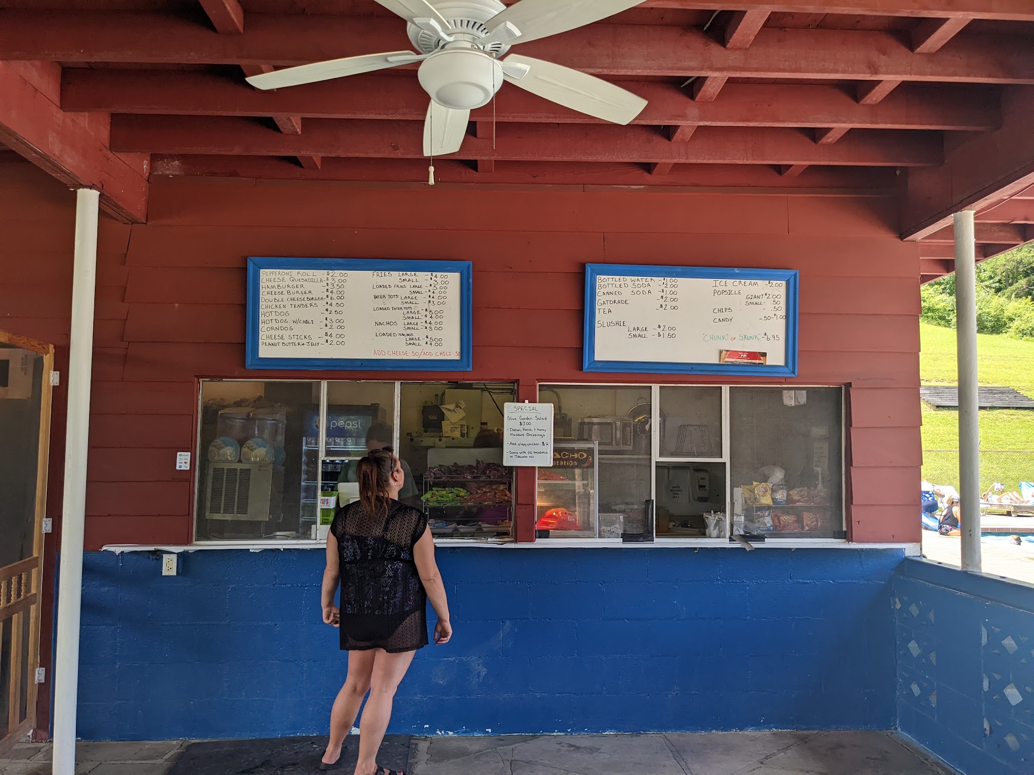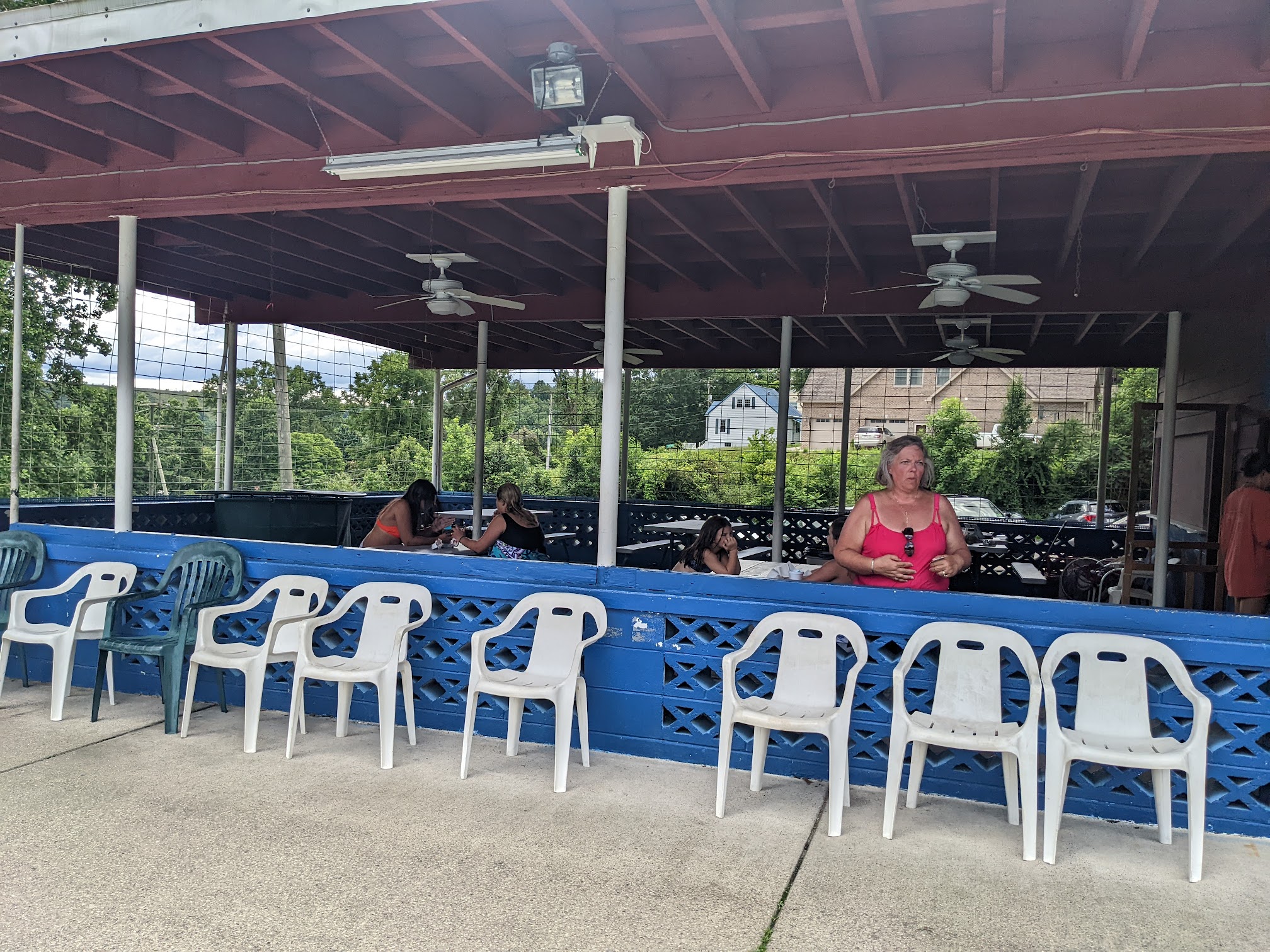 This is a nice little private pool and everyone was friendly today when we attended a birthday party. There was a nice little shelter in the back for parties and gatherings. There is a diving board and kiddie pool that is closed in with a shade awning (which was so nice for little ones). There is a nice, new, play ground equipment and swings outside the fence but on the grounds. The bathrooms were nice and I got some pictures because there was no one in there with us. The concession stand was really reasonably priced and 3 of us had lunch for under 20 bucks. The dining area by the concession area was nice, clean, and shaded. Overall we really liked the place!