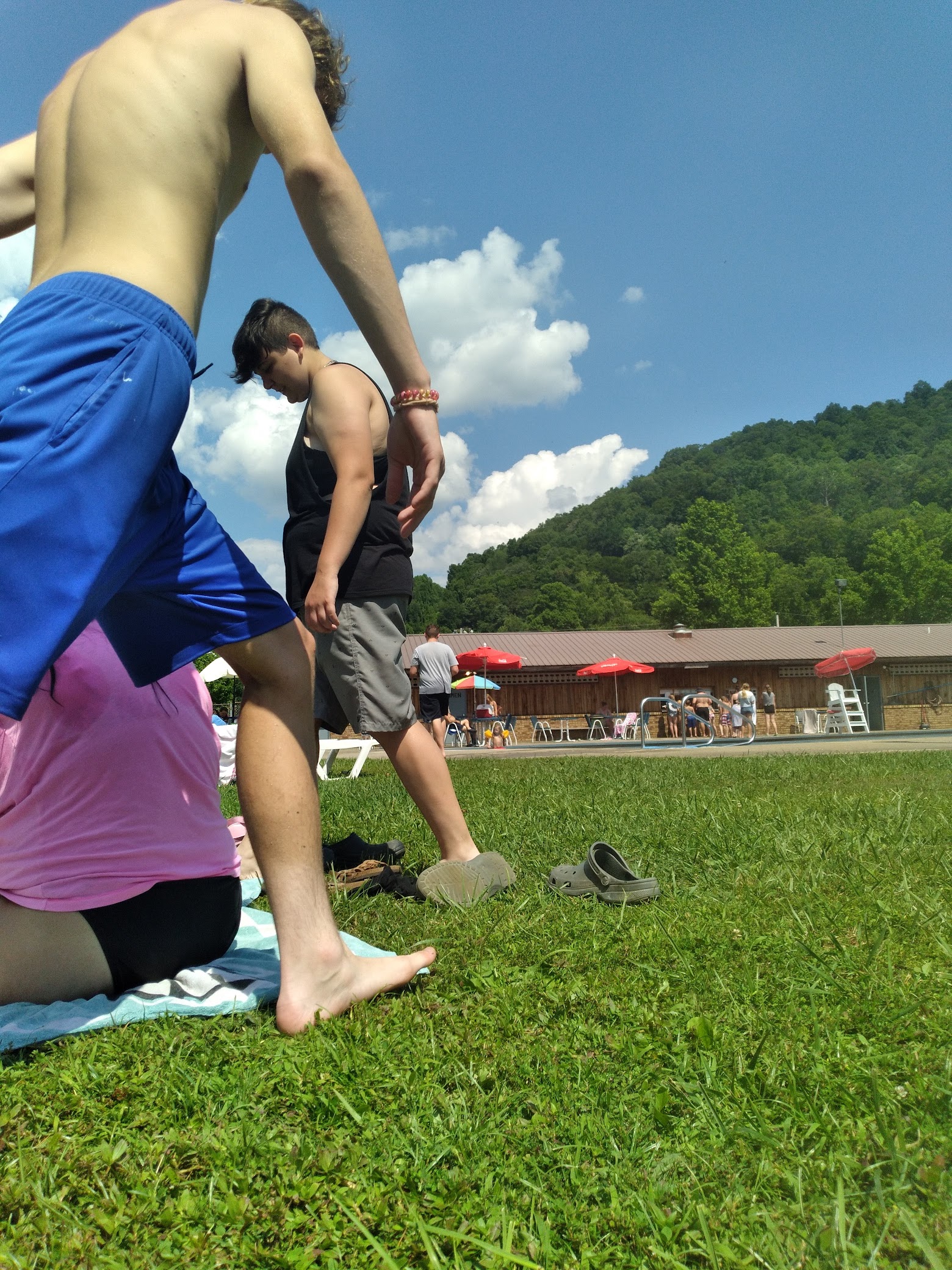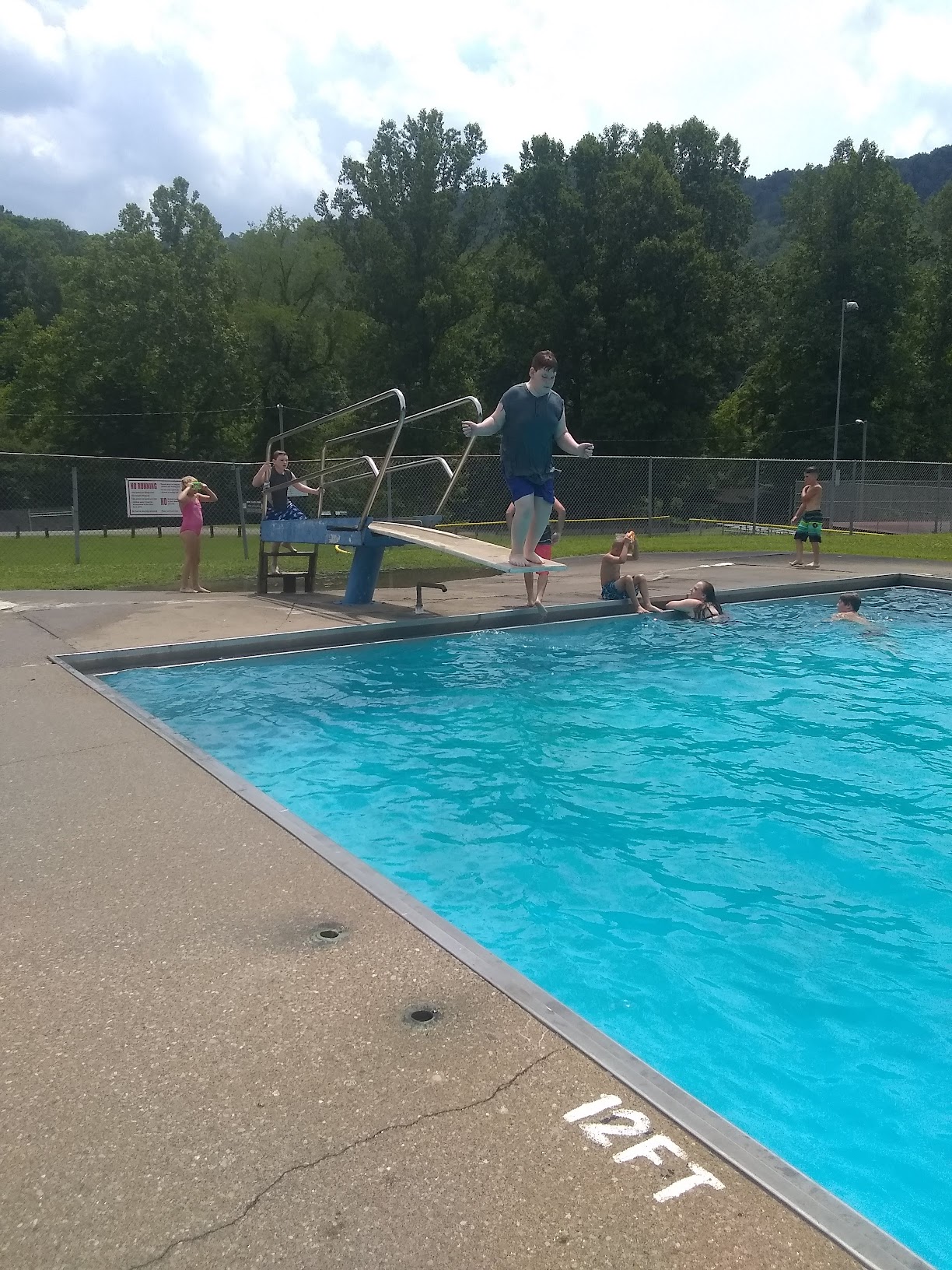 $4 admission! Diving board, concessions, kiddie pool, picnic tables, pool chairs. You can see your kids wherever they are! Super clean! Showers, too! Music all day!