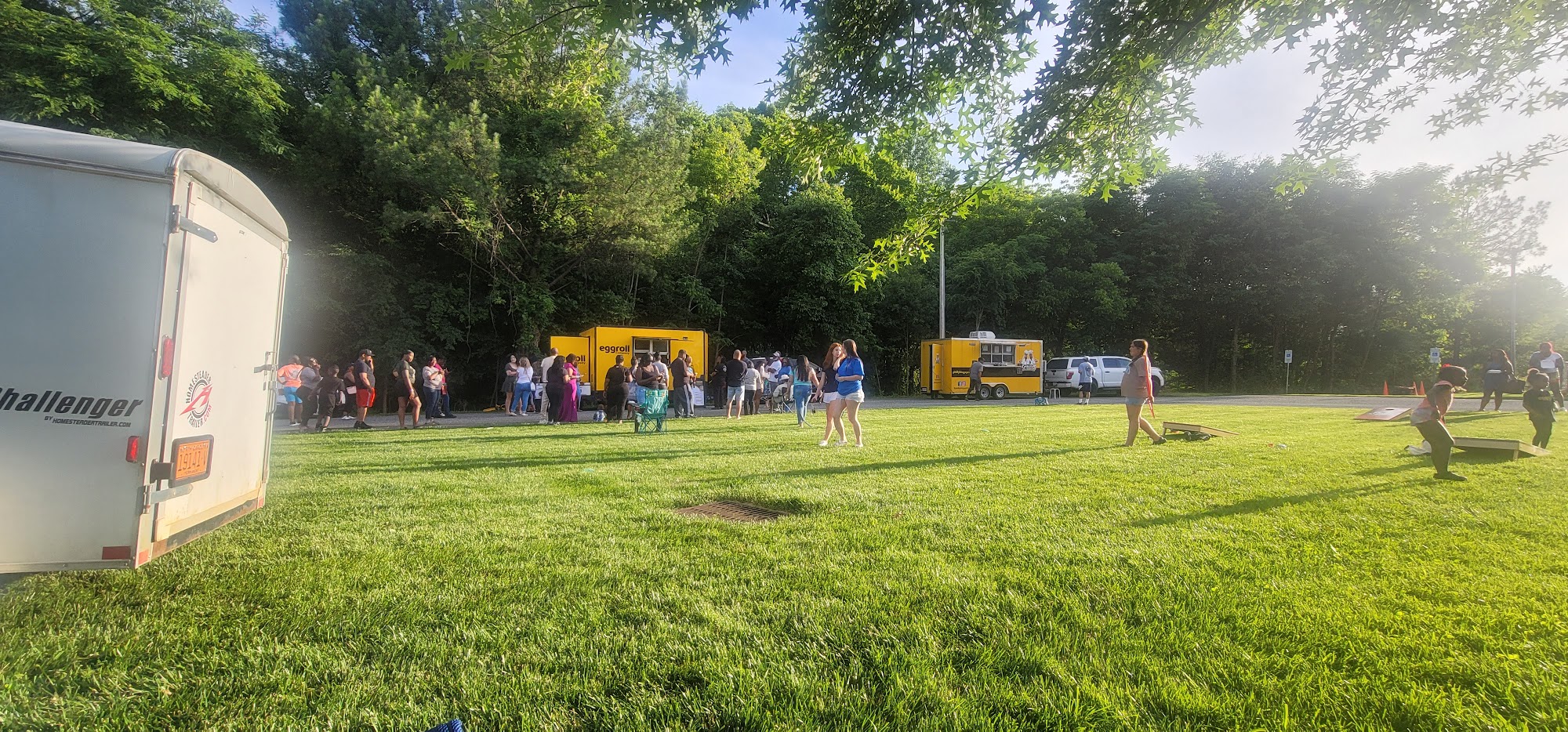Summer Kick Off event was a fun start for the season. The food (Eggroll Company and Philly Express) and (Sweet Magnolia Mercantile) drink trucks had excellent menu items. There were lawn games and seating areas. The pool was open with lifeguard present. The music could have been more diverse. The event should have lasted a lil longer, so the firepit and string lighting could have been used. Overall, it was a cute lil event.